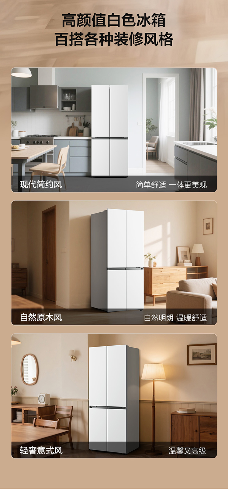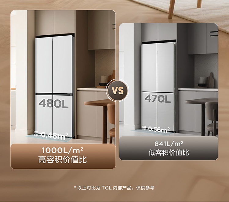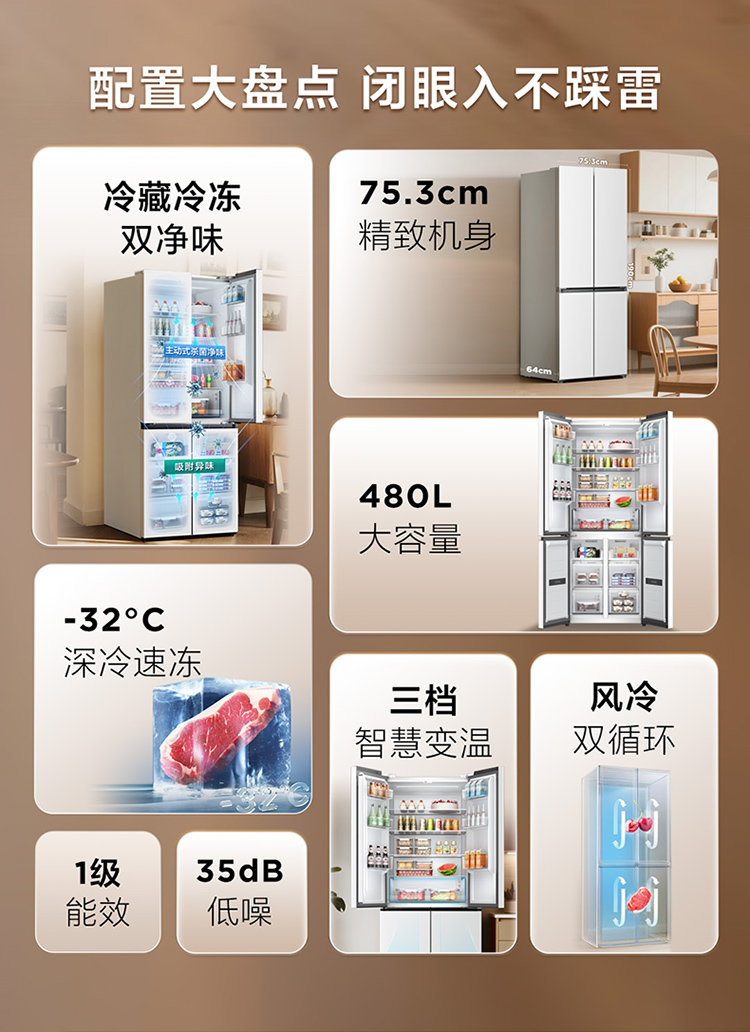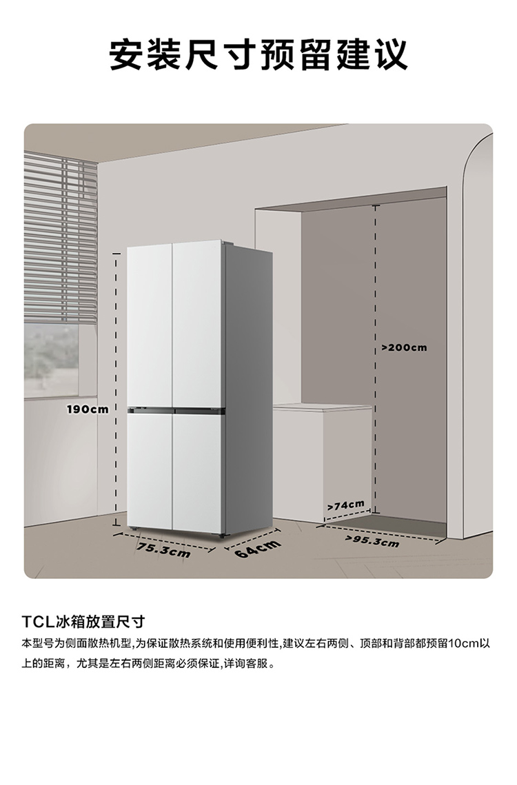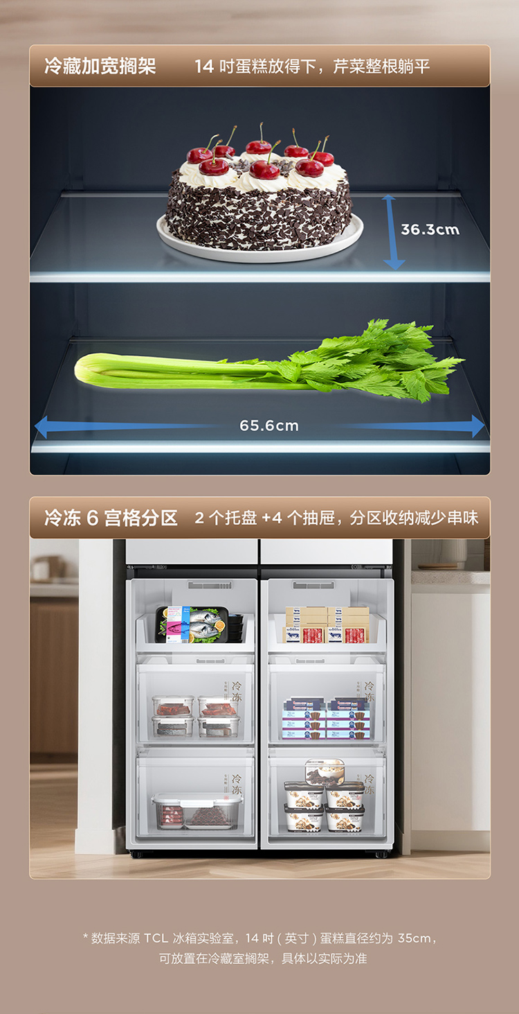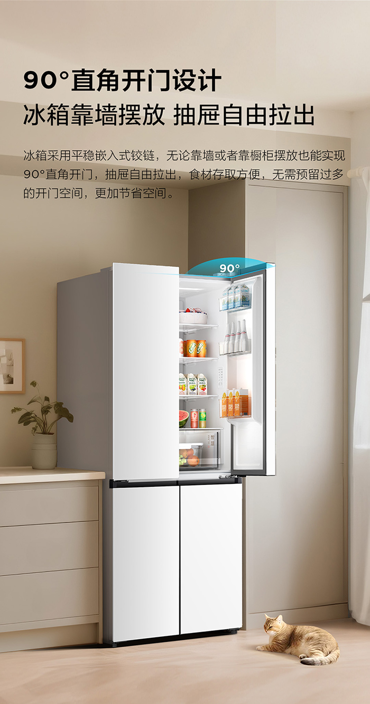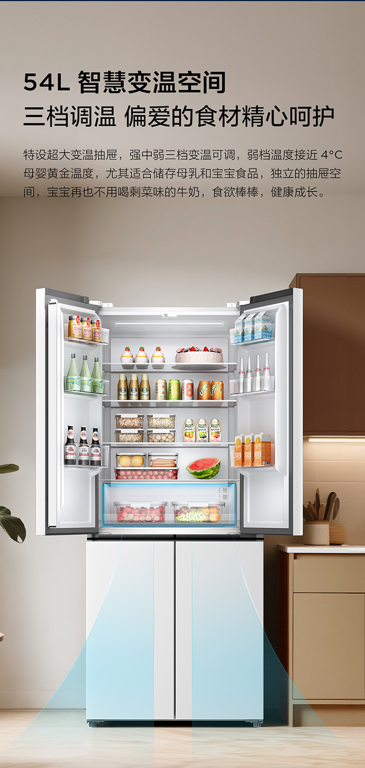 【新品上市】TCL 小清柠480升十字对开四开门超窄小户型大容量双净味深冷速冻电冰箱 R480V7-U1