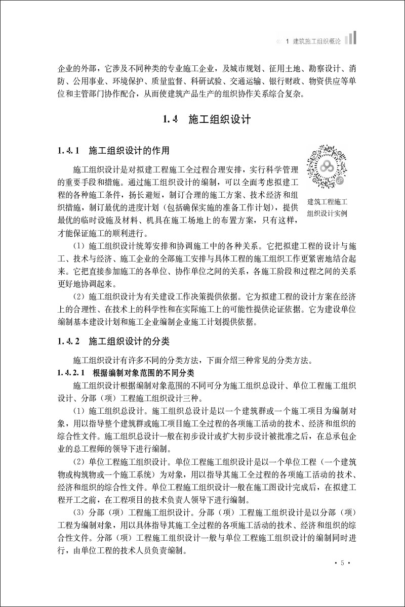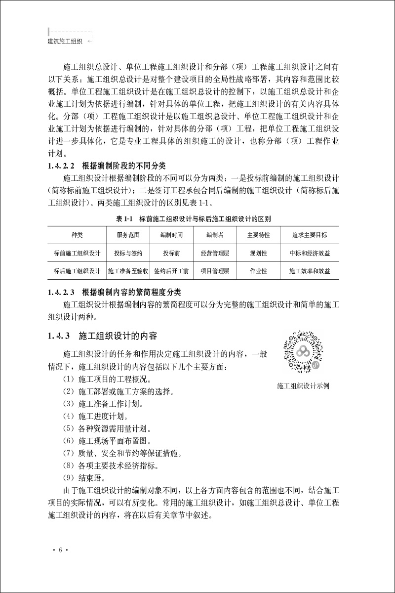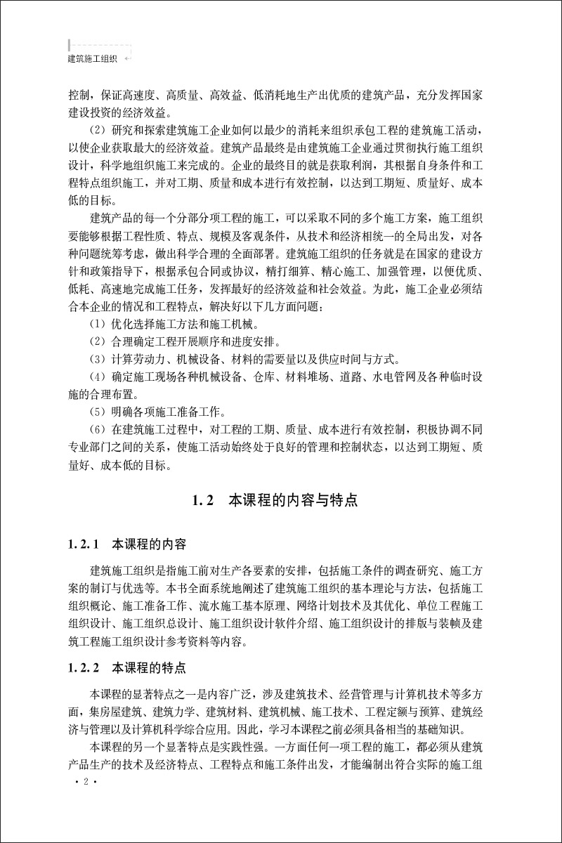本书全面系统地阐述了建筑施工组织的理论、方法与实例,实用性强,能反映国内外先进技术与管理发展水平,特色鲜明,并能满足高等职业教育培养目标要求,有助于施工组织设计的规范和优化,有助于建筑施工组织课程的教学和建筑工程类专业课程设计及毕业设计指导。本书分9章编写,内容包括建筑施工组织概论、施工准备、建筑工程流水施工、网络计划技术、单位工程施工组织设计、施工组织总设计、施工组织设计软件介绍与应用、施工组织设计的排版与装帧、建筑工程施工组织设计参考资料。