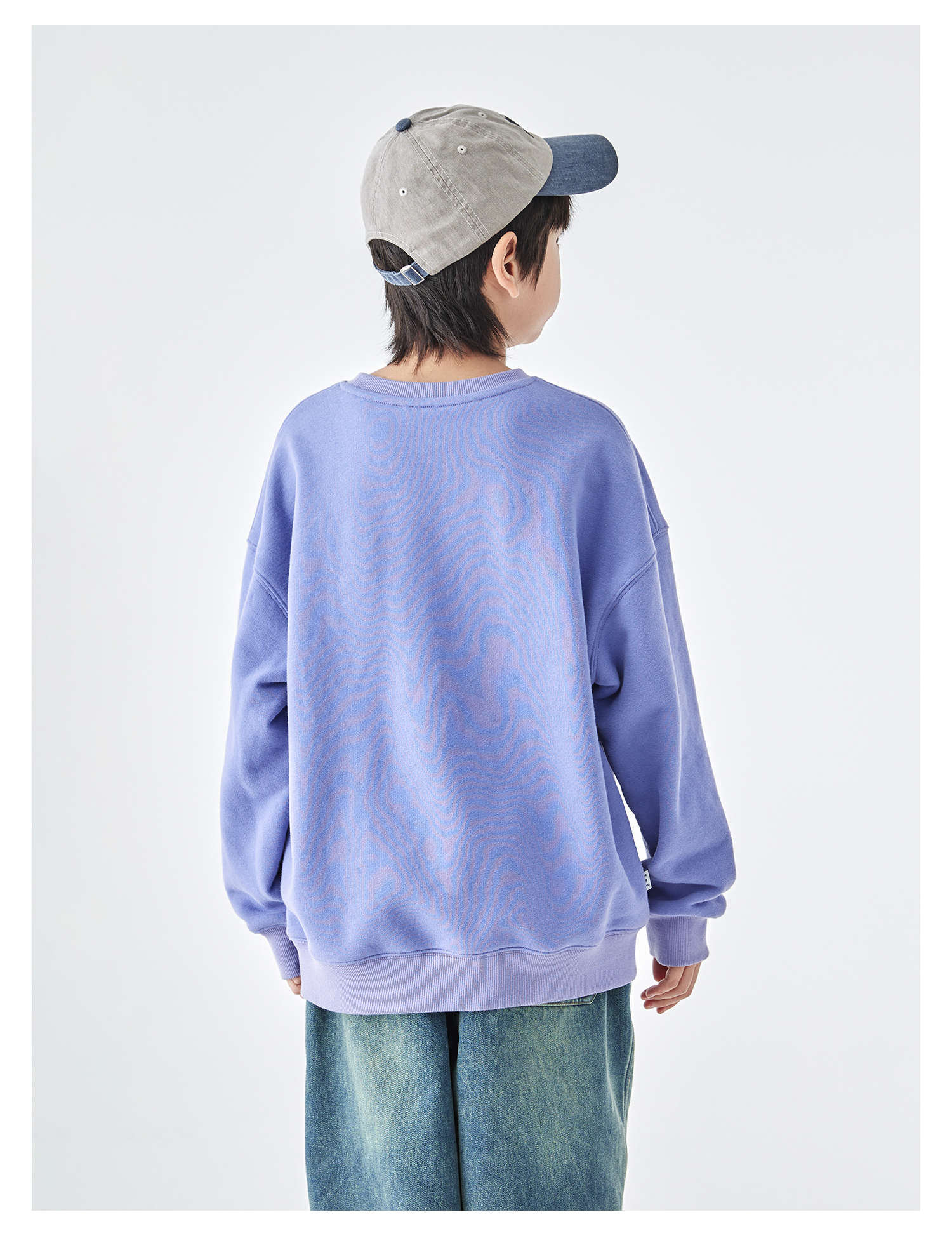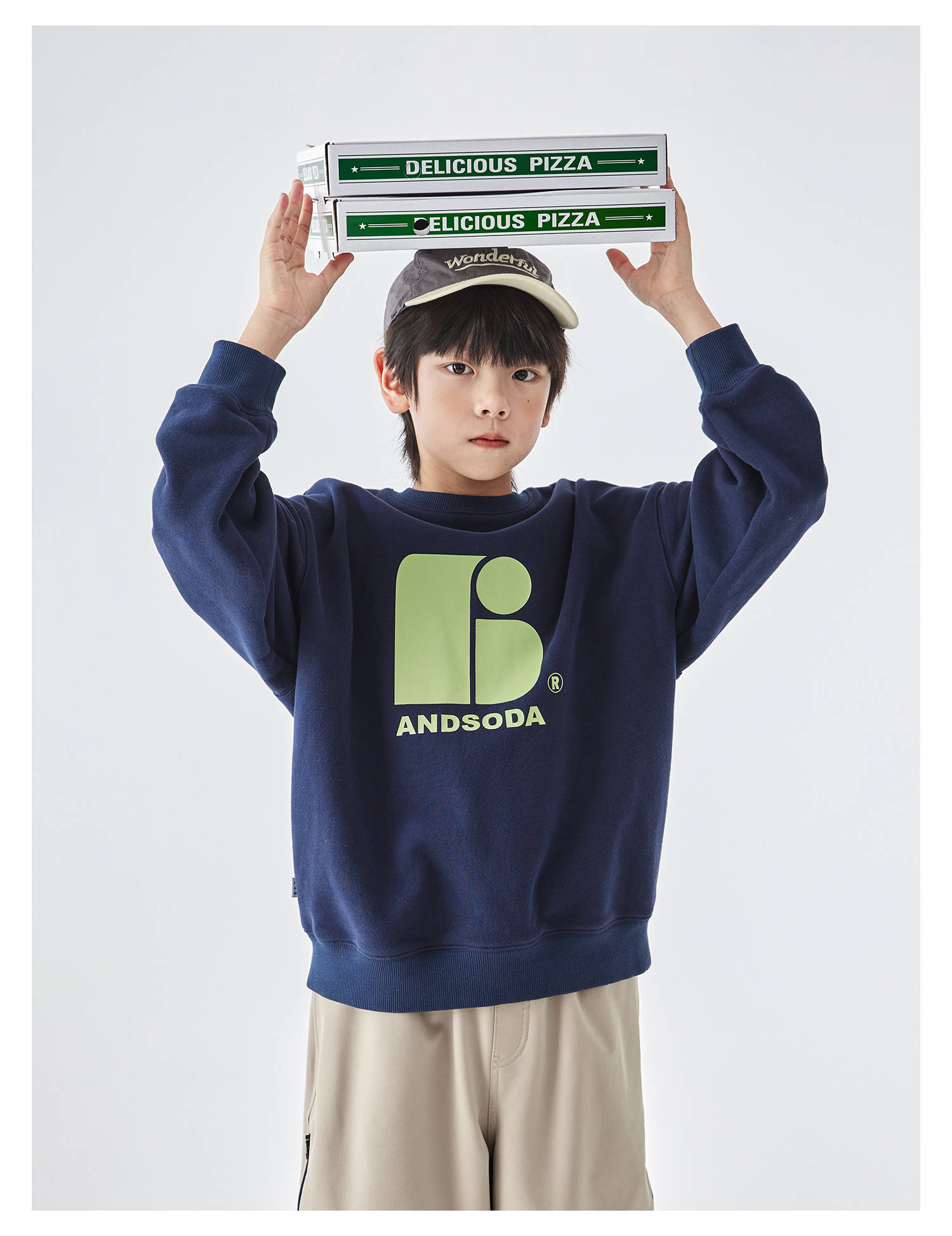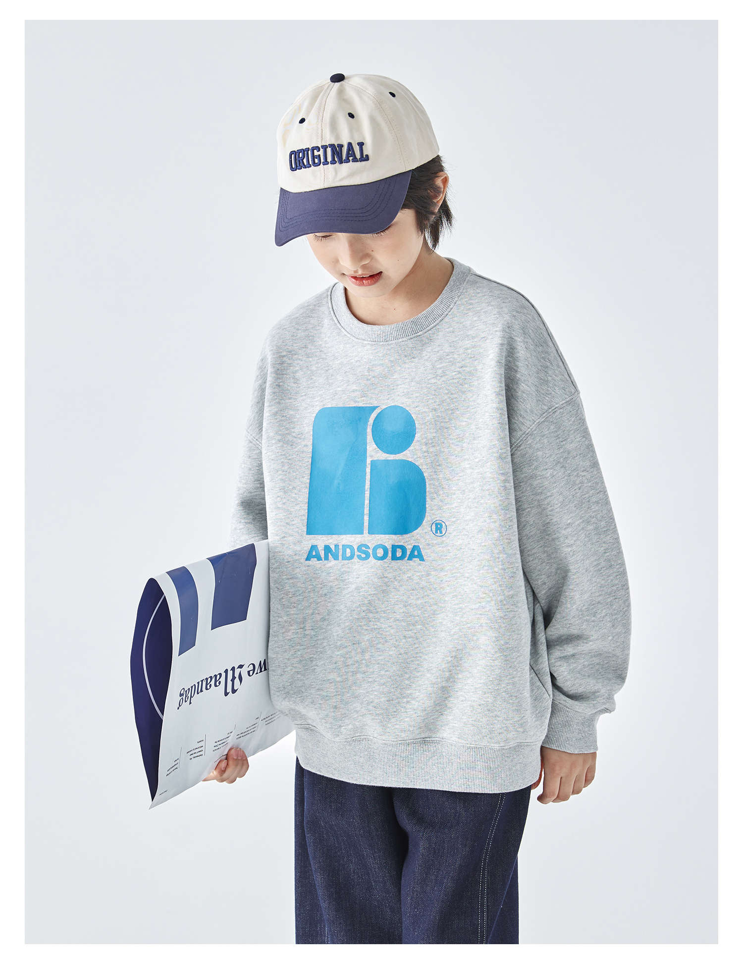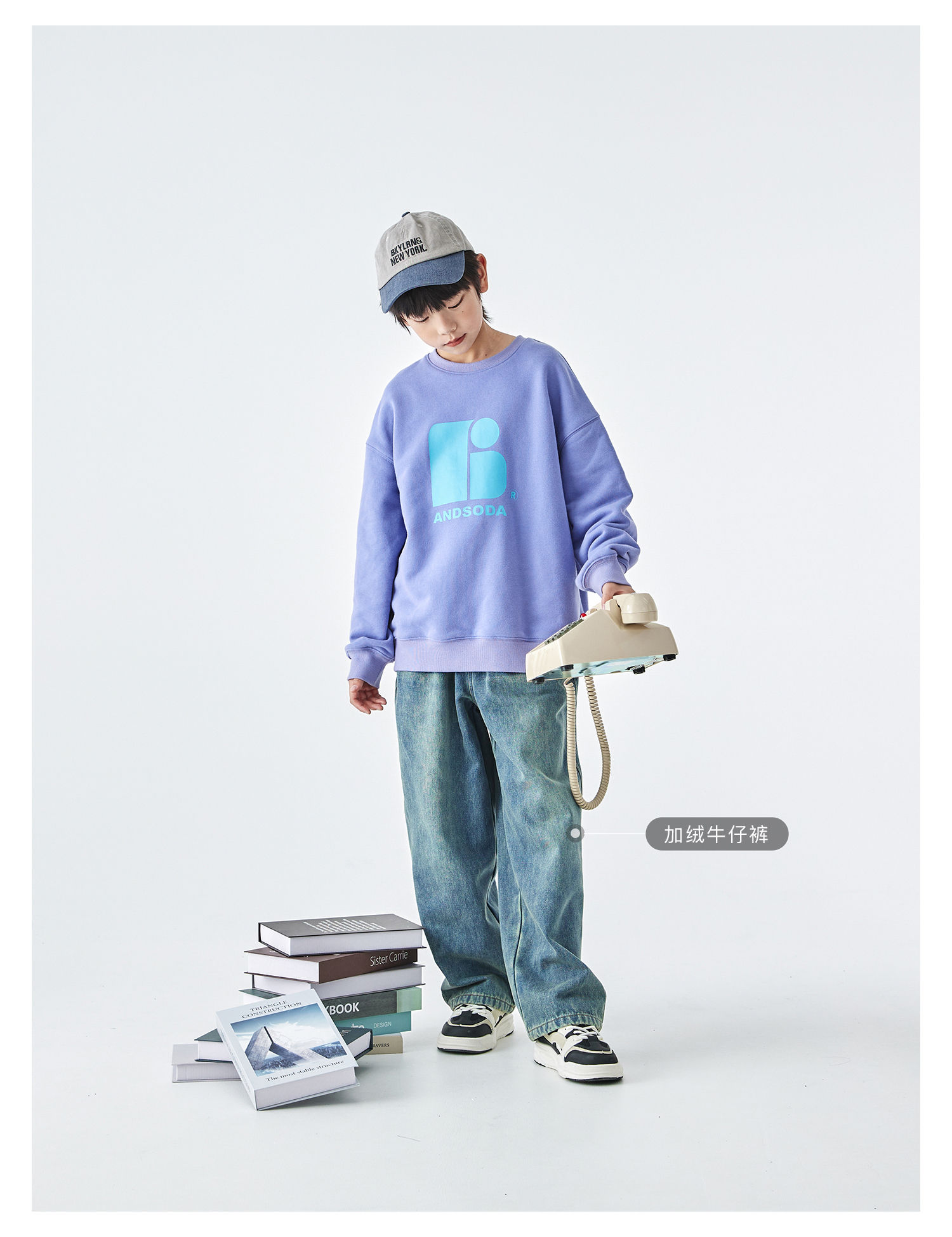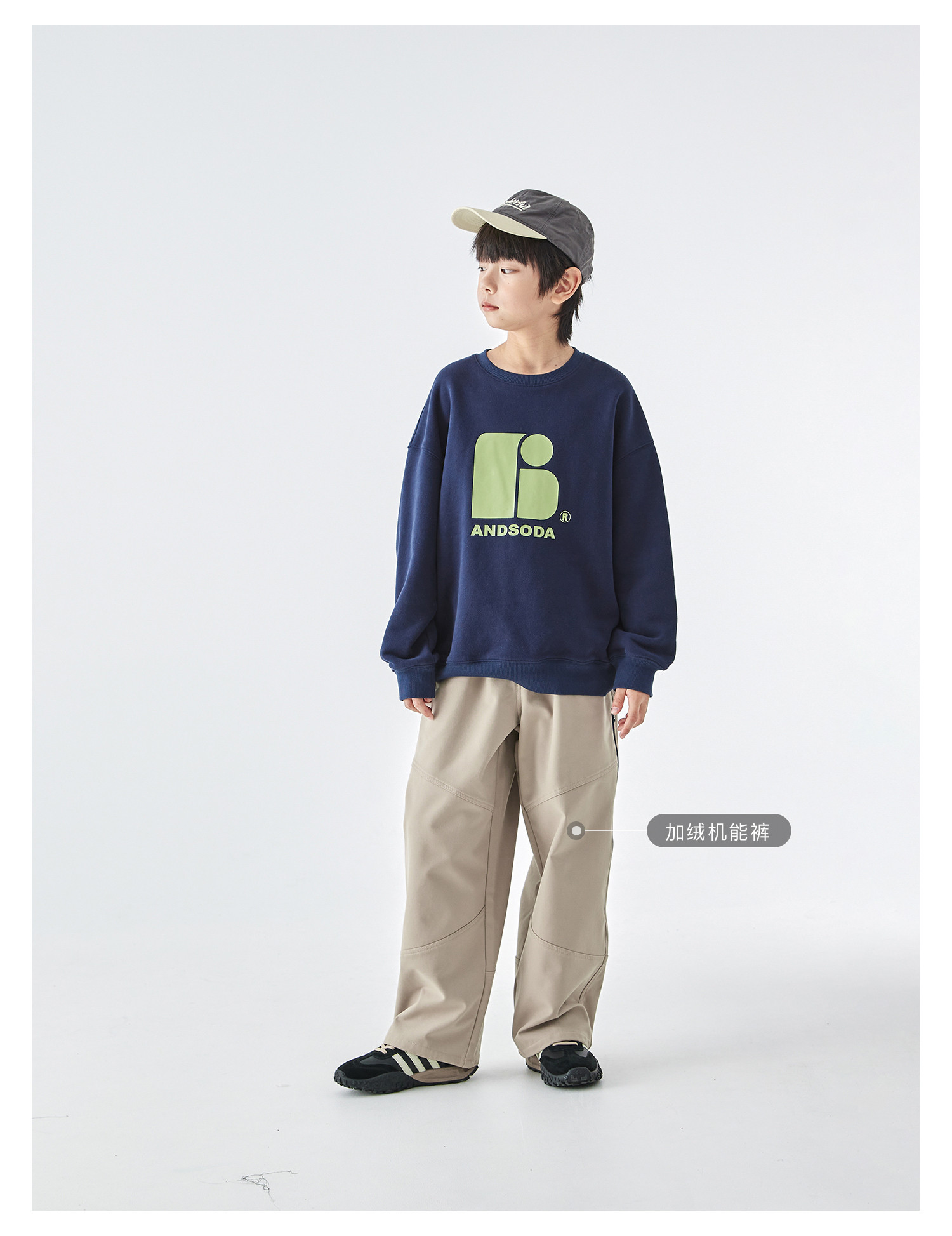 蓝汽水25年冬季新款亲子中大童字母印花圆领卫衣纯色绒感保暖上衣