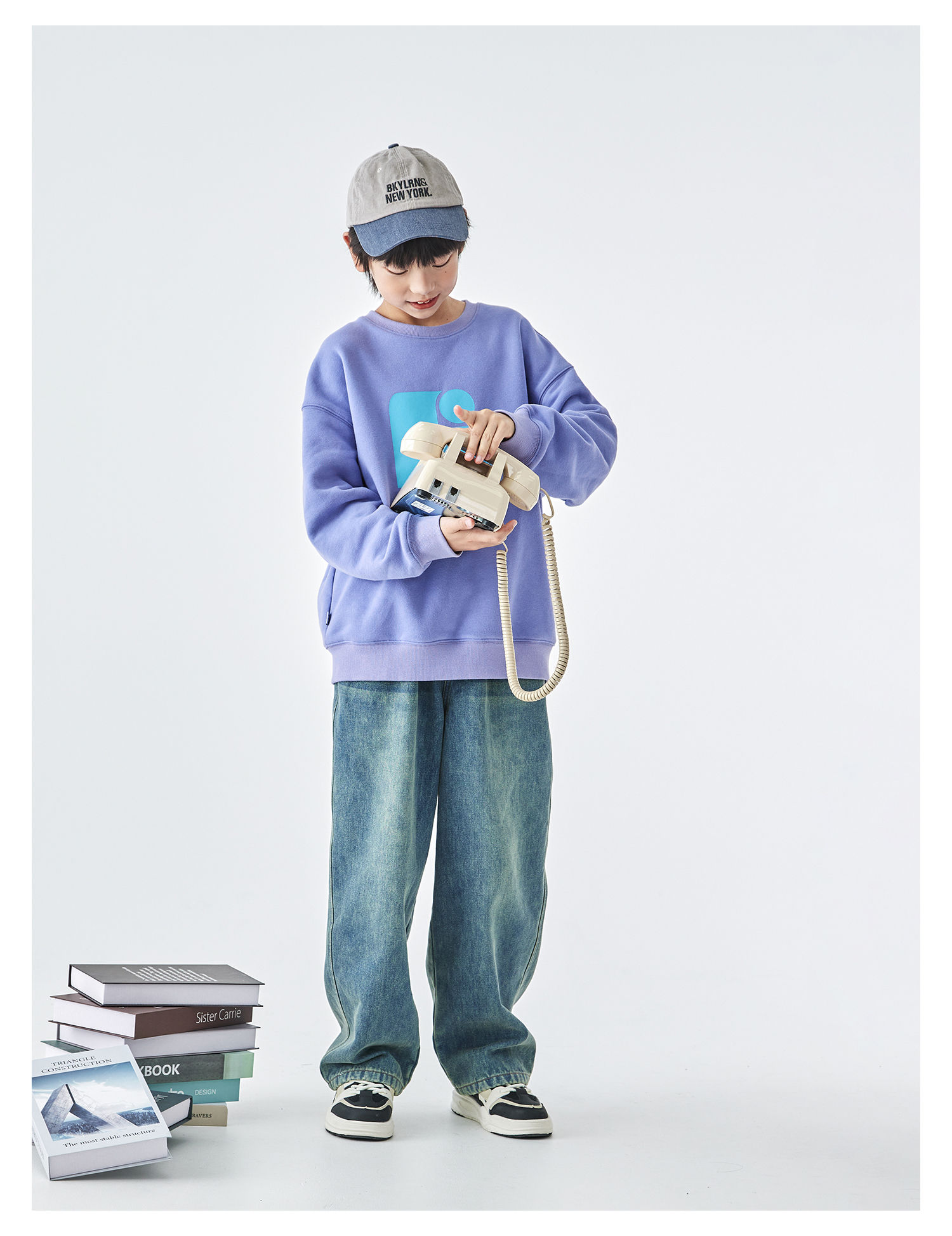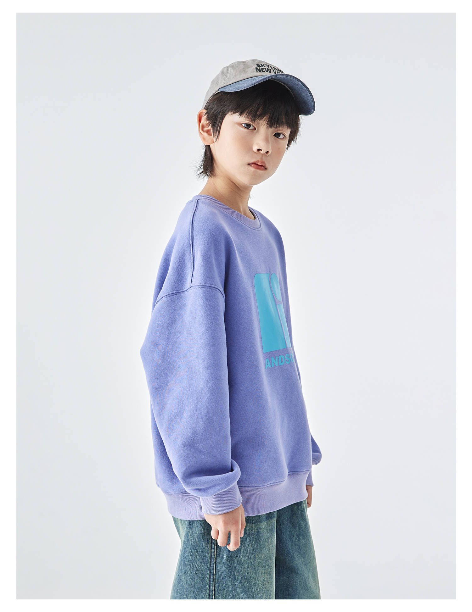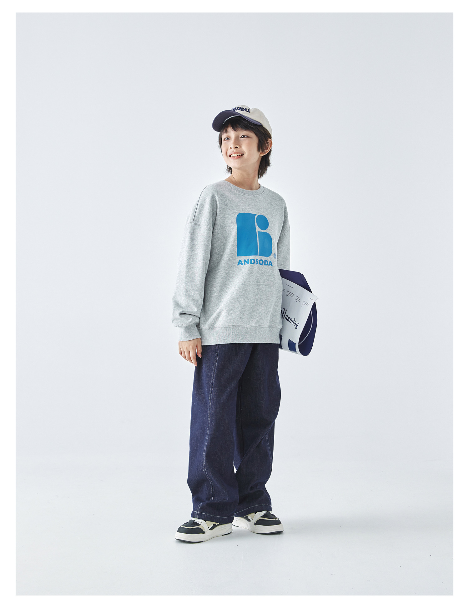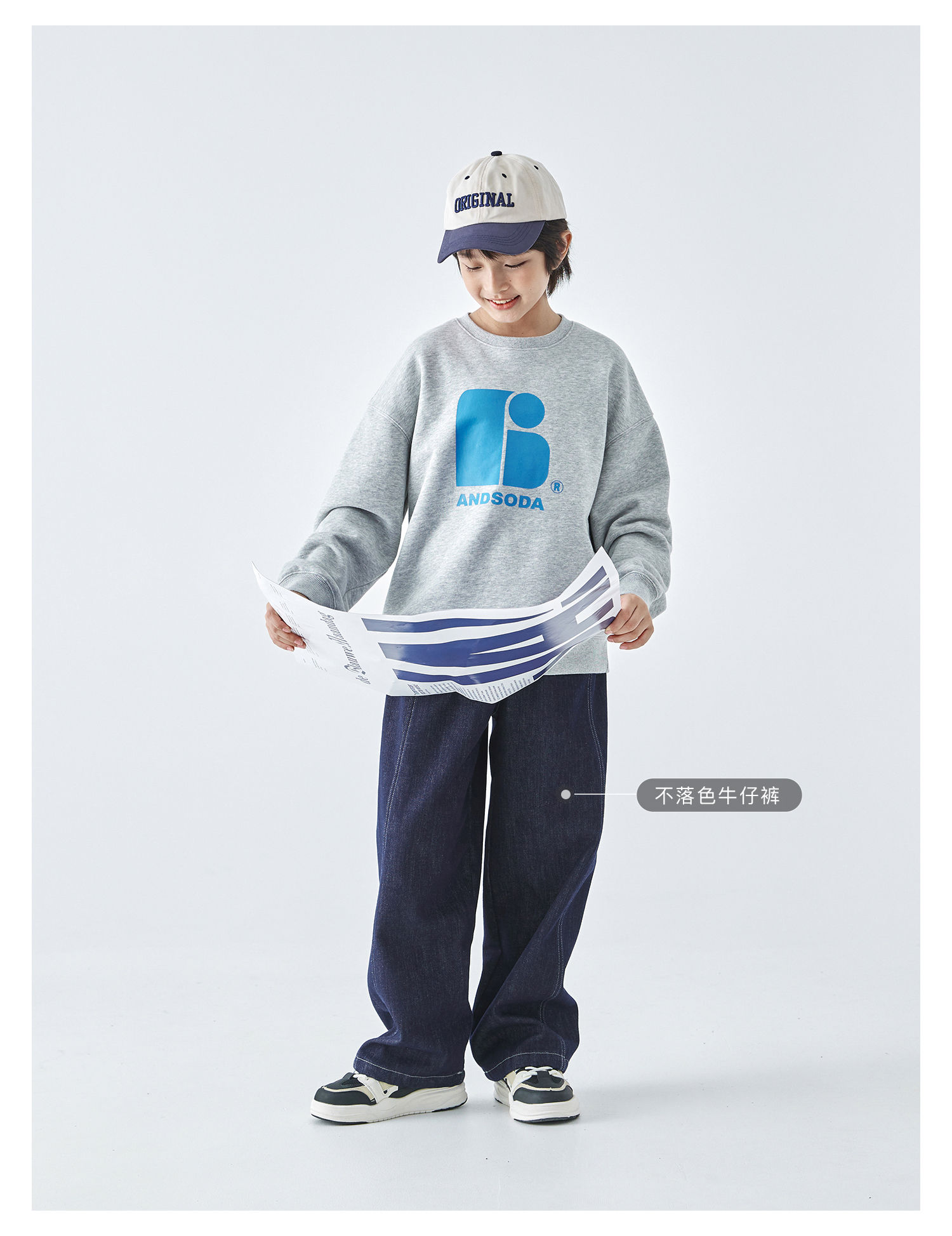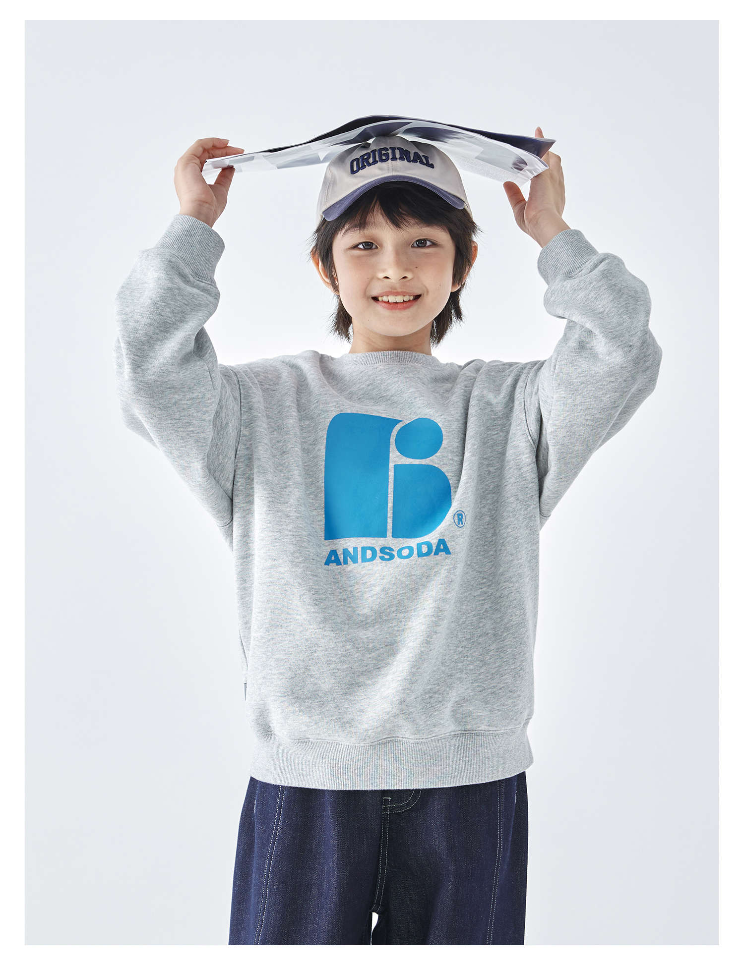 蓝汽水25年冬季新款亲子中大童字母印花圆领卫衣纯色绒感保暖上衣