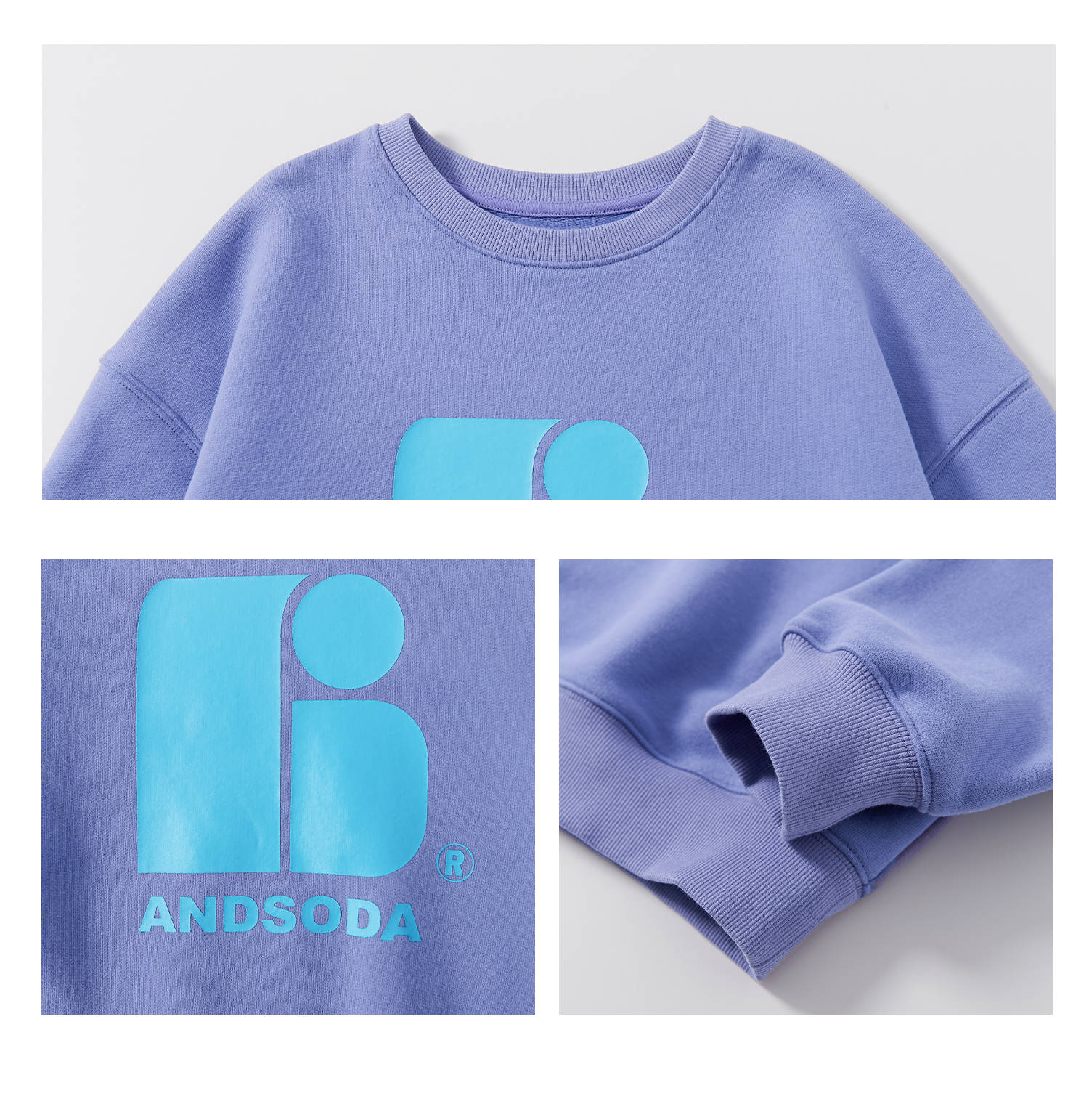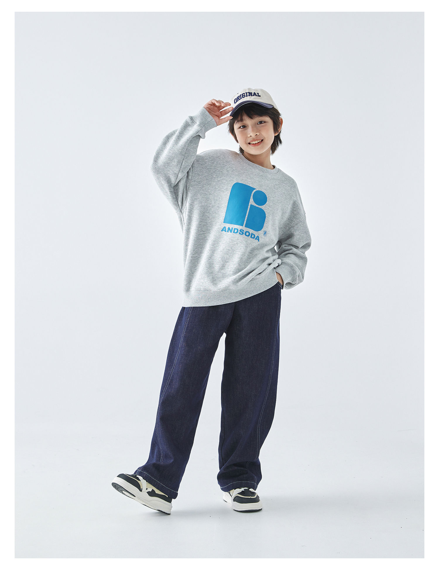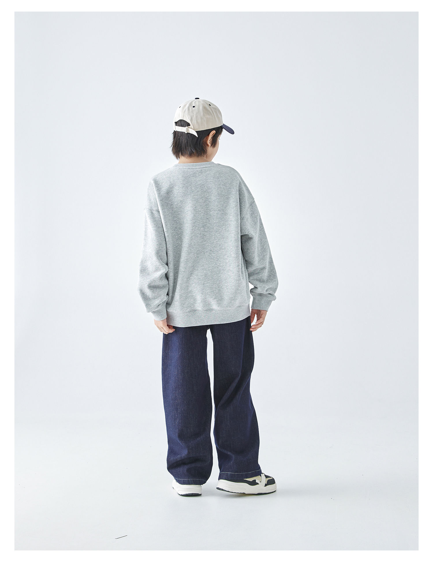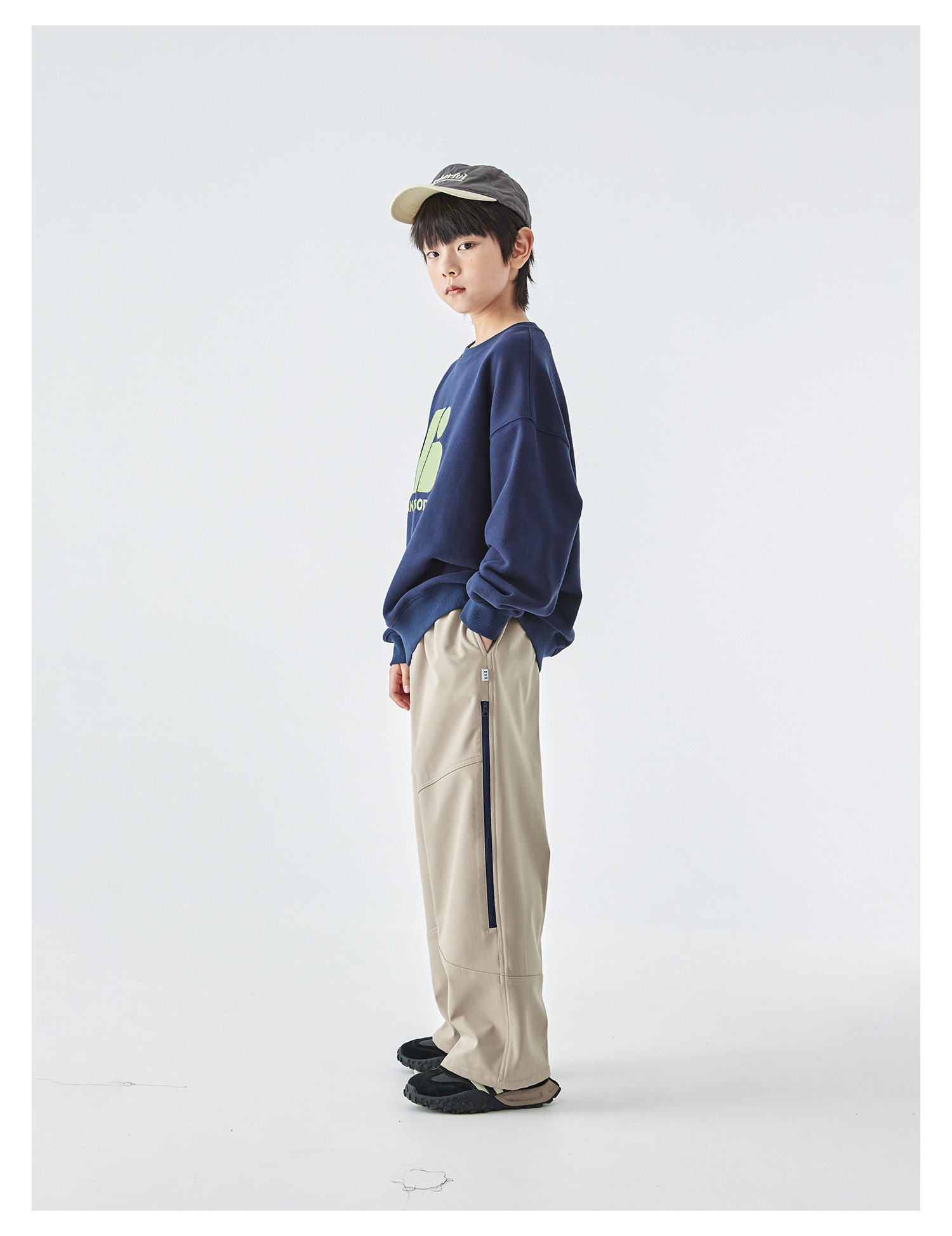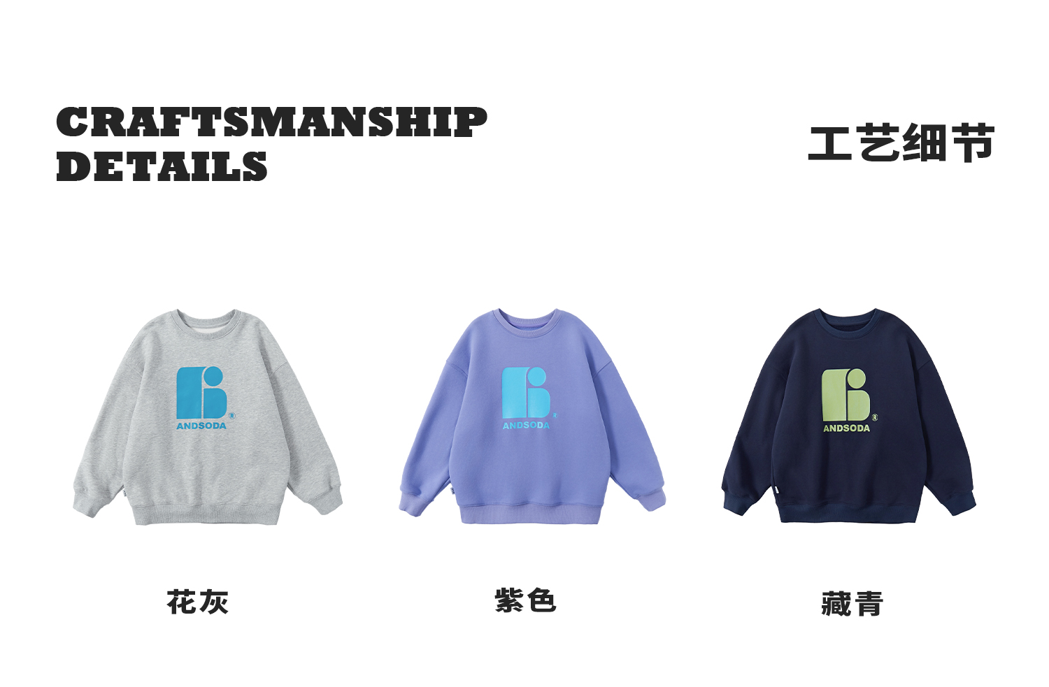 蓝汽水25年冬季新款亲子中大童字母印花圆领卫衣纯色绒感保暖上衣