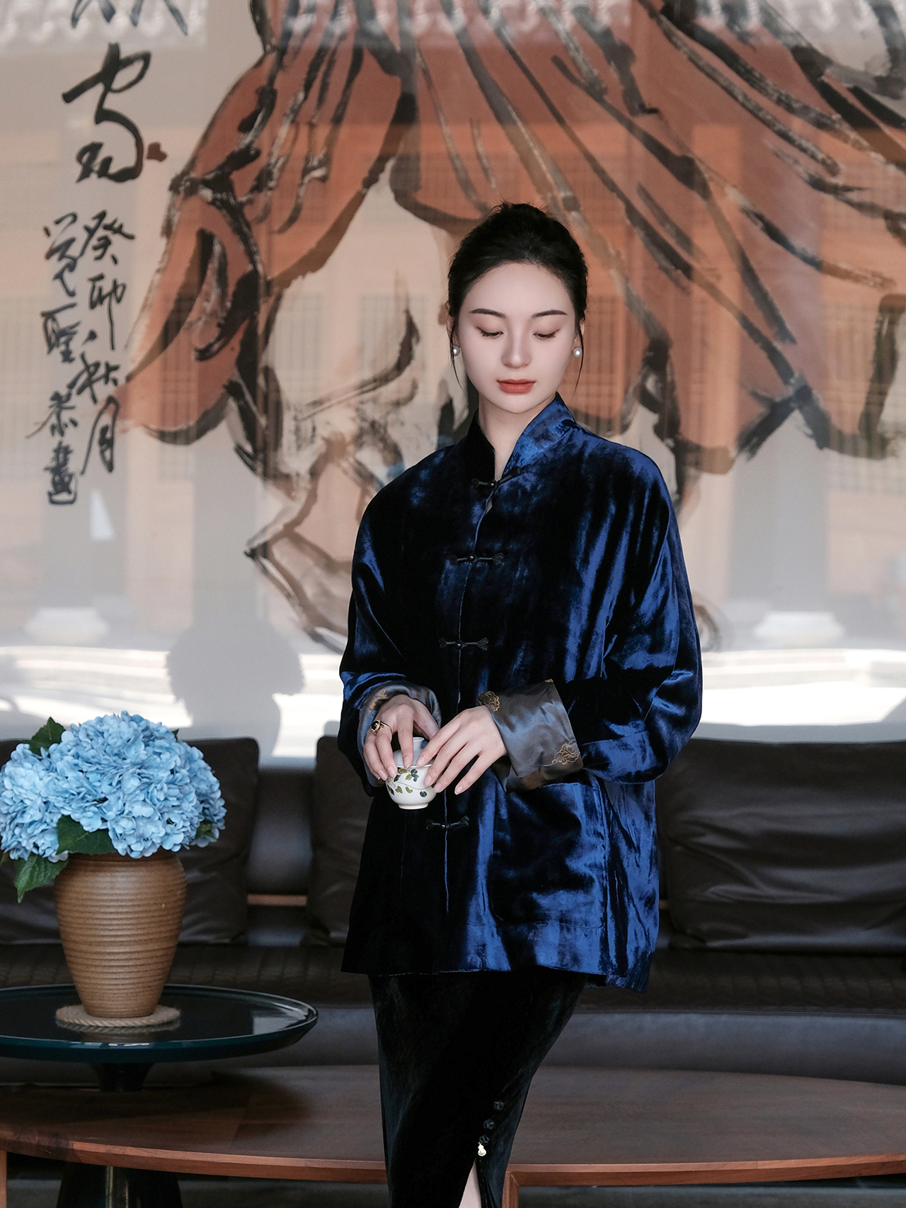 盛唐牡丹| 藏蓝色丝绒双面穿外套