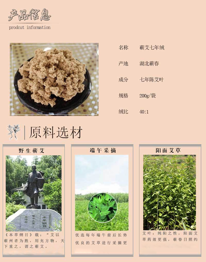蕲艾 七年陈 黄金 艾绒 40:1 厂家直销 200克/袋