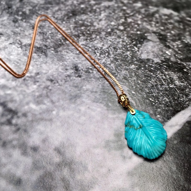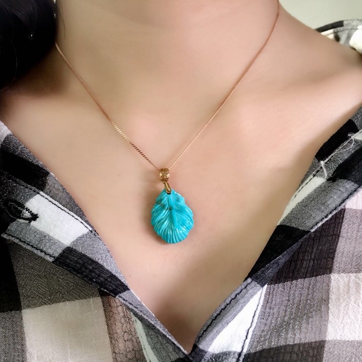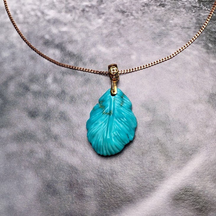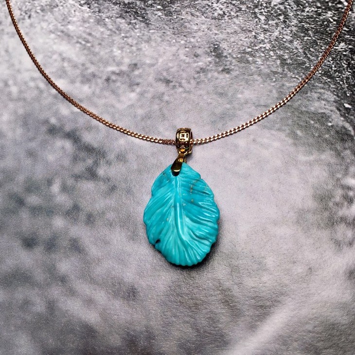【D900750】绿松石金枝玉叶,原矿高瓷高蓝料,18K金镶嵌,雕工精美,瓷度佳,质地细腻。线条流畅,寓意:事业有成。裸石尺寸20.9*15.2*5.2mm,总重2.1,g,秒杀价999
