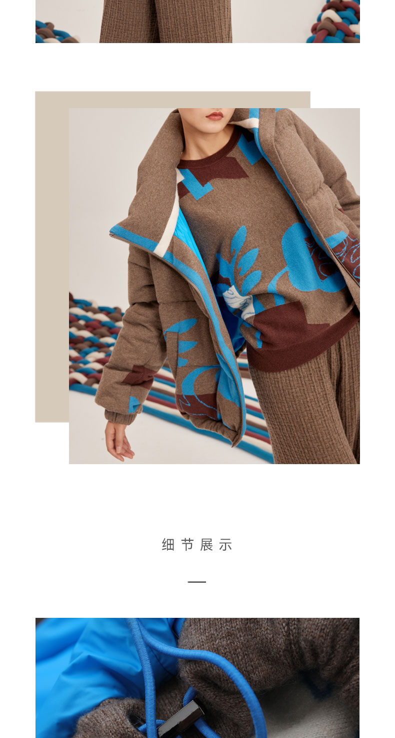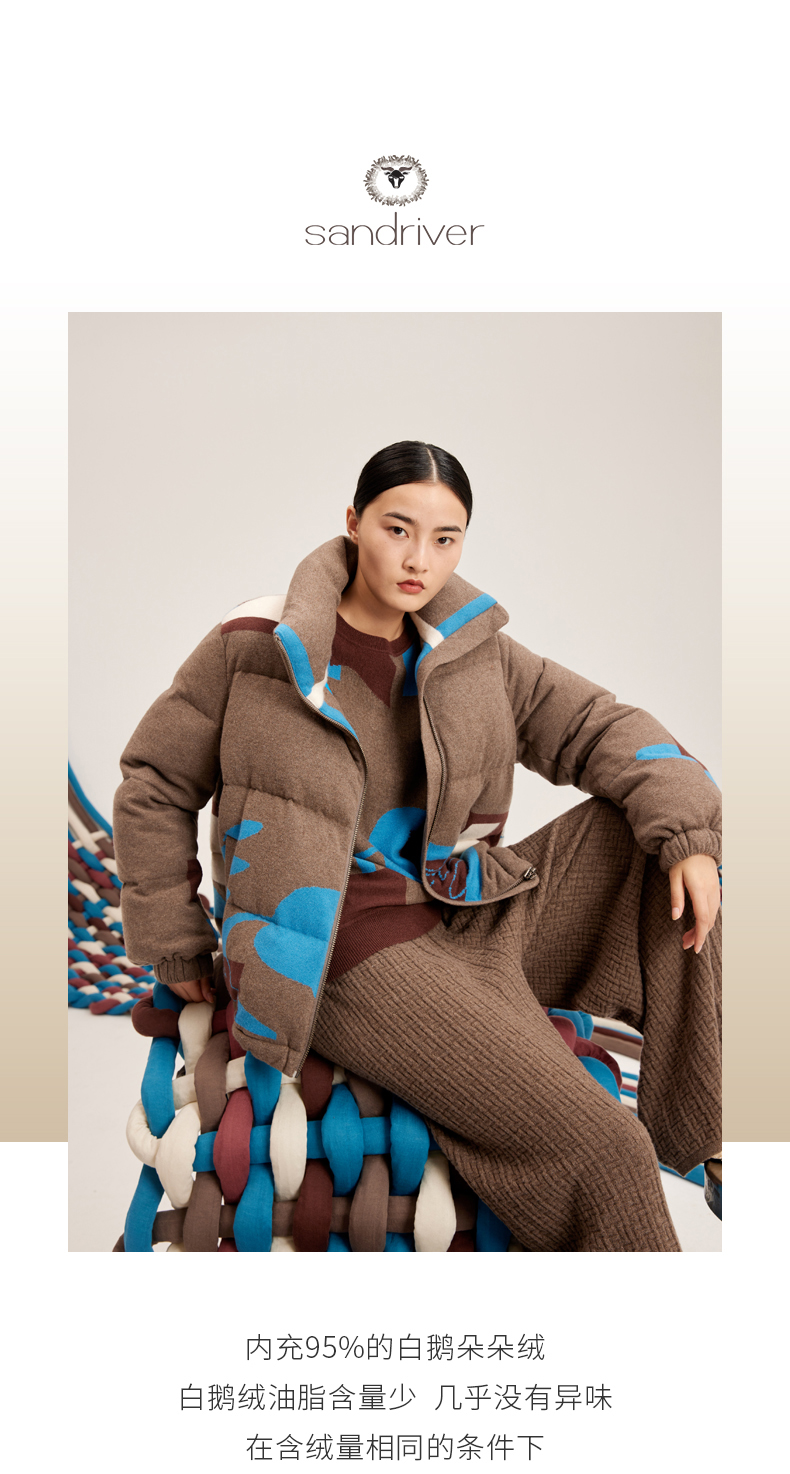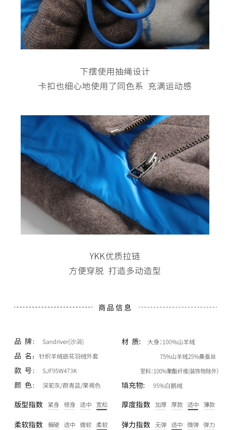 女款针织羊绒嵌花羽绒外套SJF95W473K