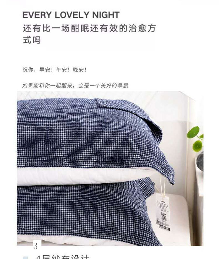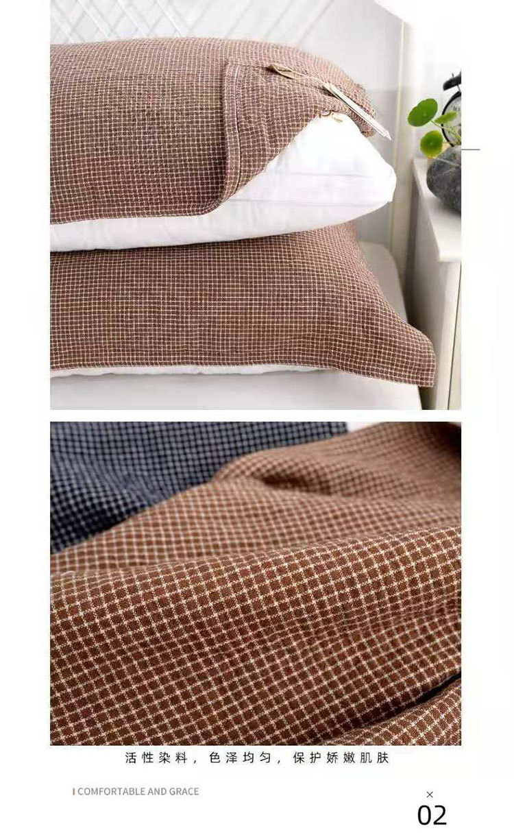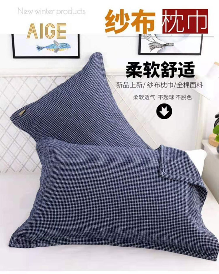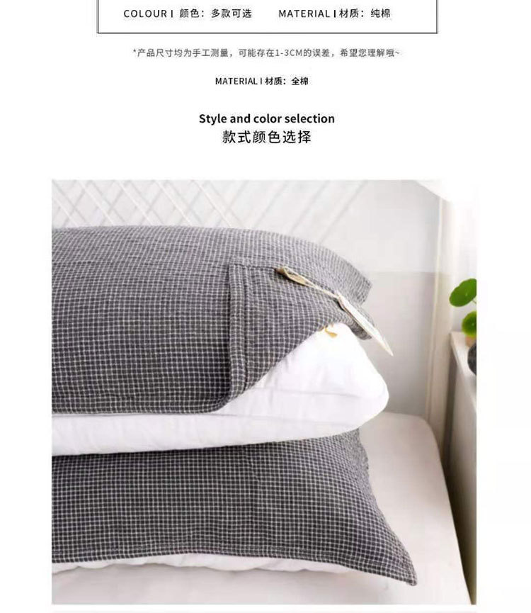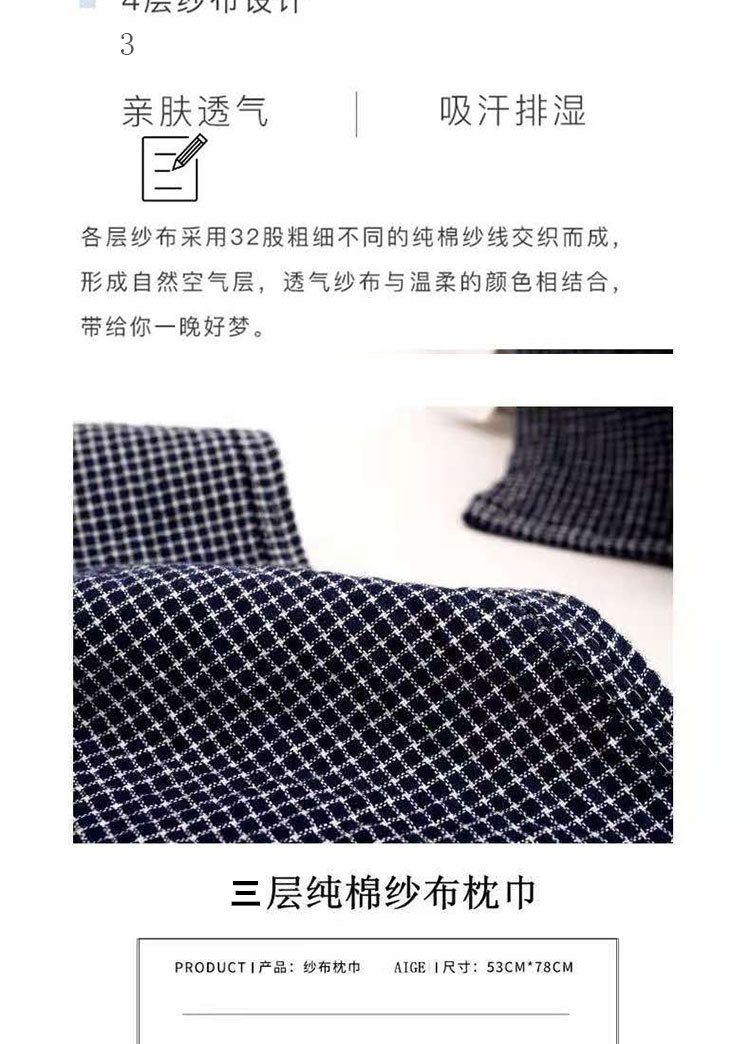 【枕巾】*日式枕巾纯棉提花四层细密格子成人一对防脱落枕头巾