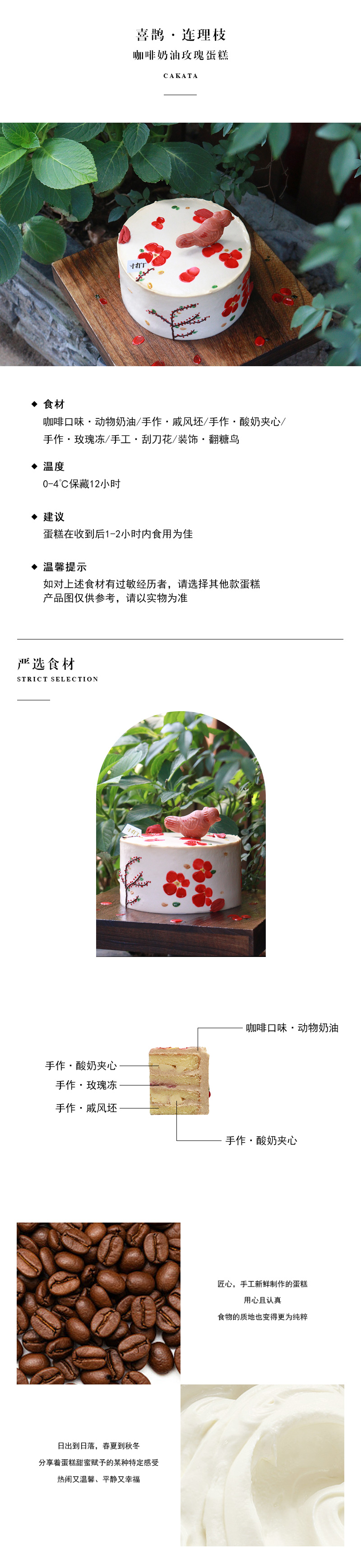 喜鹊·连理枝丨咖啡奶油玫瑰蛋糕(可备注少糖)