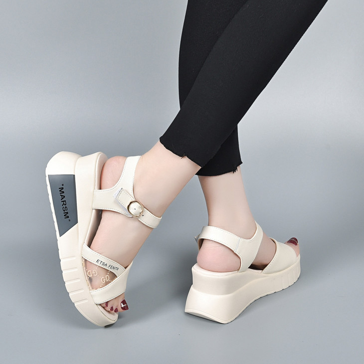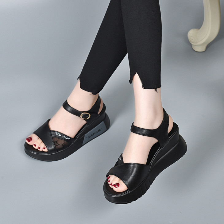 2022夏季新款厚底凉鞋材质:头层牛皮颜色:黑 米尺码:35-39跟高:5公分