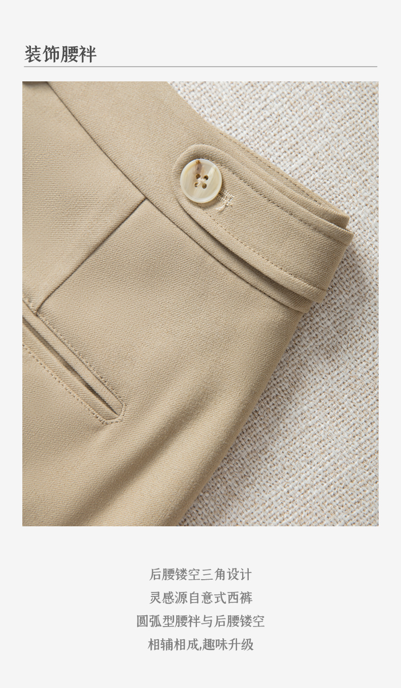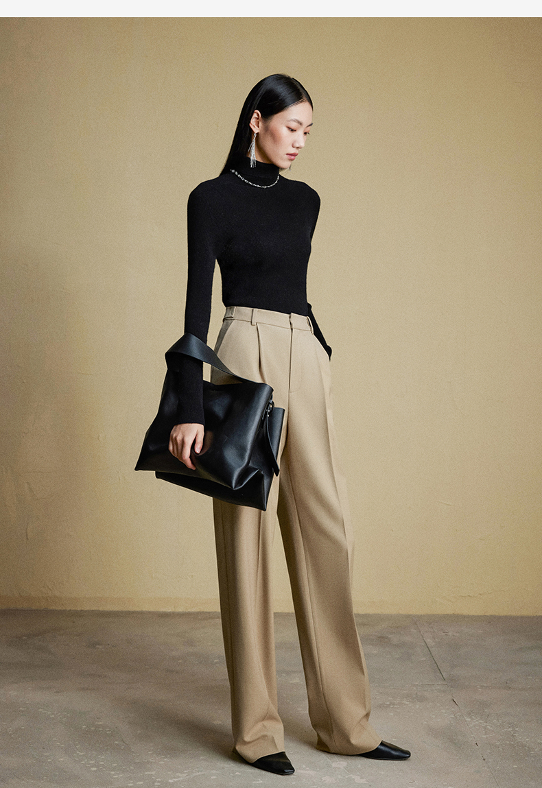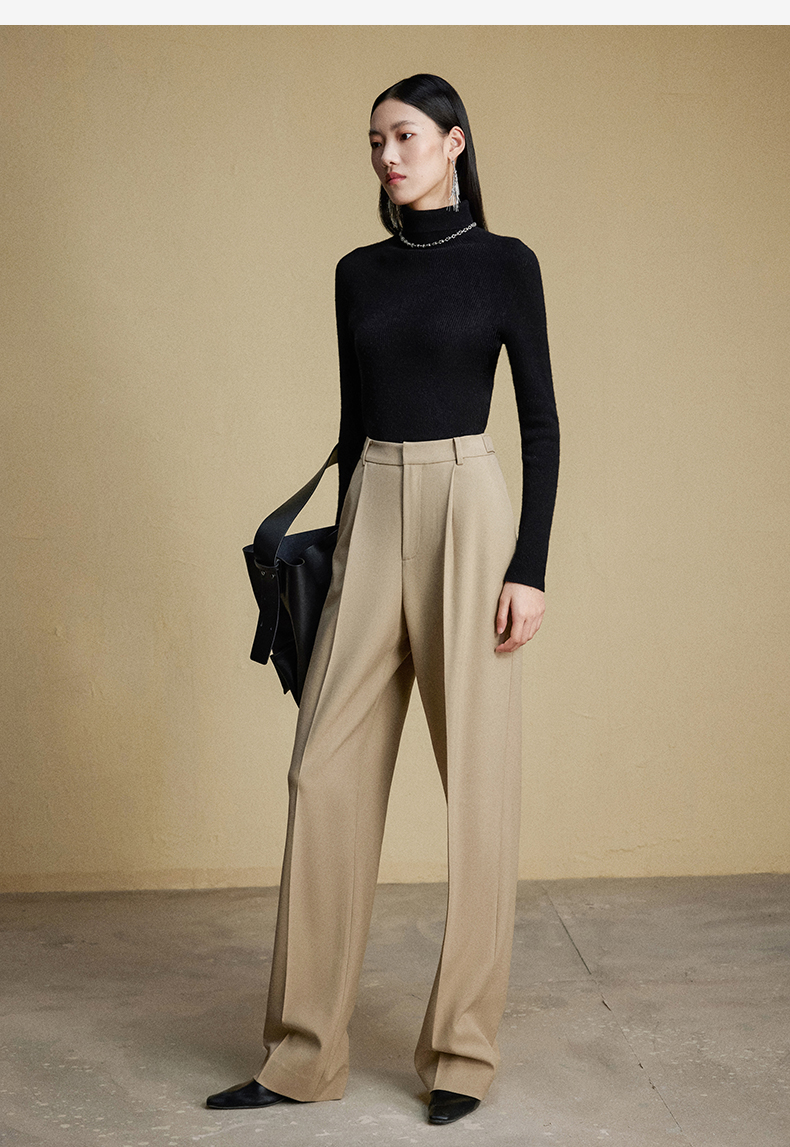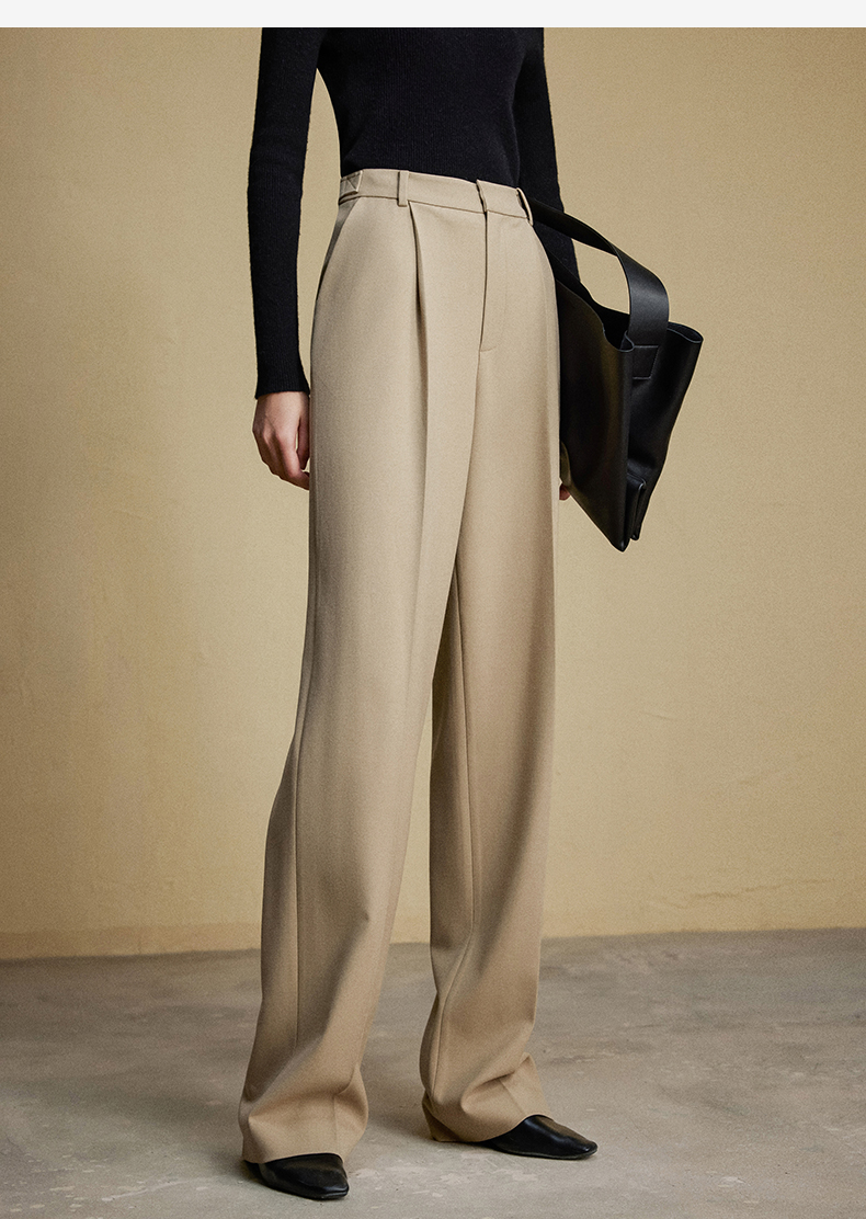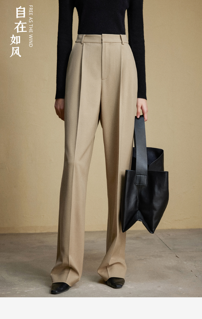 西嘉C+IMPRESS/西嘉美拉德直筒休闲裤女秋冬新款高腰浅驼色宽松西装裤KZ2304025