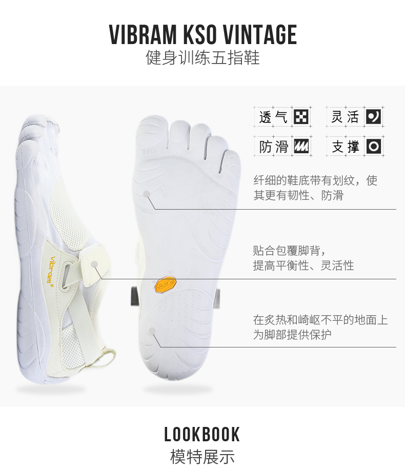 Vibram五指鞋 2021年新款经典复刻室内外运动健身跑步小白鞋KSO男