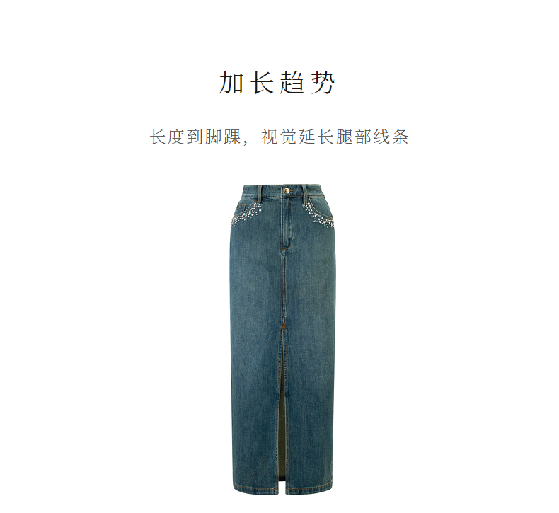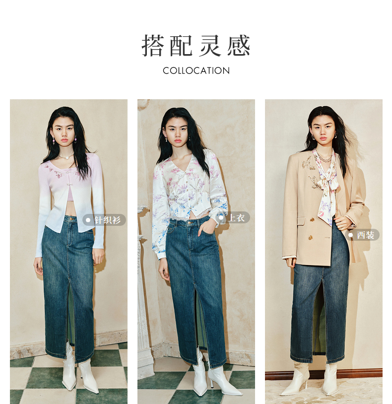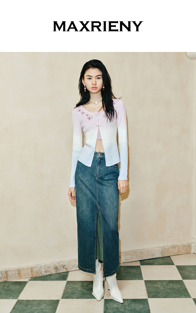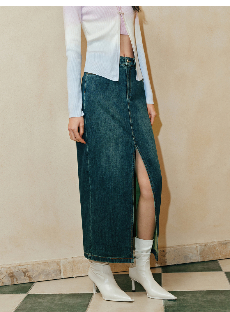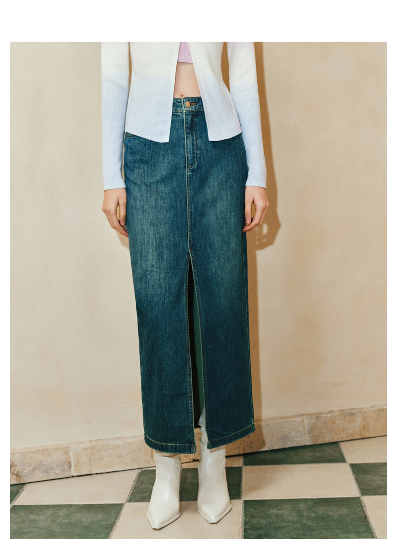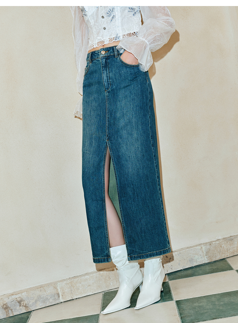 【东方玉兰-商场同款新品】MAXRIENY精致复古感开衩牛仔半裙2025春(货号:MC85SK039)