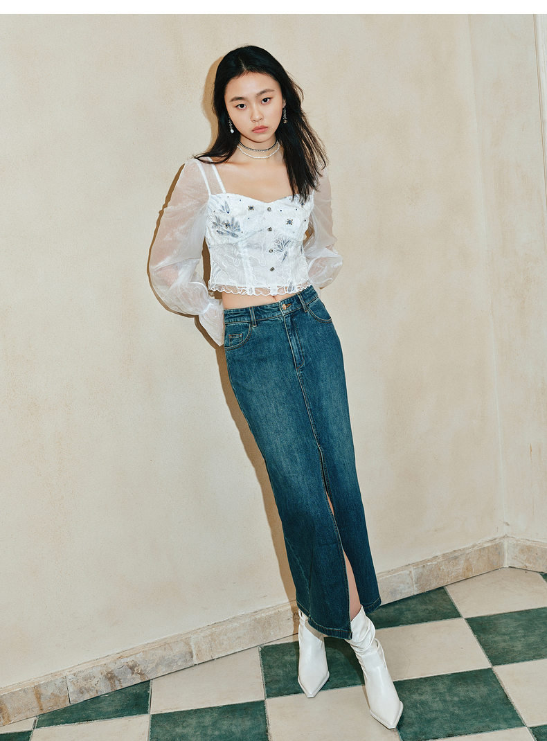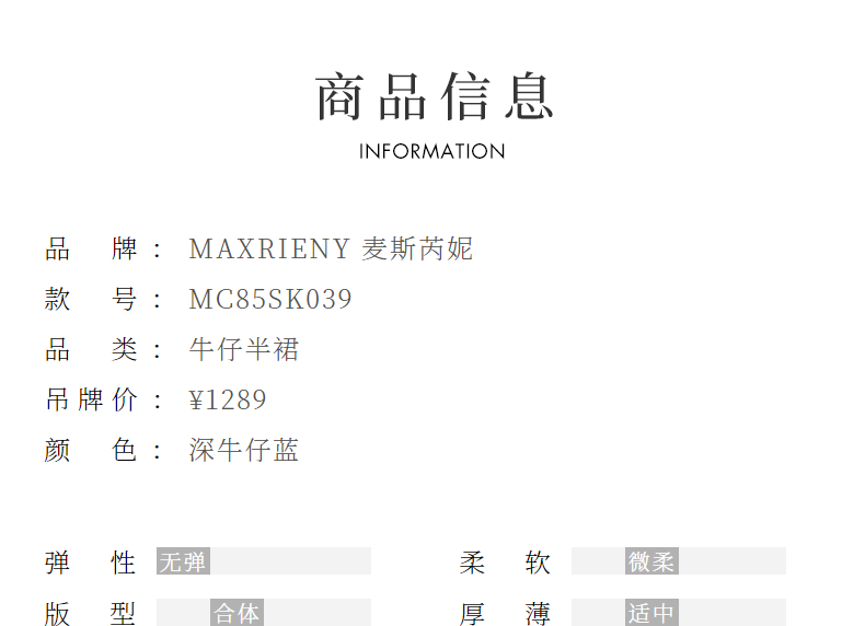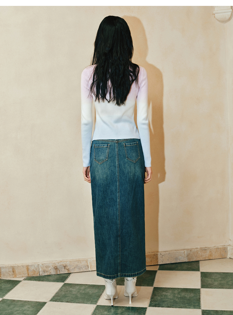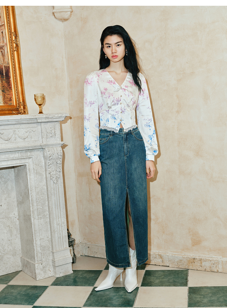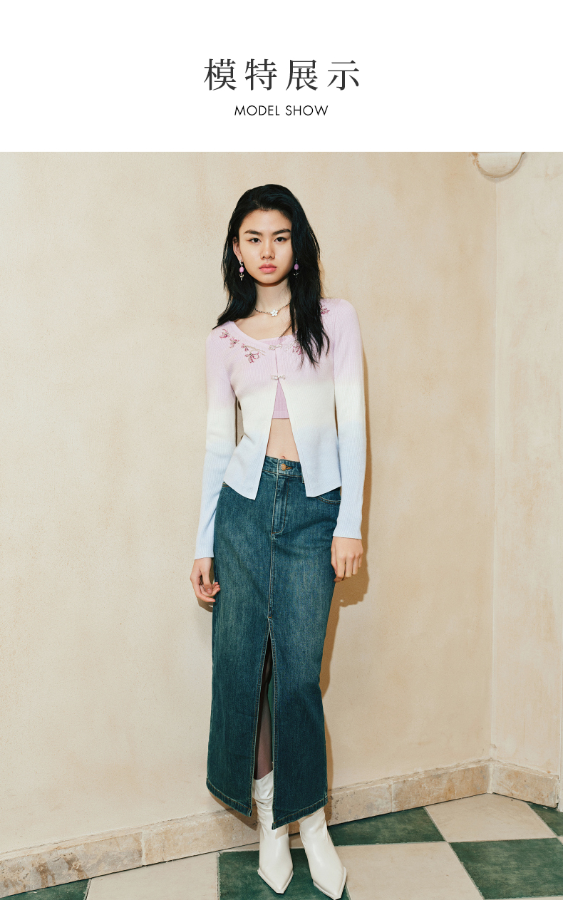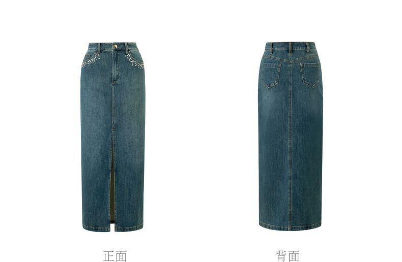 【东方玉兰-商场同款新品】MAXRIENY精致复古感开衩牛仔半裙2025春(货号:MC85SK039)