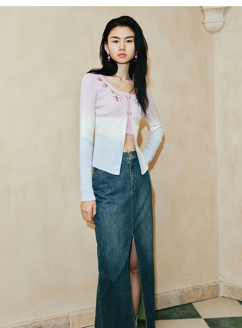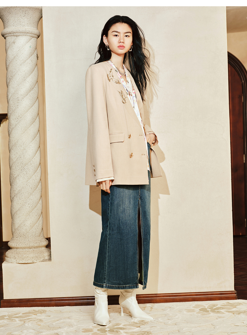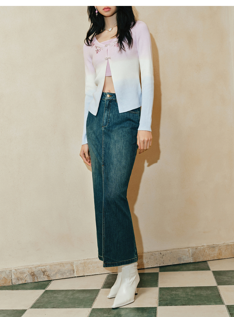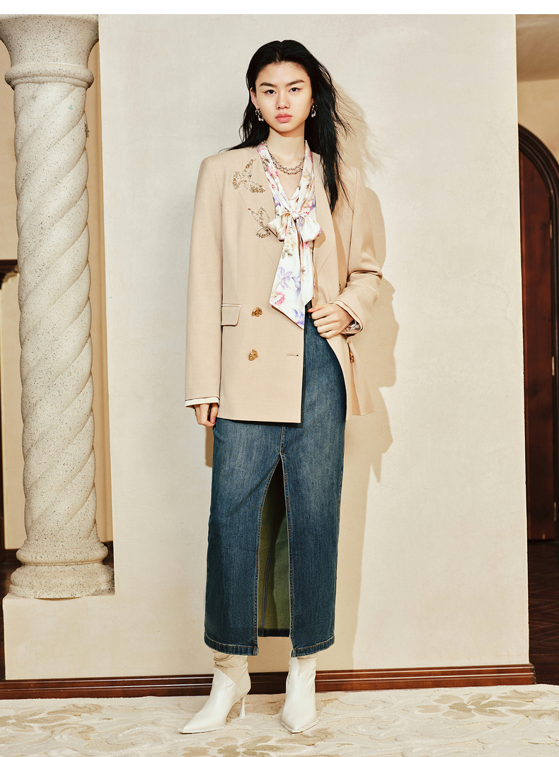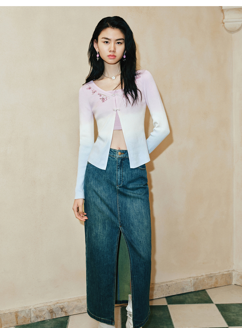 【东方玉兰-商场同款新品】MAXRIENY精致复古感开衩牛仔半裙2025春(货号:MC85SK039)