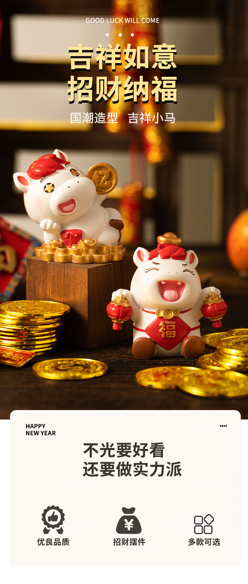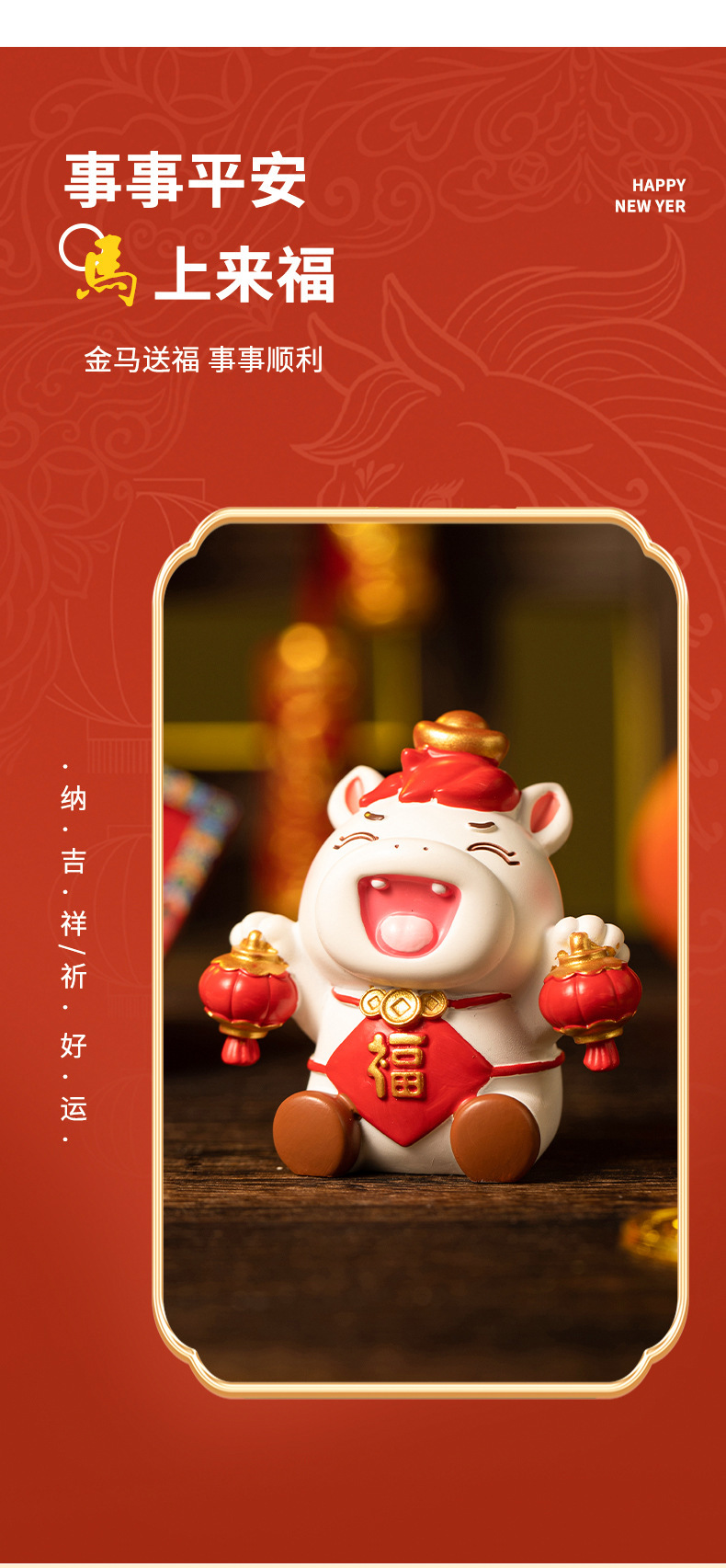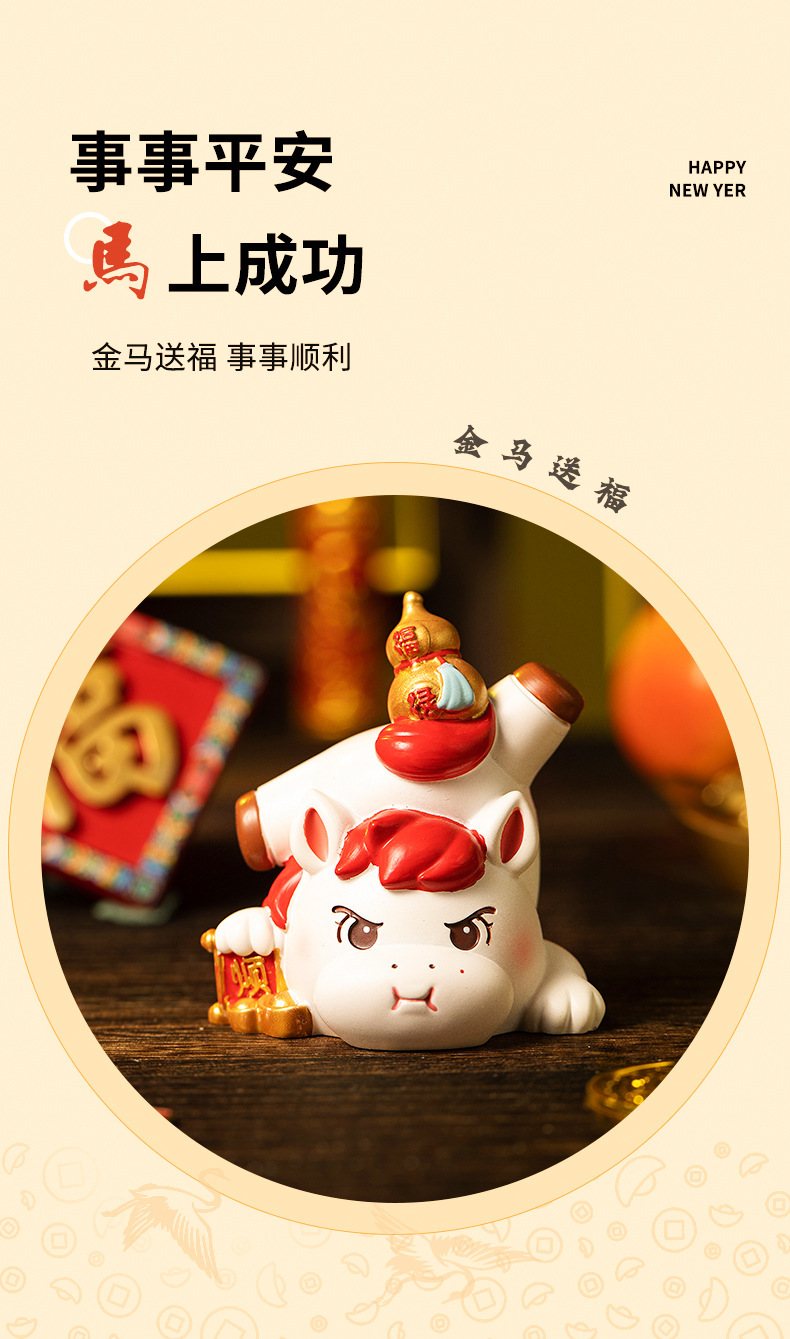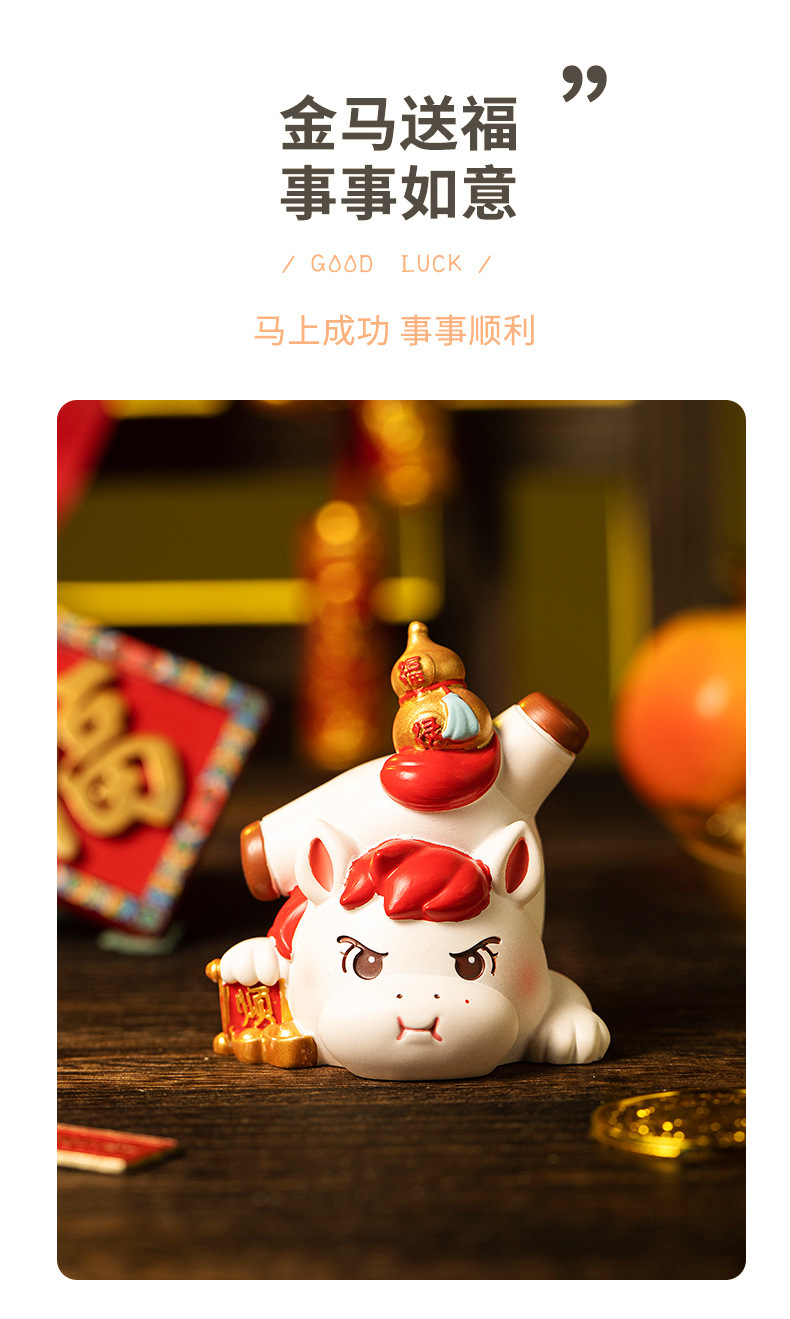 【吉祥如意招财纳福❗️国潮造型吉祥小马】马年新款好运小福马盲盒创意招财生肖马桌面汽车装饰摆件新年礼物。jc