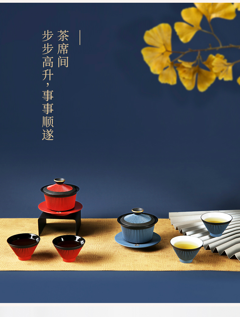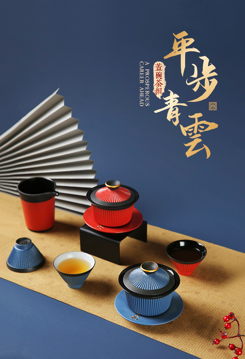 【彼达思】台湾陆宝功夫茶具套组平步青云盖碗茶组一壶六杯带茶海