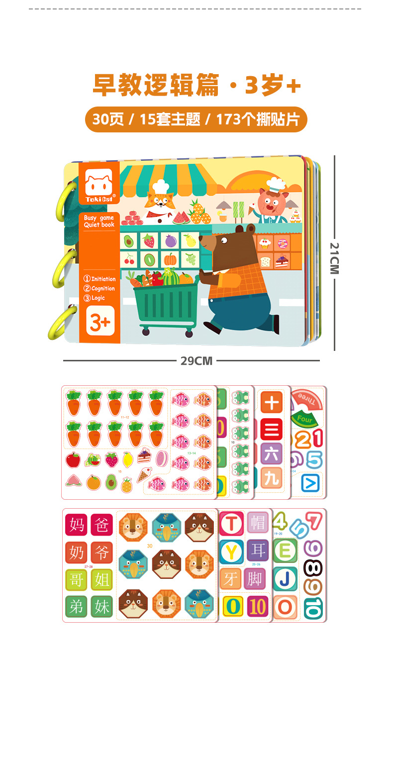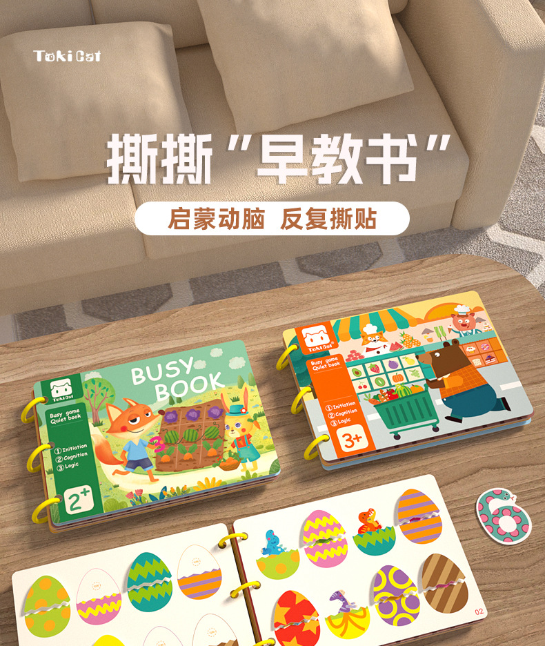 【撕撕“早教书”, 启蒙动脑,反复撕贴】安静书宝宝撕撕书 婴幼儿早教魔术贴 手撕拉粘贴卡片 幼儿园启蒙玩具。hb