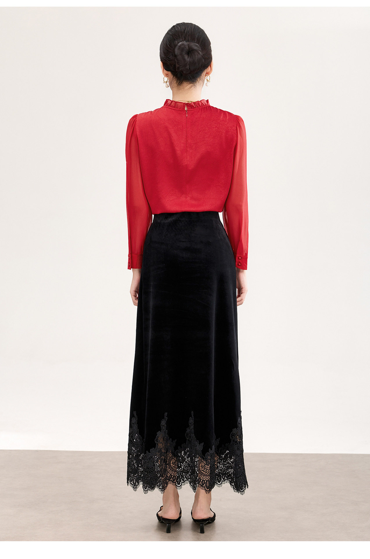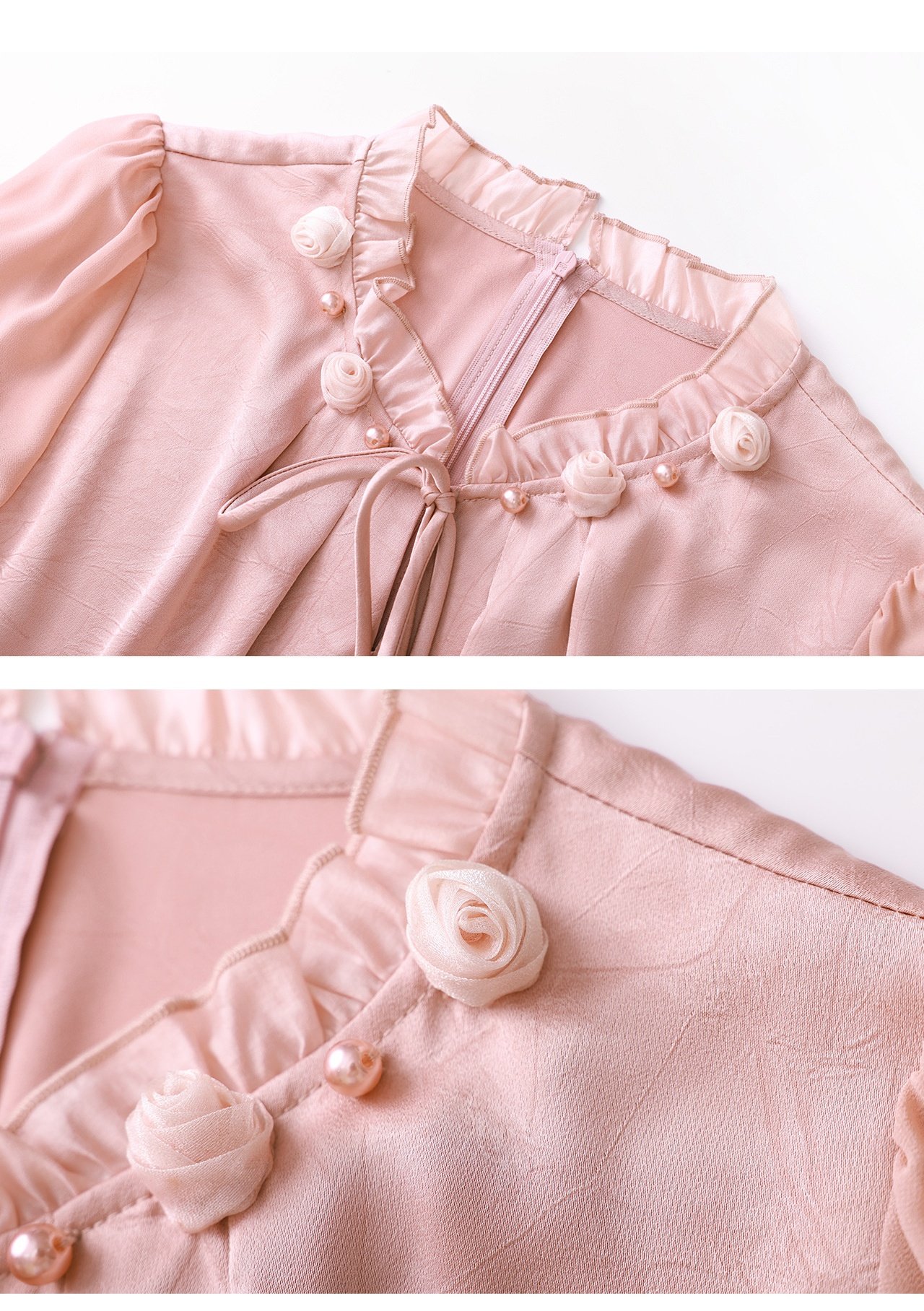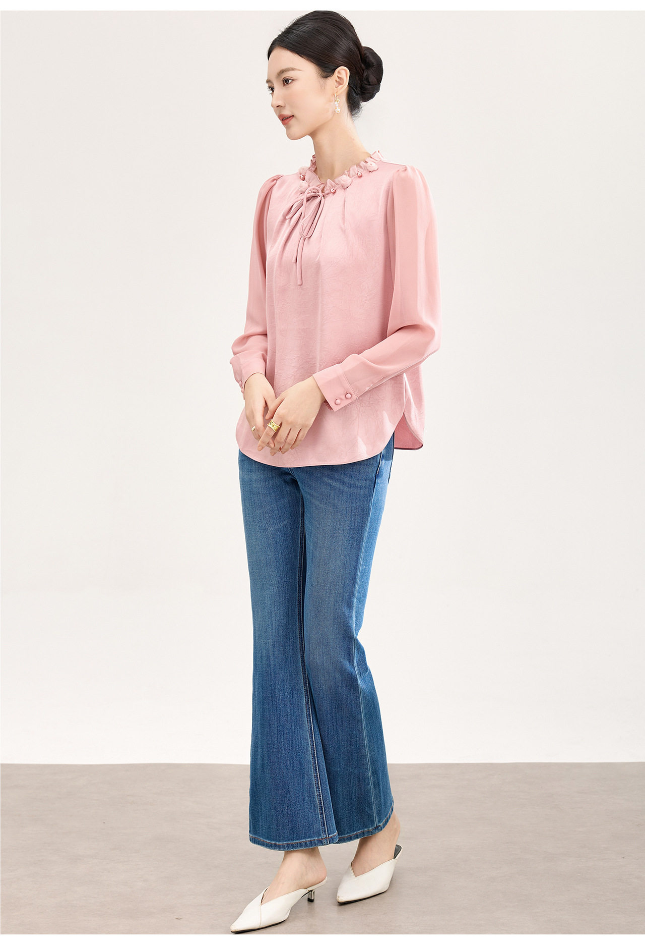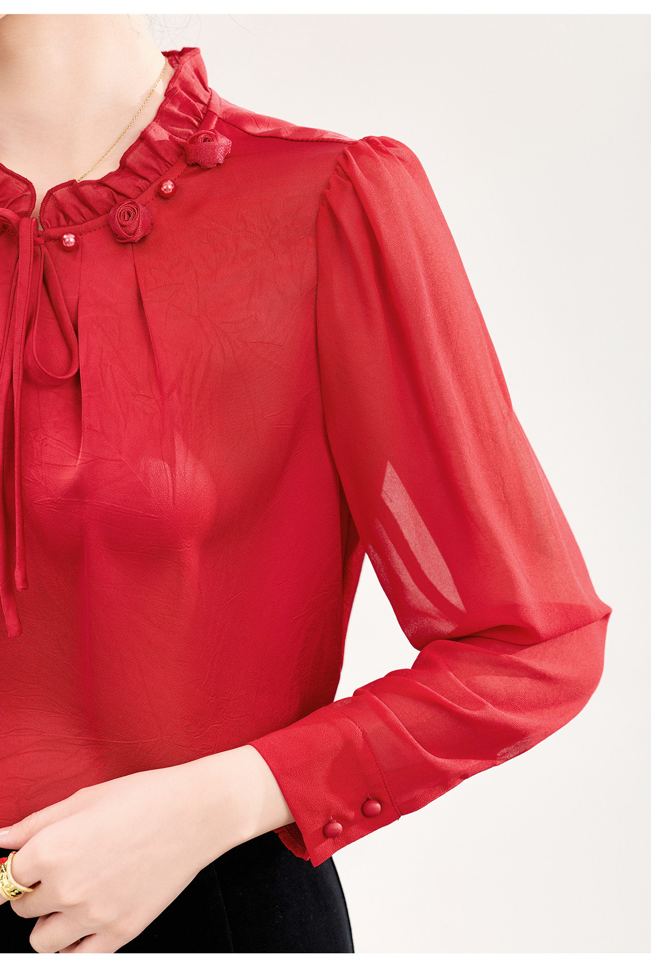 「高货wl」全新升级【铂金会员238/天猫319/差价81】(04229)洛诗琳2026春季新款法式提花肌理感绉缎拼乔其纱长袖衬衫