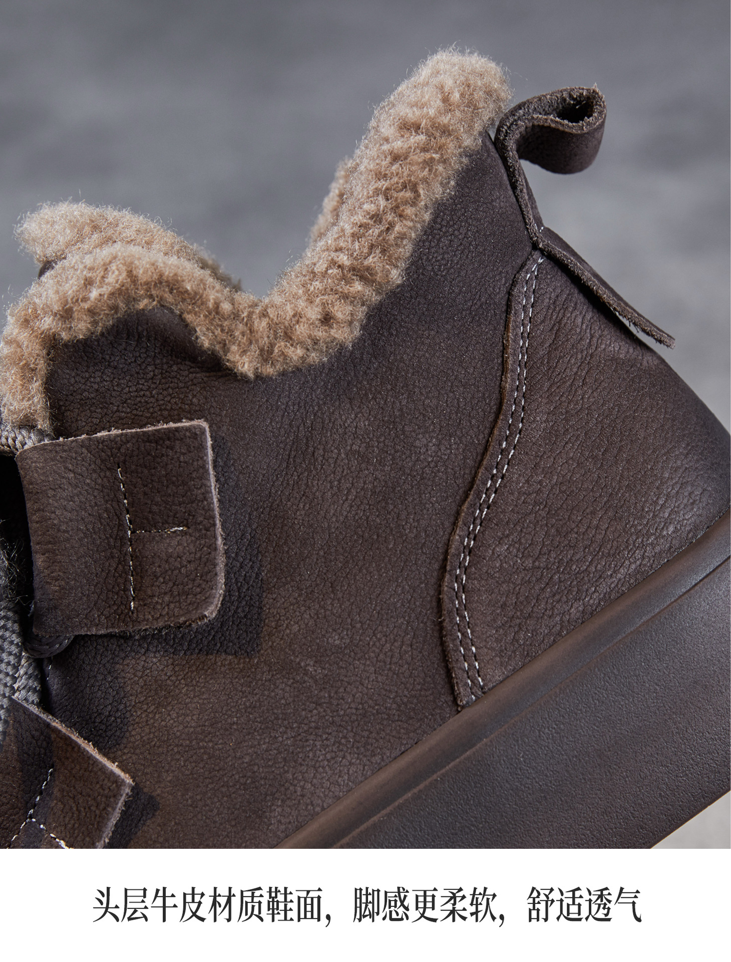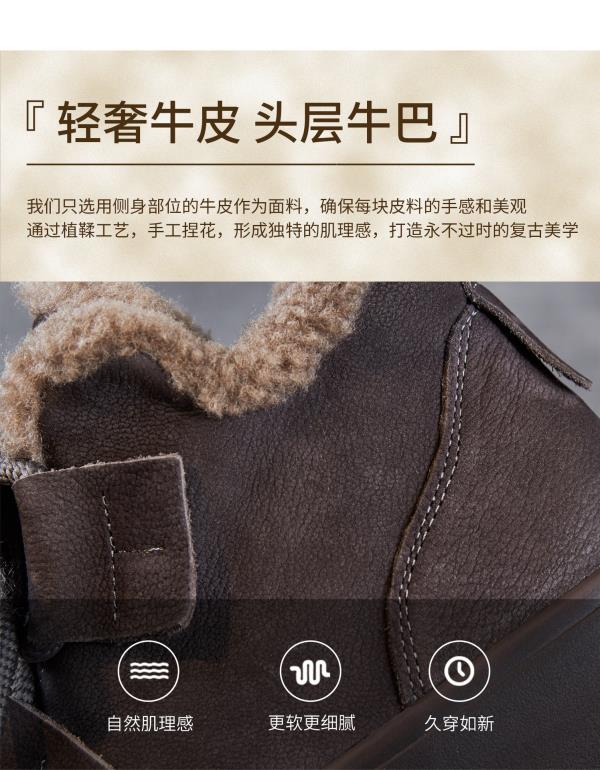 ZM258689真皮羊羔绒短靴女秋冬复古百搭雪地靴加厚加绒保暖棉靴厚底马丁靴 商品图4