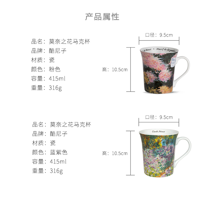【Könitz酷尼子】陶瓷水杯茶杯马克杯 莫奈之花415ml