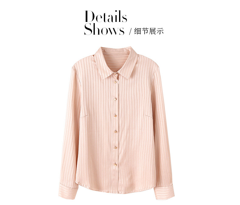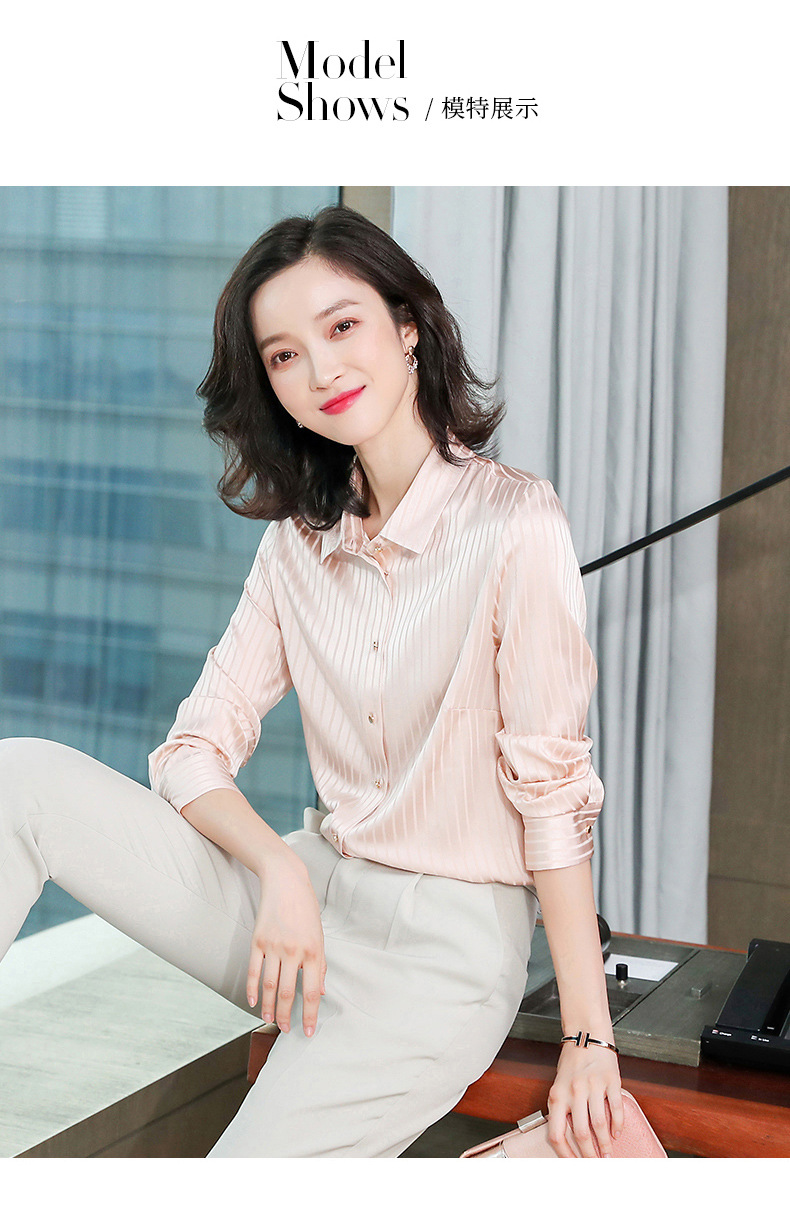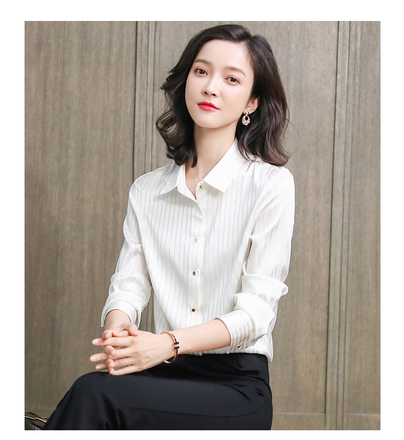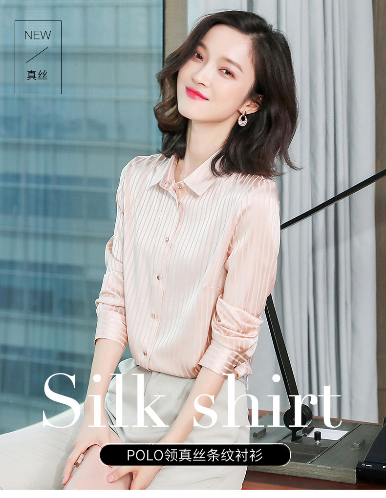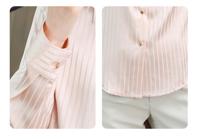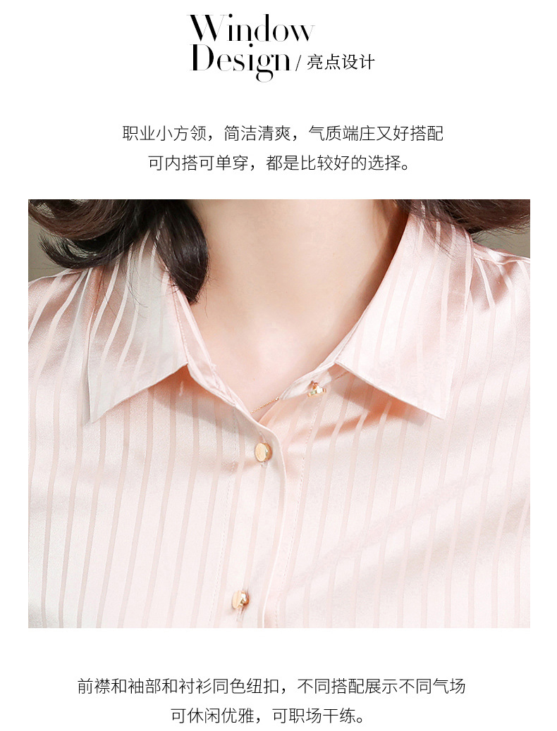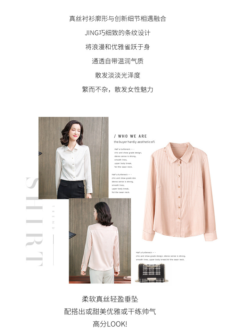 ASE-L6631竖条纹真丝缎面衬衫女士长袖2021秋装新款宽松立领重磅桑蚕丝上衣