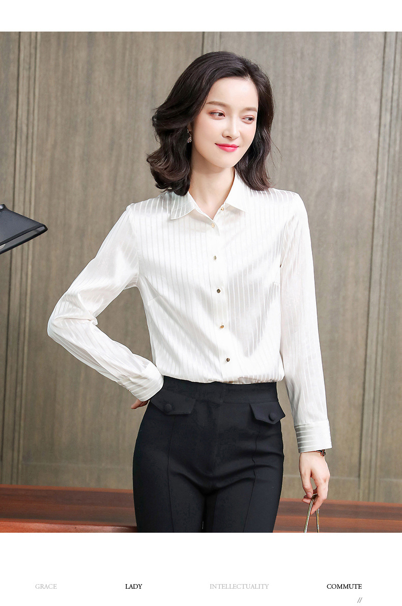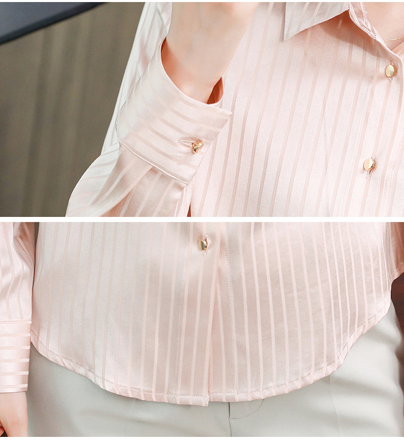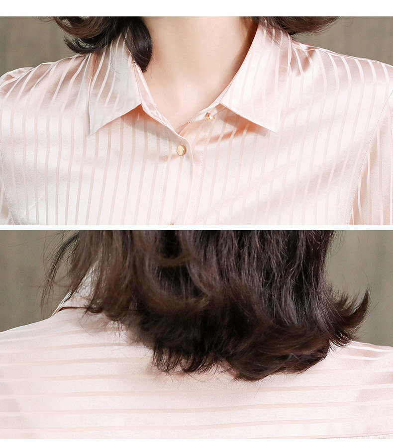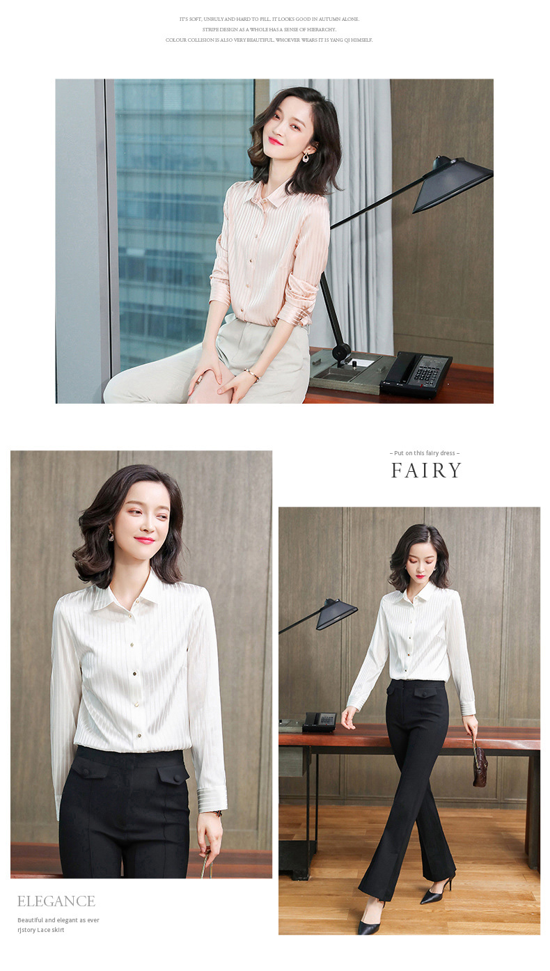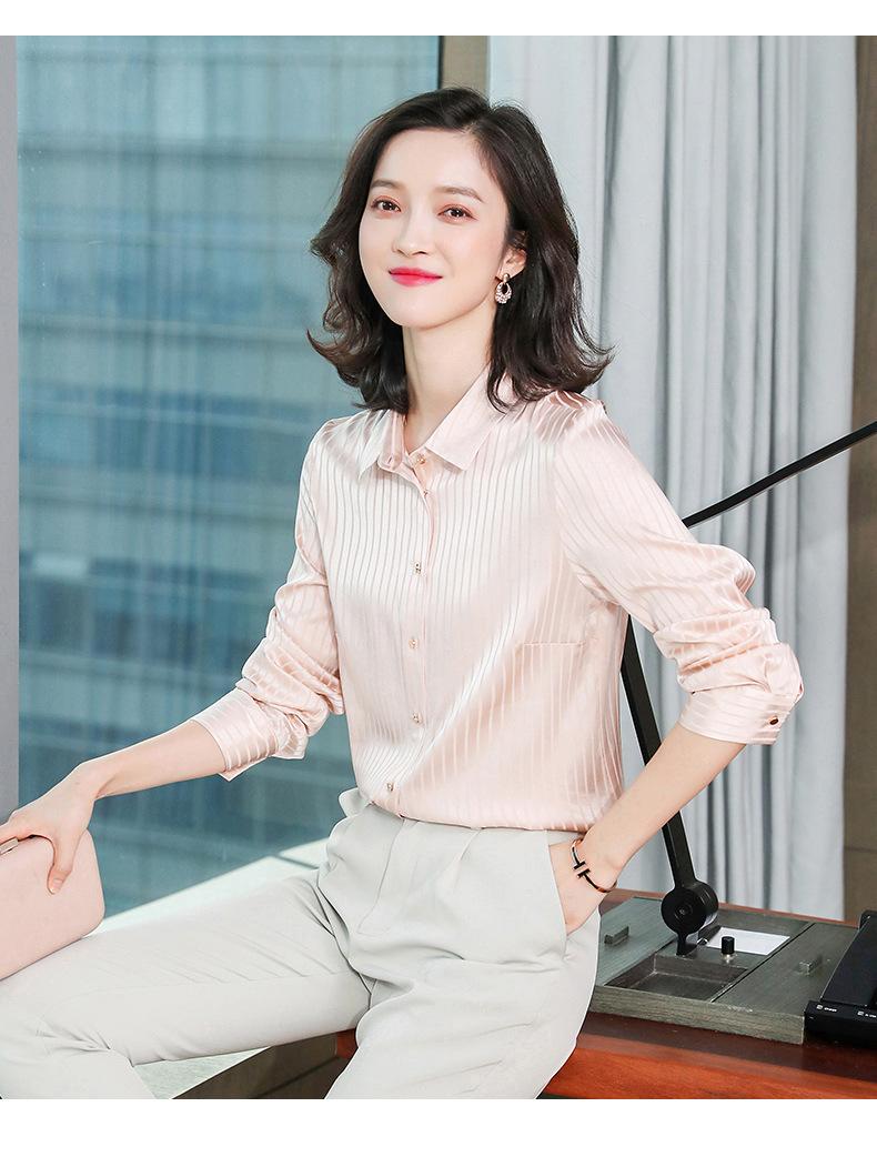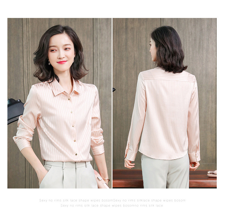 ASE-L6631竖条纹真丝缎面衬衫女士长袖2021秋装新款宽松立领重磅桑蚕丝上衣