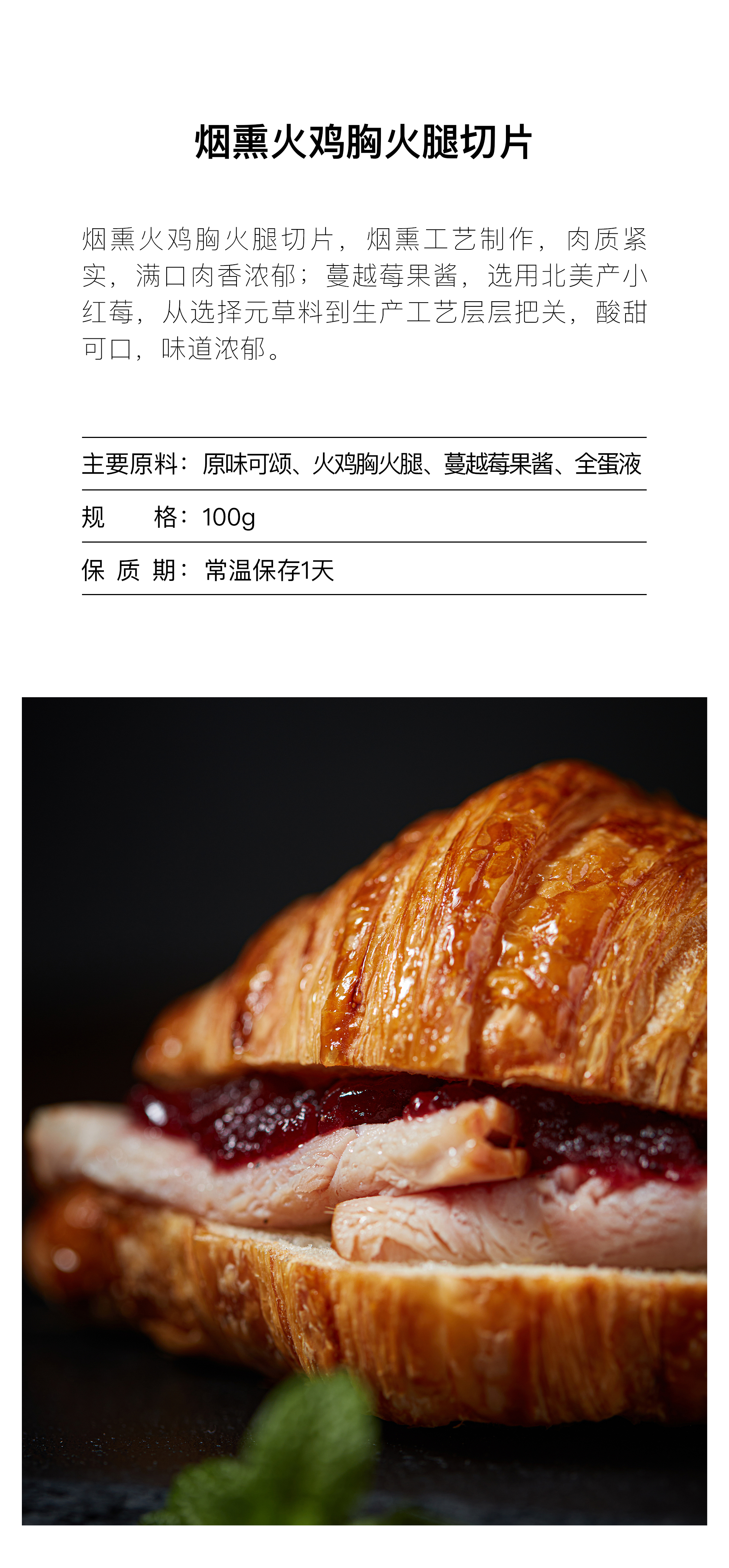 火鸡胸肉蔓越莓牛角三明治