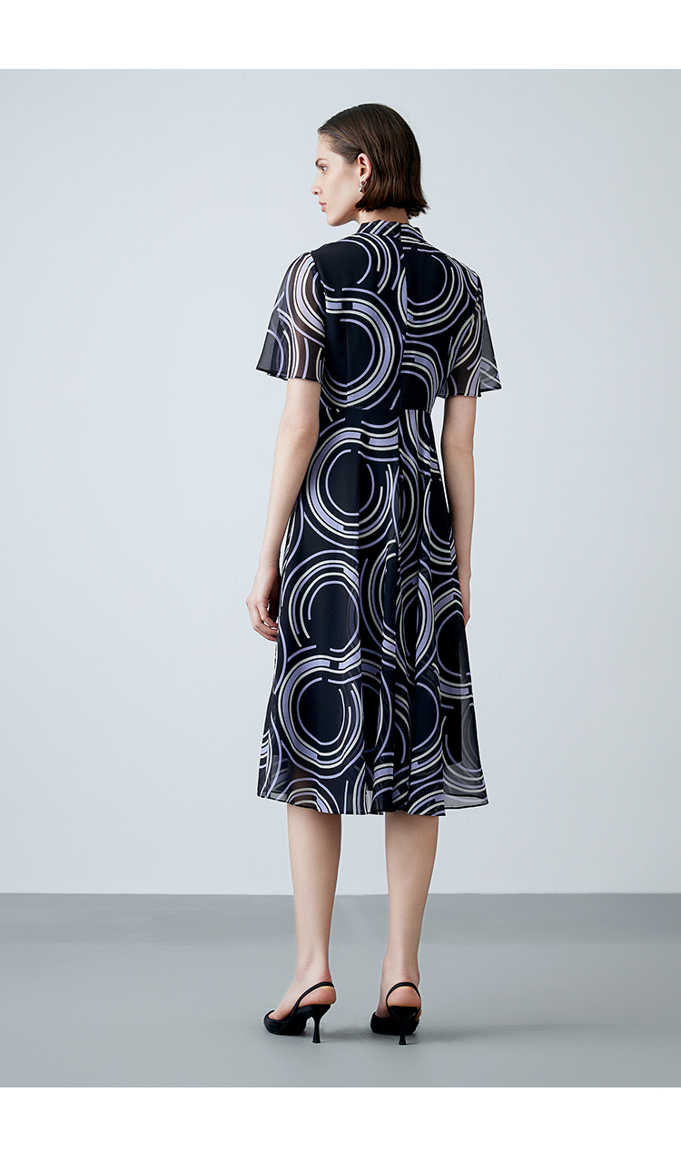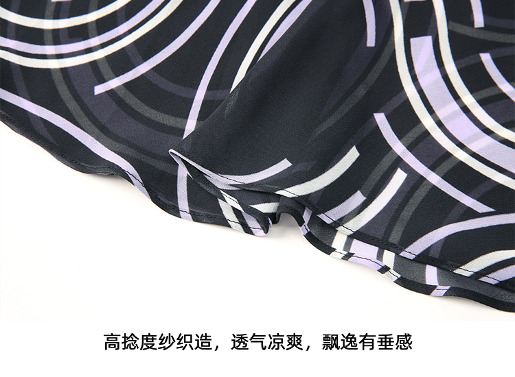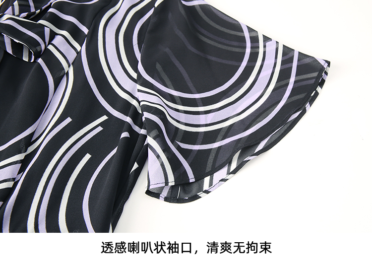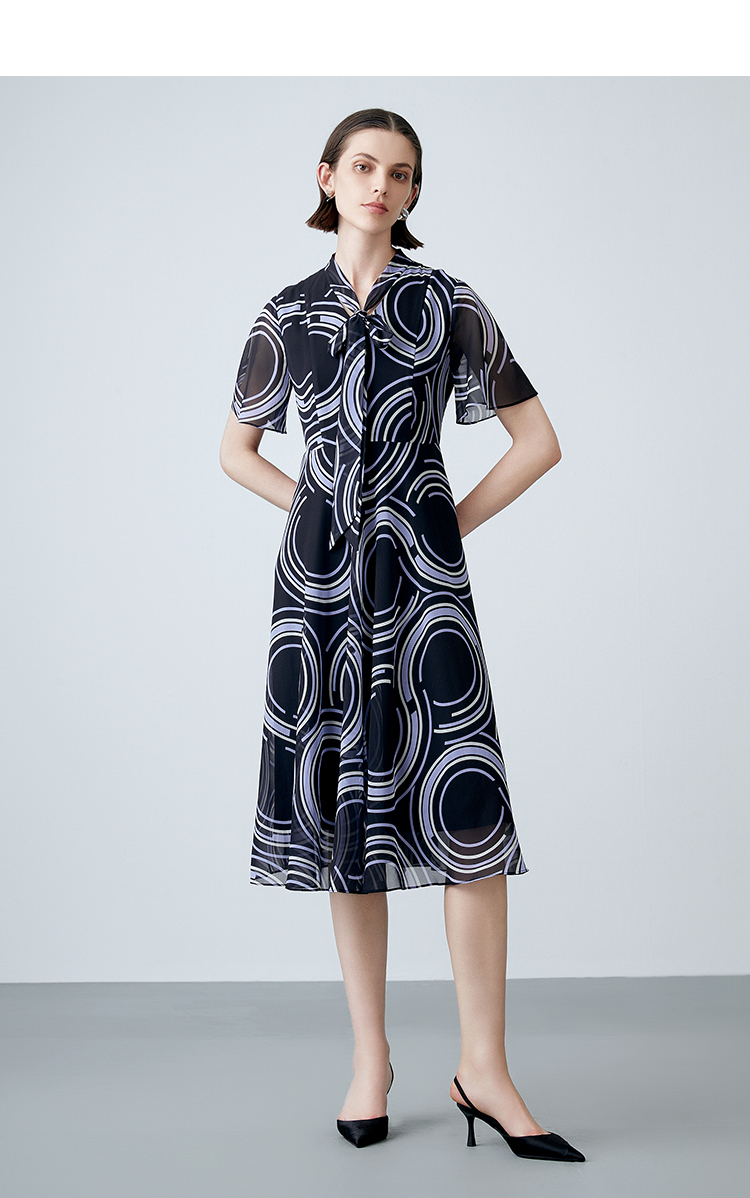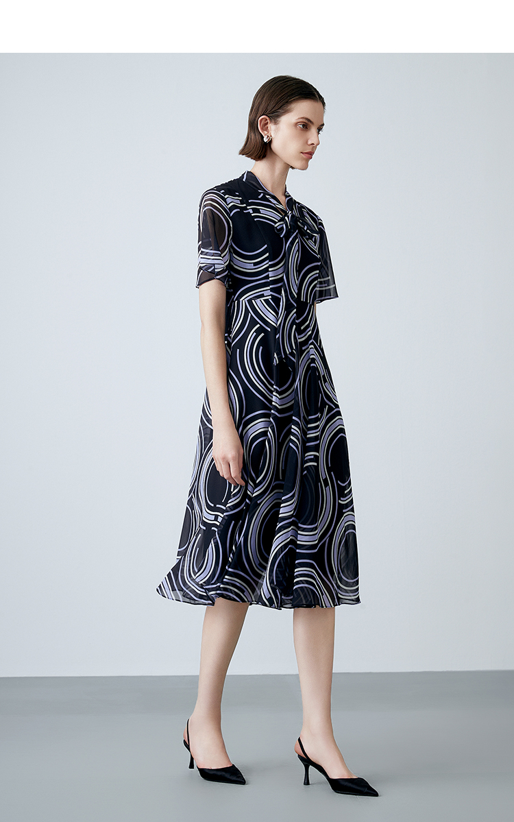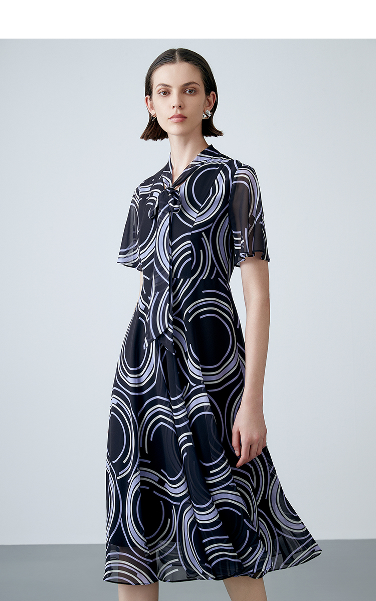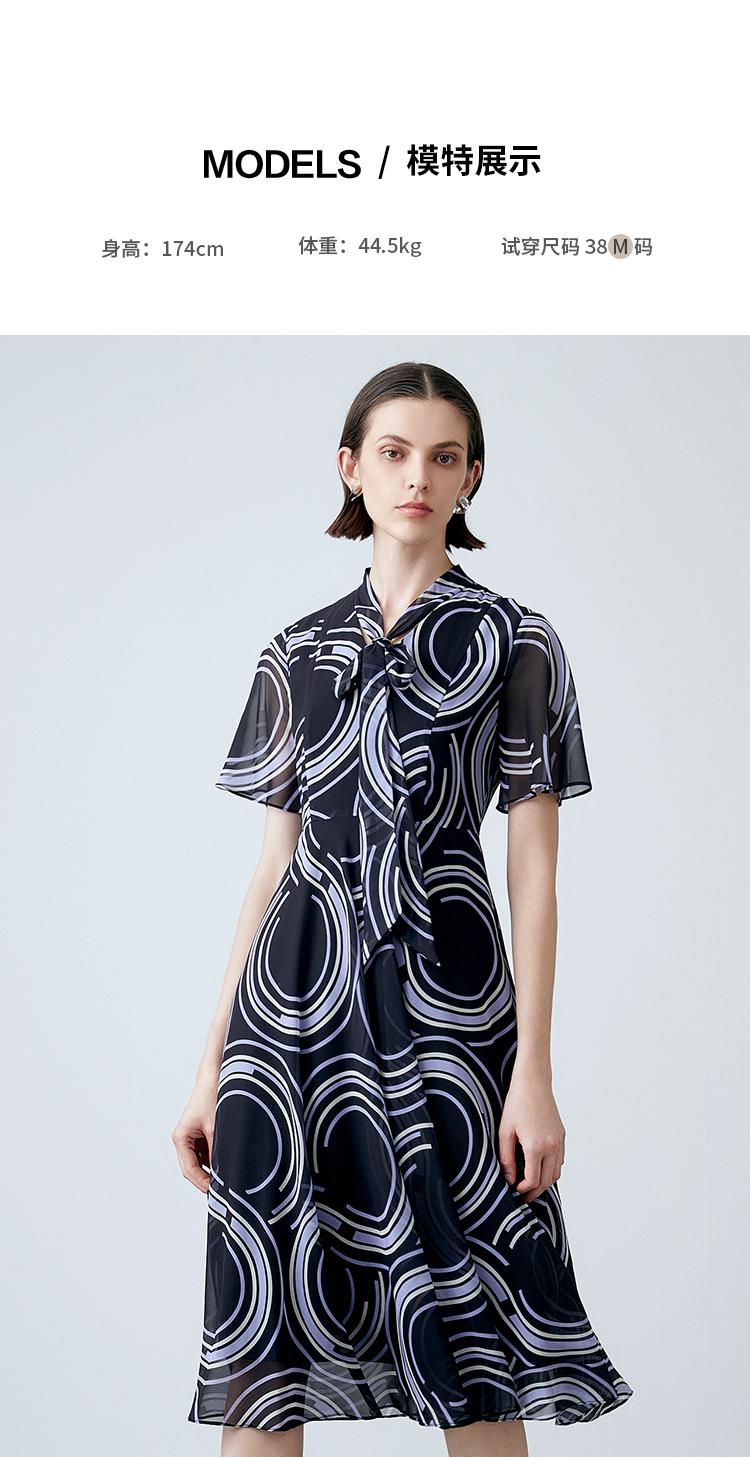 EITIE爱特爱夏季新款飘带V领收腰法式通勤显瘦印花连衣裙7807526