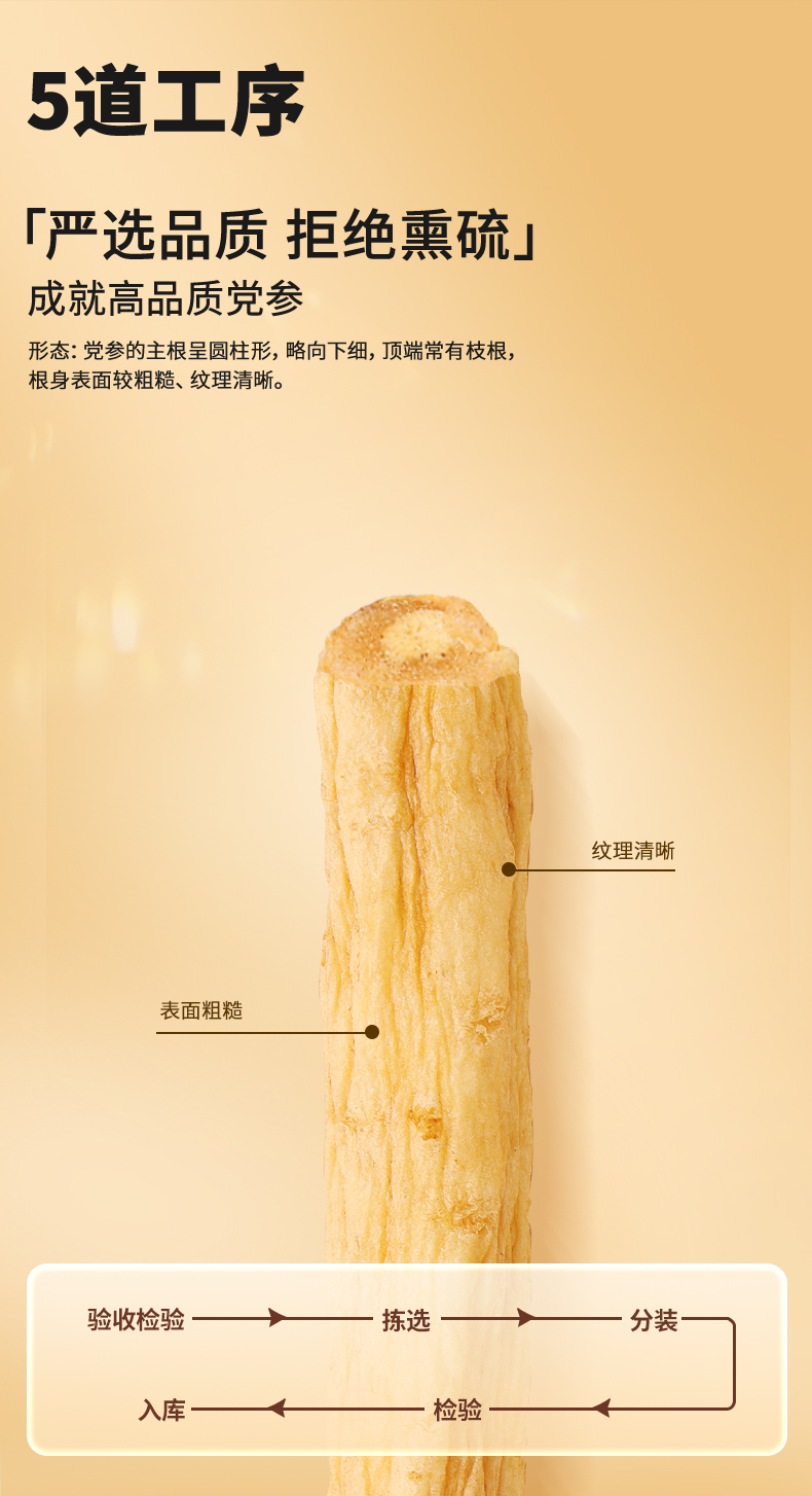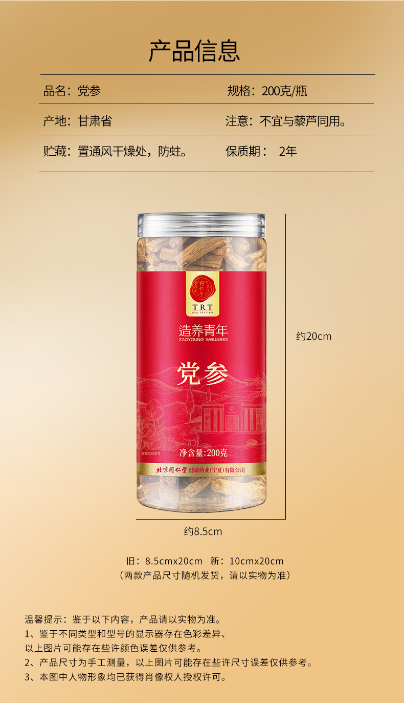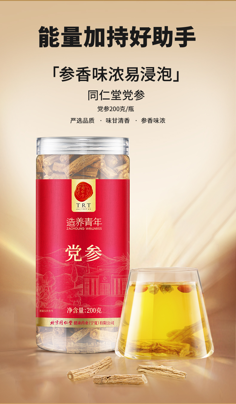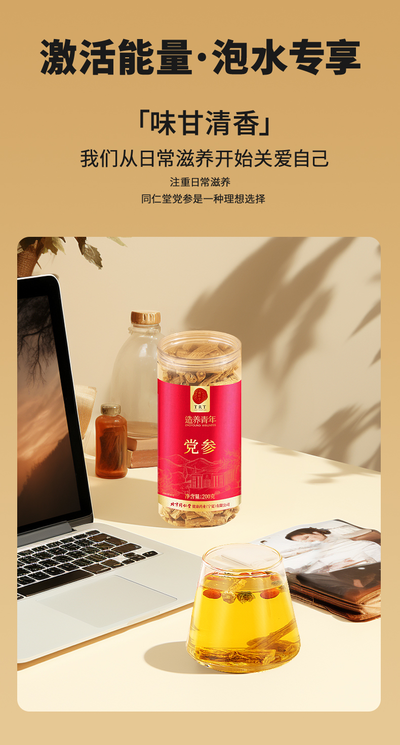 【正宗同仁堂品牌】北京同仁堂 党参200克 纹理清晰 品质严选 拒绝熏硫SY