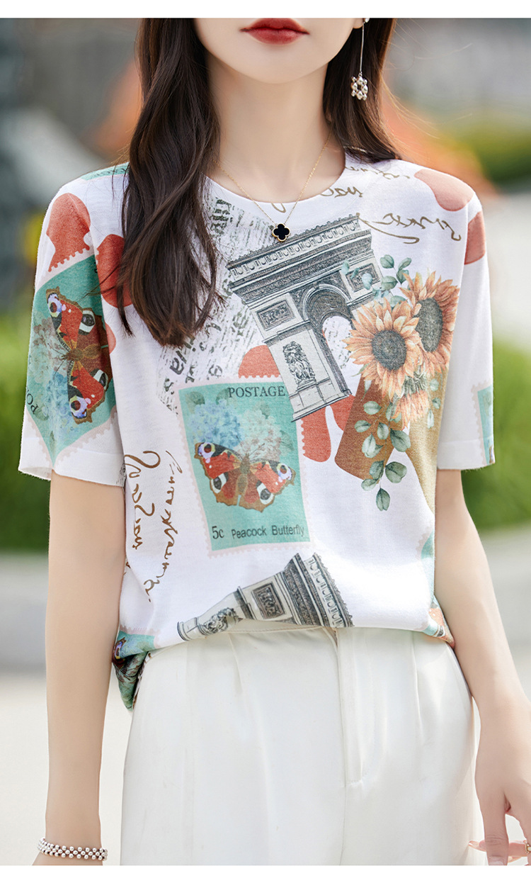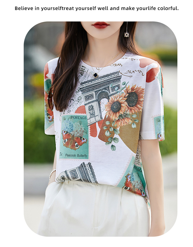 丁摩 精纺薄款短袖印花短袖女夏季新款休闲衬衣宽松显瘦上衣5ZF-4213