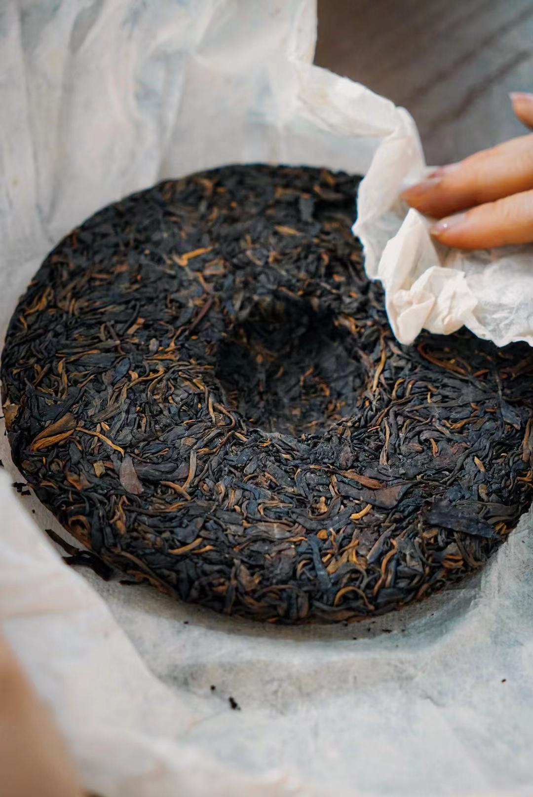 茶味足,老工艺,老茶树,传统石磨压制,醇化效果非常好,转化度很高,体现出了极致舒服的柔润感。