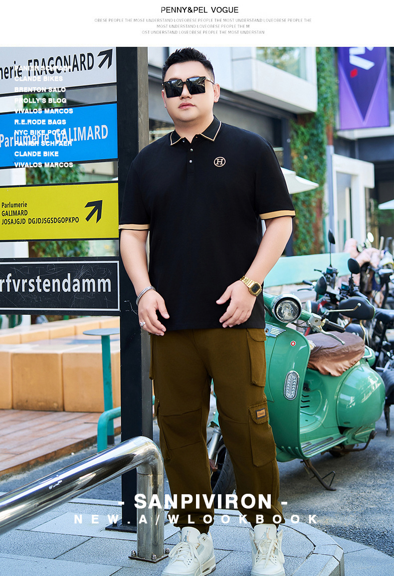 【纯棉】【DYG】大依优型大码男装短袖Polo衫冰丝凉感t恤翻领男士商务休闲男装宽松