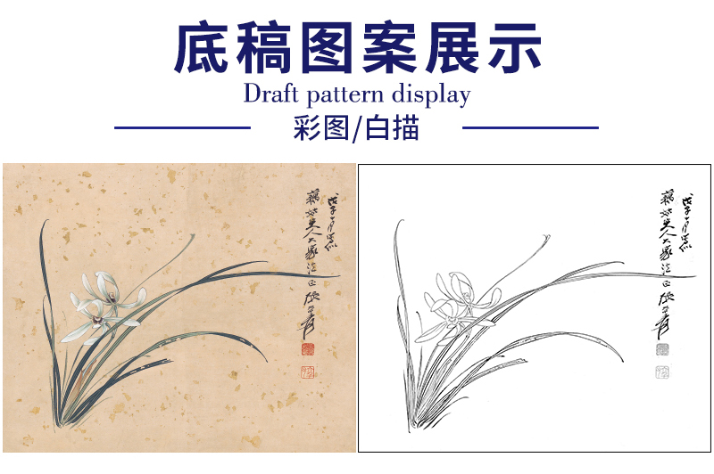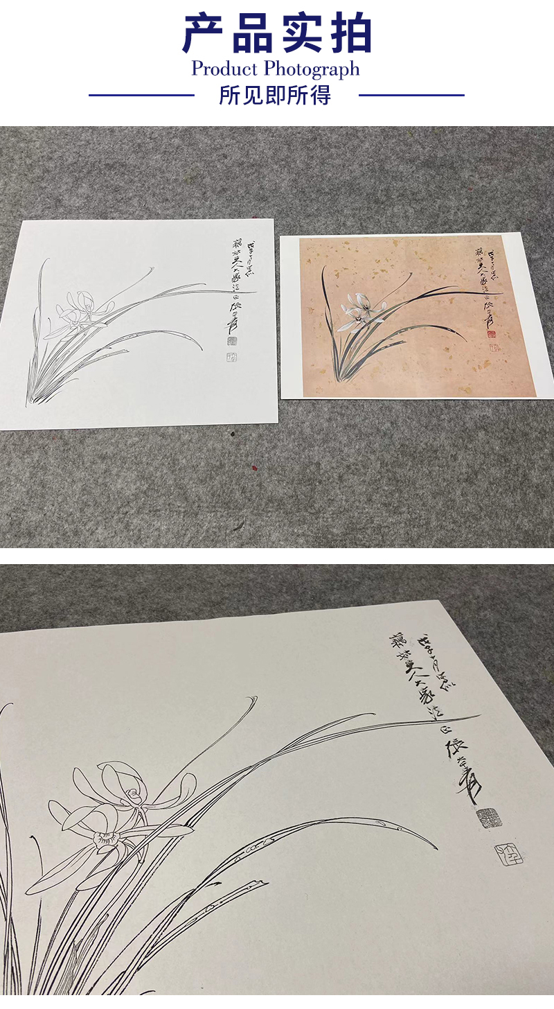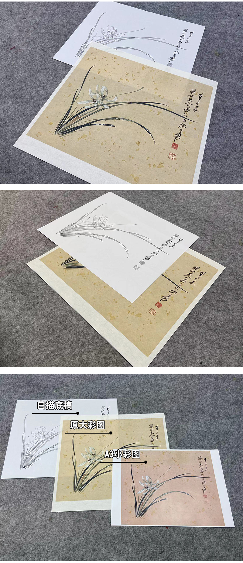 【大彩图】张大千工笔画白描底稿小品《斗方小品册页》兰花临摹勾线花鸟线稿QD24