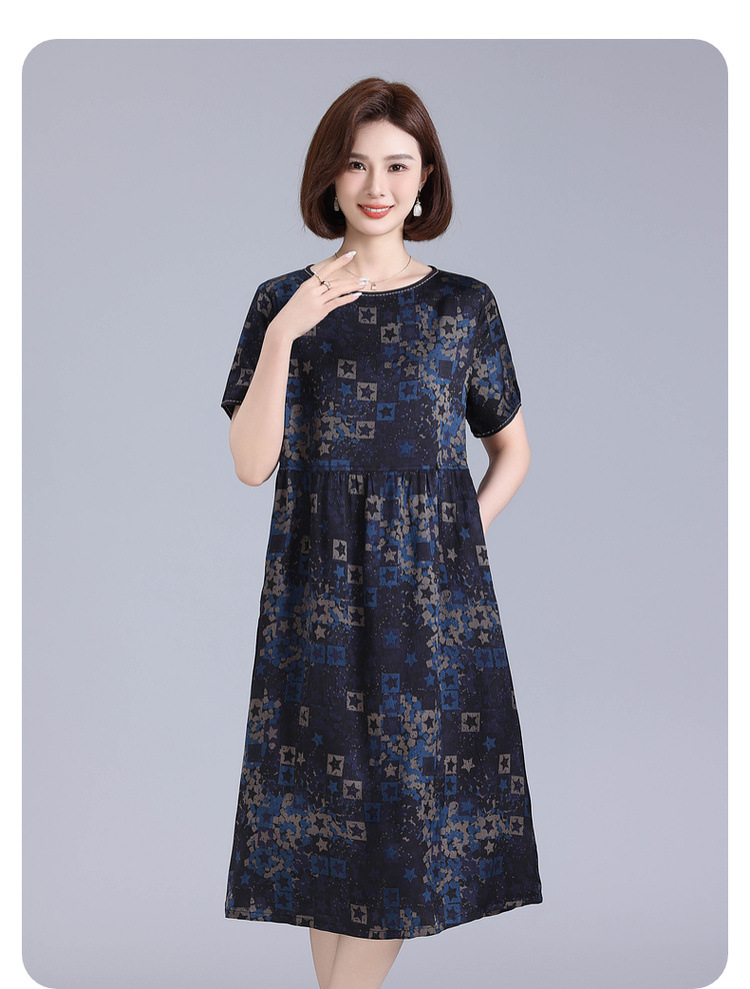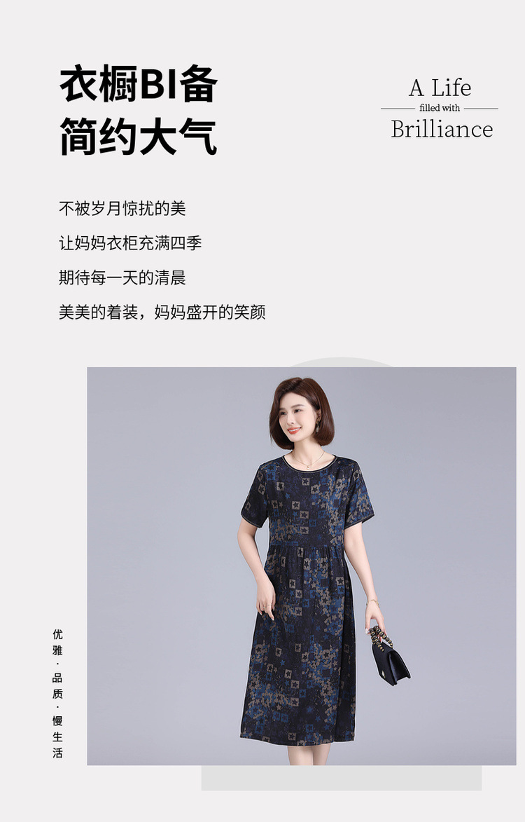 MC 40K宽松过膝裙洋气妈妈大码连衣裙