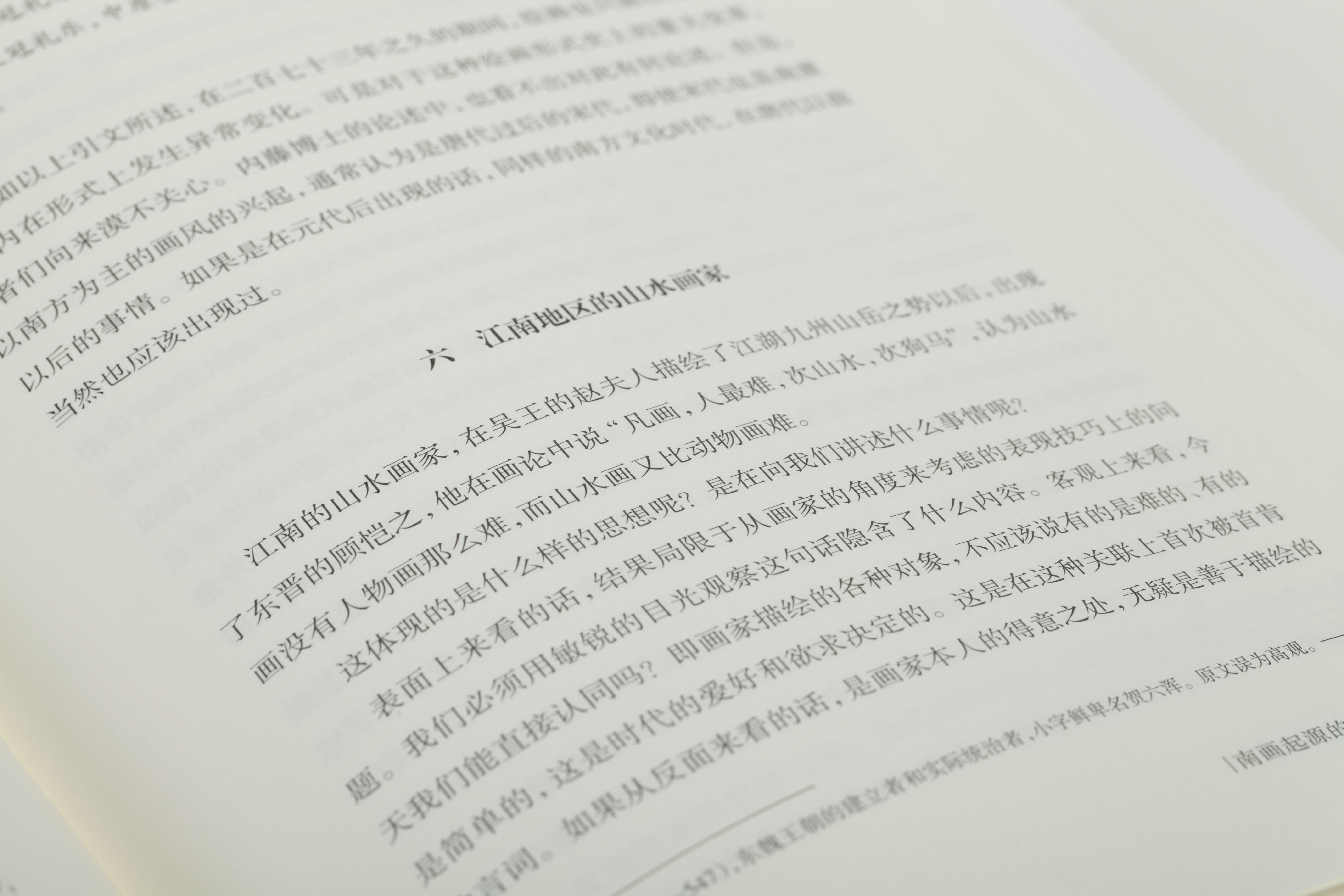 作者还根据中国的地理特点进行中国绘画史研究,本书中首次绘制了中国绘画史地图,指出中国绘画史具有北方坚硬与南方柔和的二元性特性。作者认为,唐宋的绘画兼有这种二元式的特点,可以说取得了灵与肉的一致。元代以后,变成了南方式的一元化,明清的纤细画风只能很快陷入颓废。