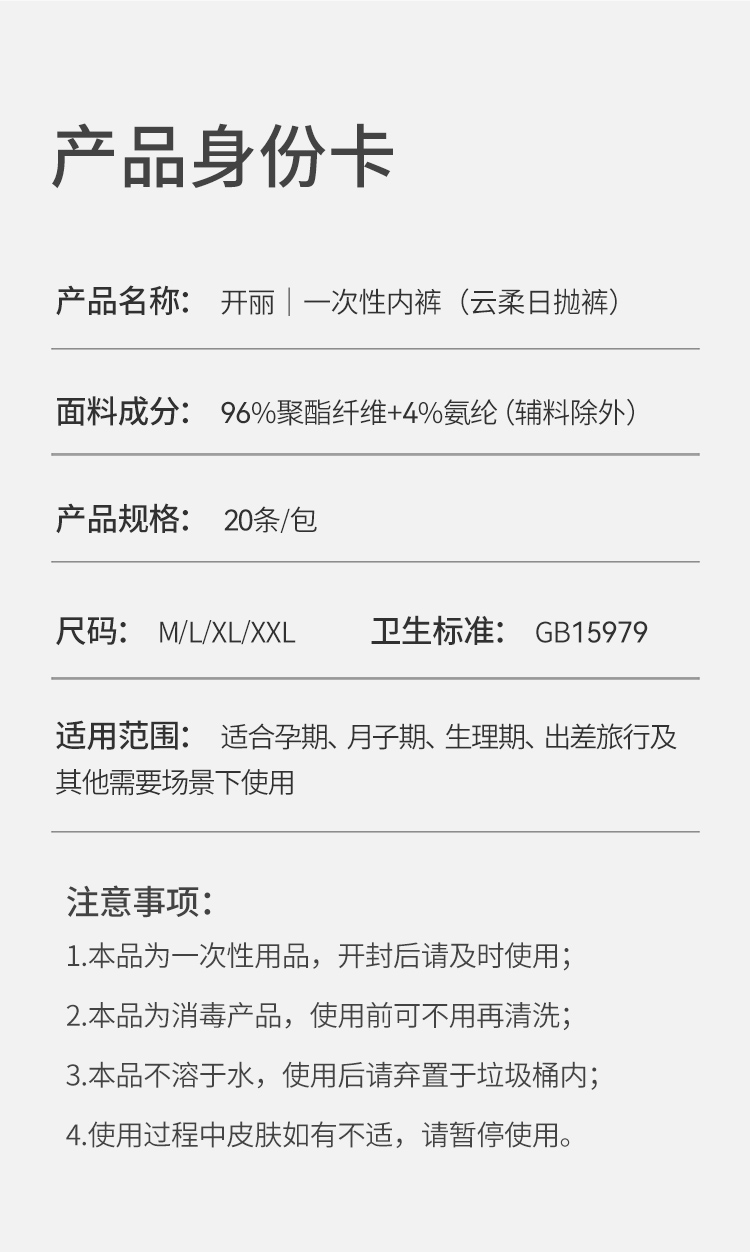 20条|消毒级7A抗菌开丽云柔日抛一次性内裤 丝滑超舒服【两件立减6元】