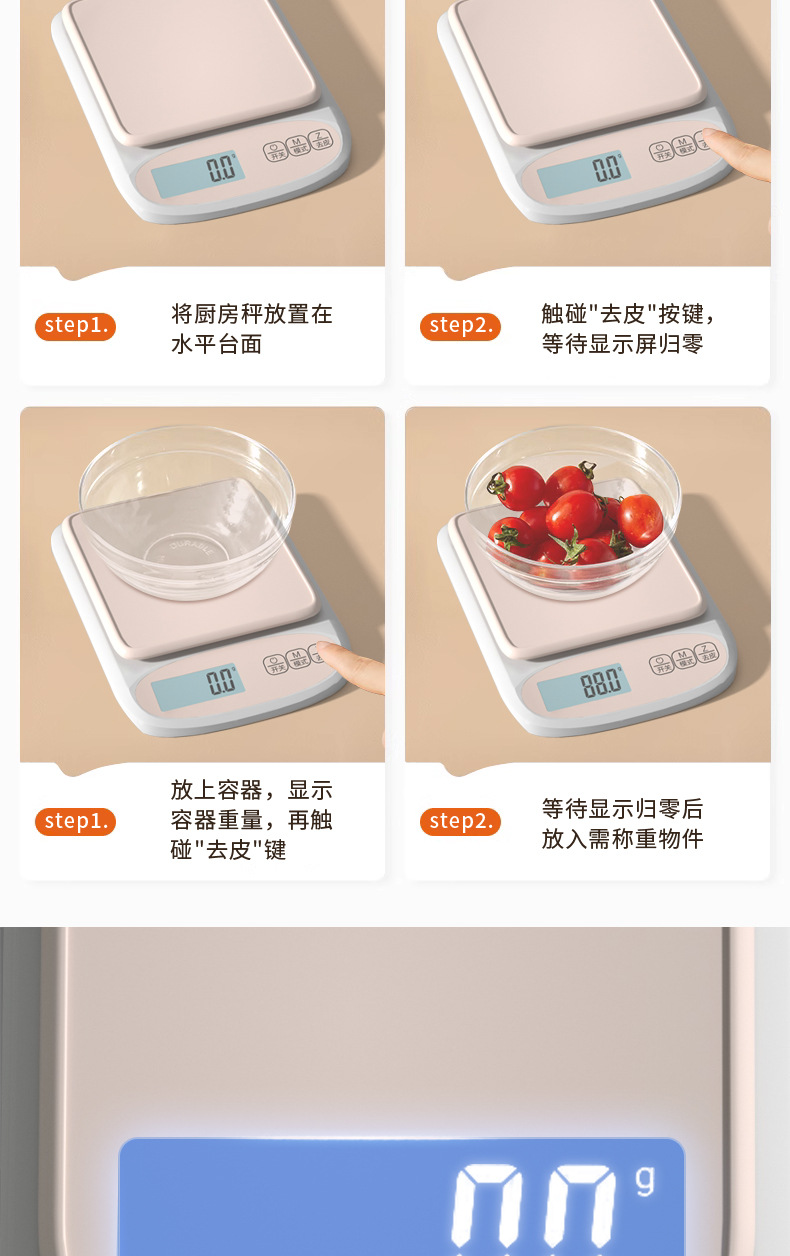 【高精度多功能厨房称】家用厨房秤电子秤高精度克数秤烘培咖啡秤食物称小台秤,它的重量显示,让你轻松掌握材料的分量。ry
