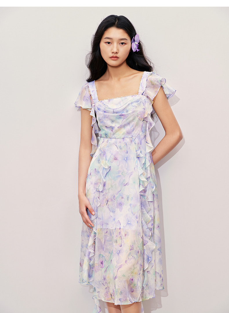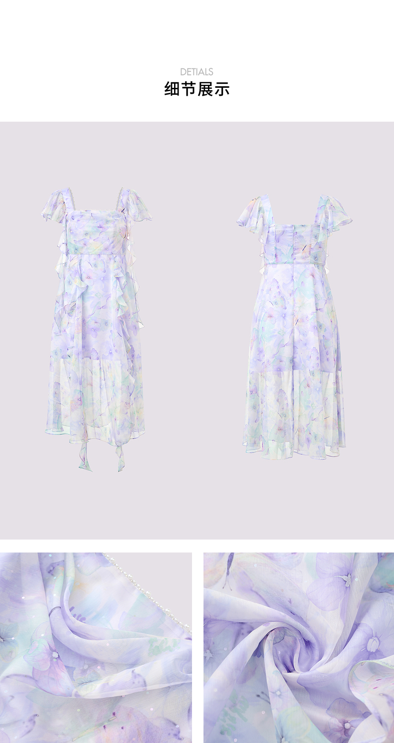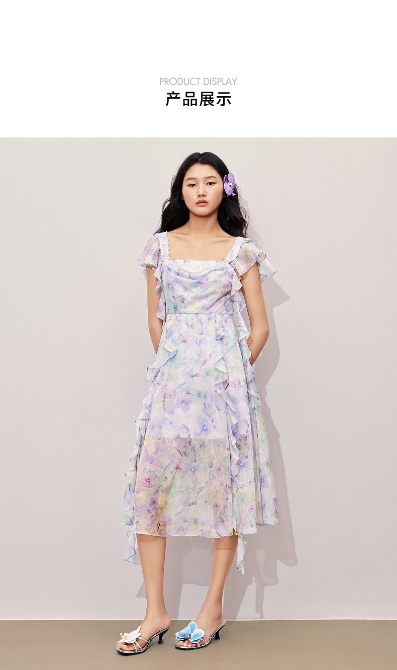 MAXRIENY浪漫度假风连衣裙2024夏季新款晕染碎花茶歇裙收腰伞摆(货号:MS85DR259)