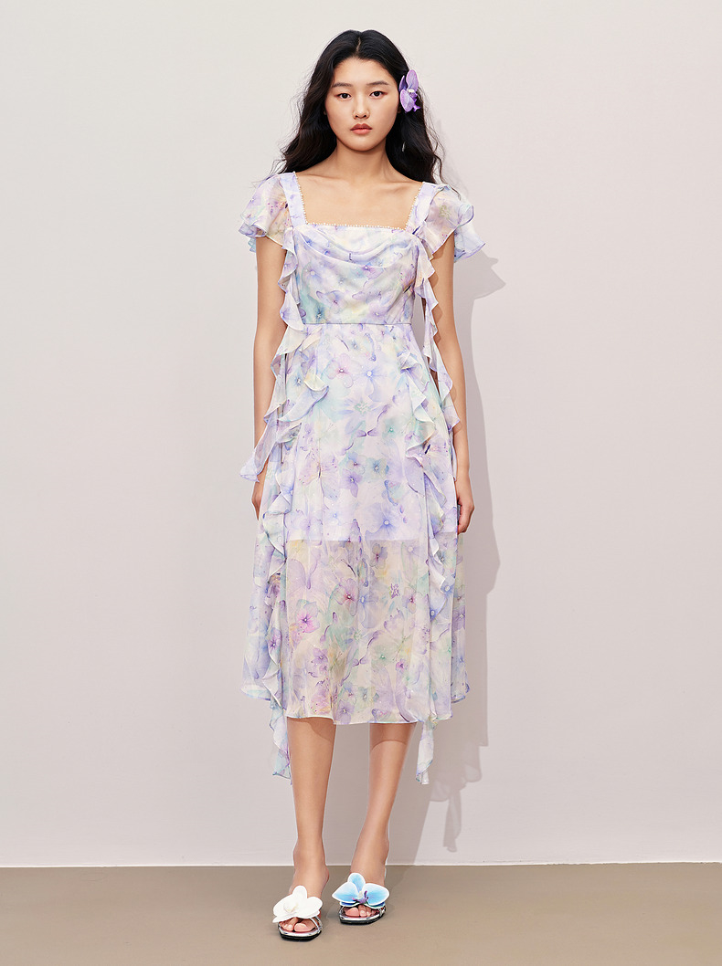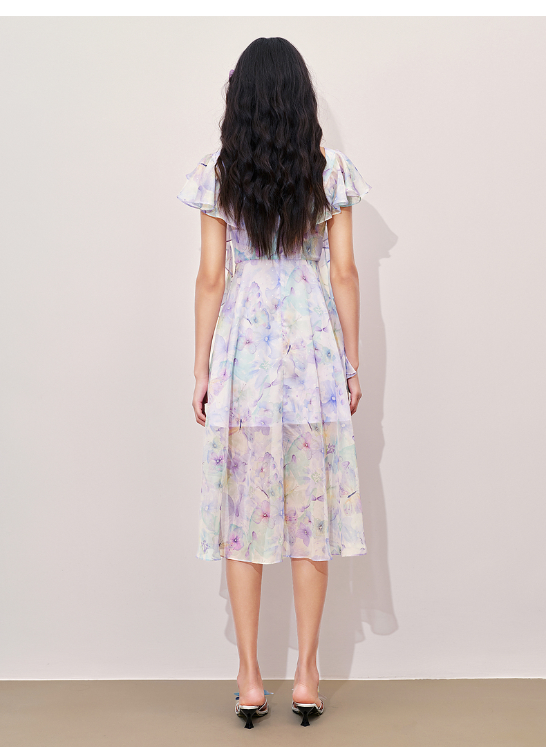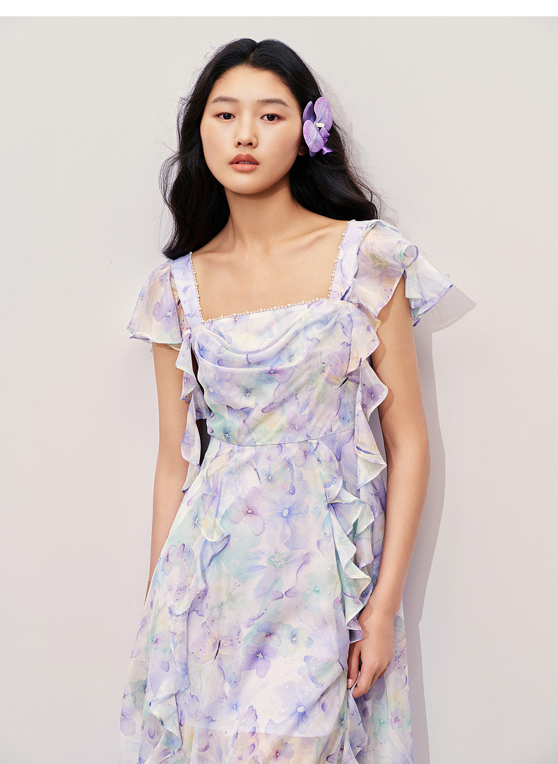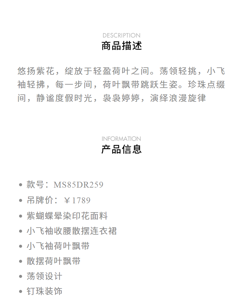 MAXRIENY浪漫度假风连衣裙2024夏季新款晕染碎花茶歇裙收腰伞摆(货号:MS85DR259)