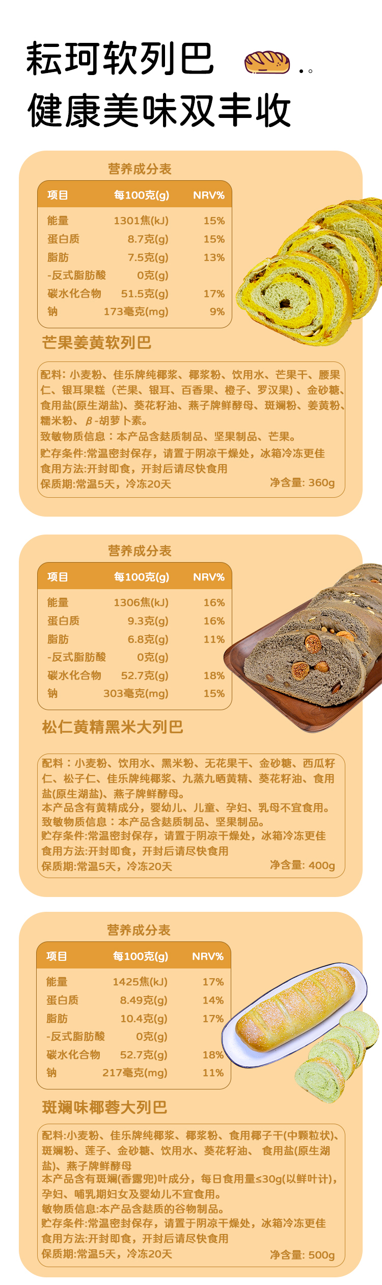 耘珂大列巴 | 芒果姜黄&石斛荞麦&金杏银耳&莲子红豆 手工新鲜现做 纯素烘焙「任买2条包邮」