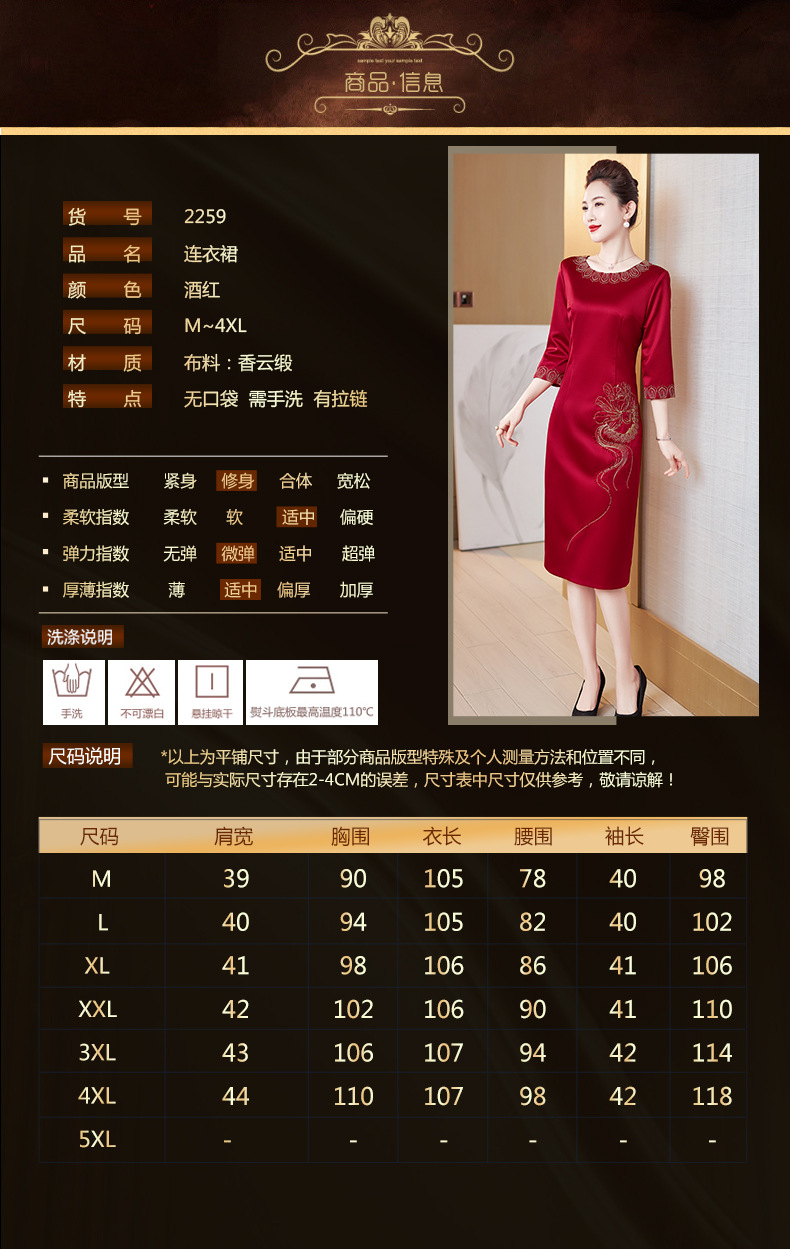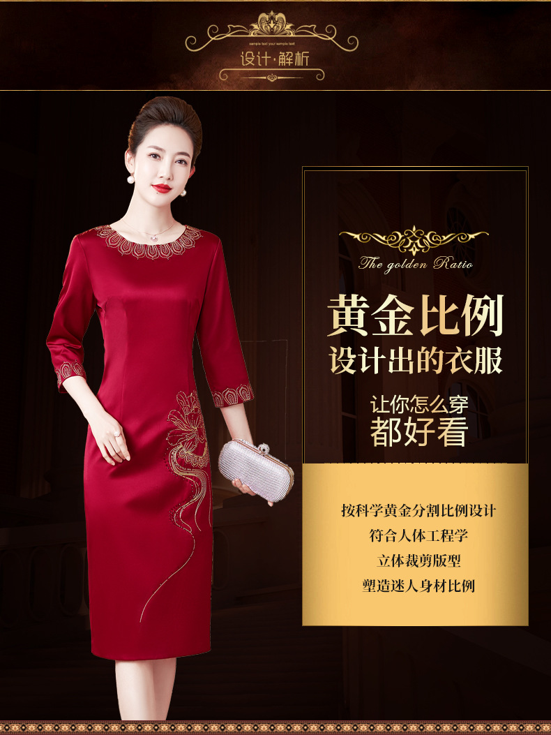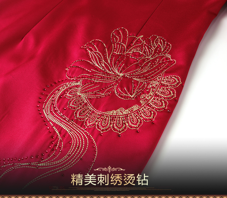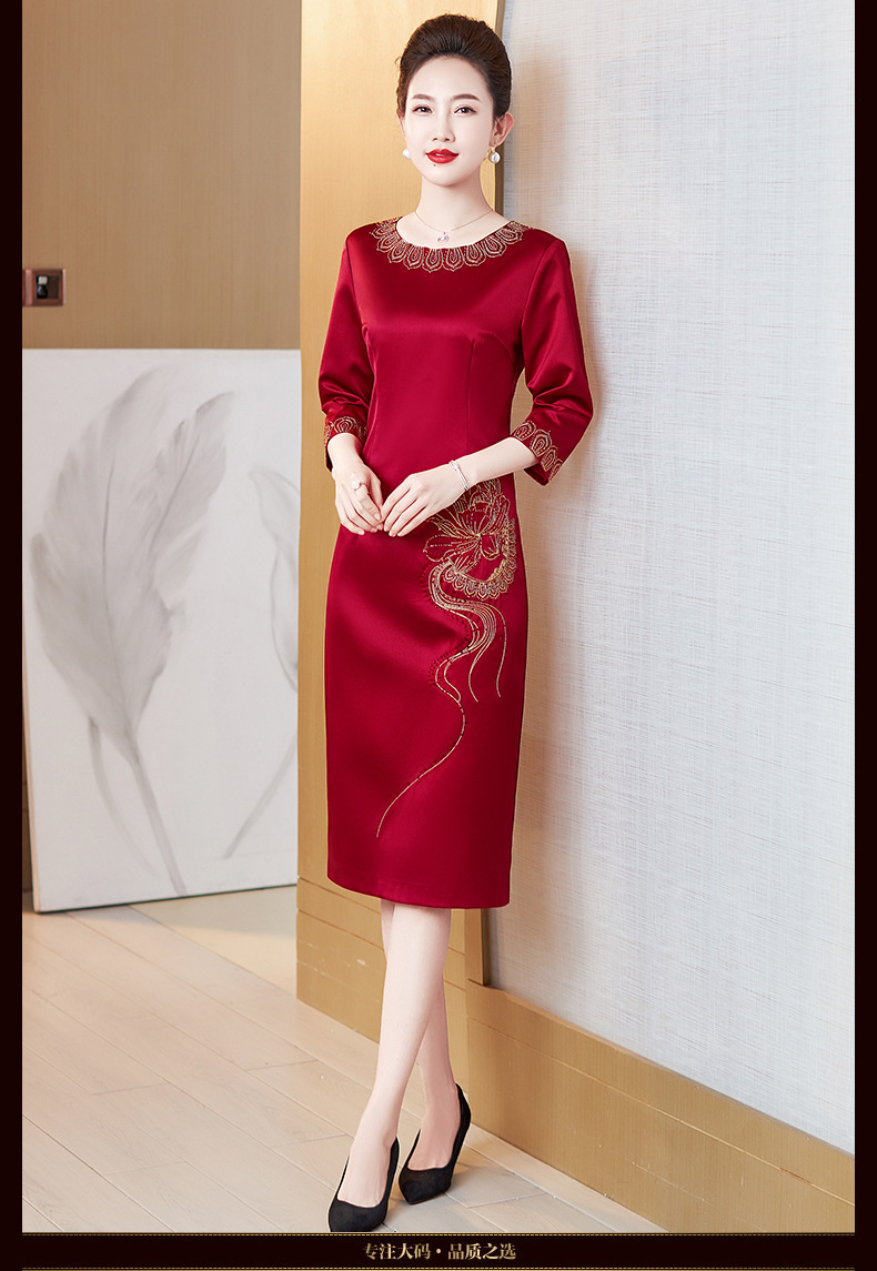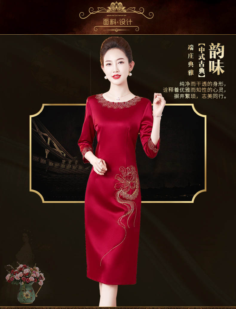 LC-2259圆领绣花端庄大气喜婆婆婚宴改良旗袍礼服连衣裙