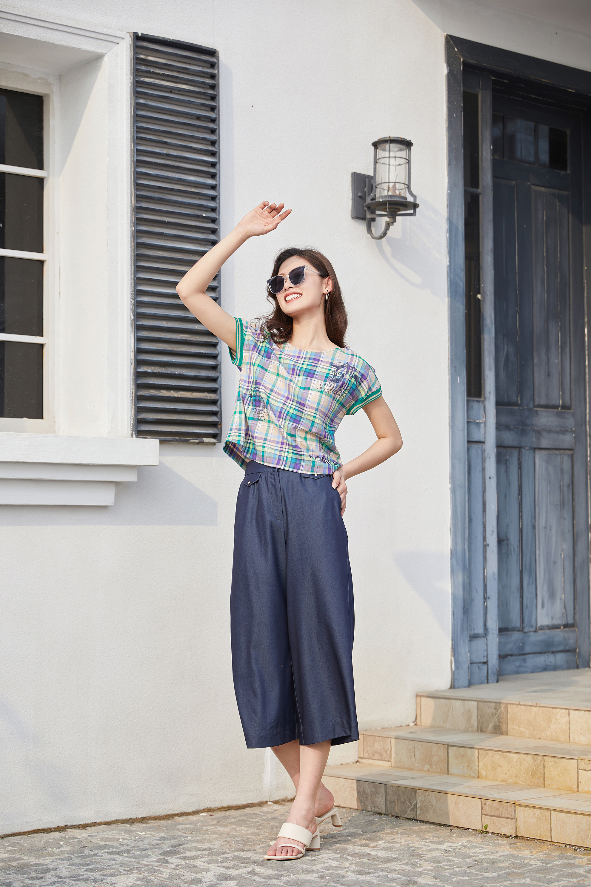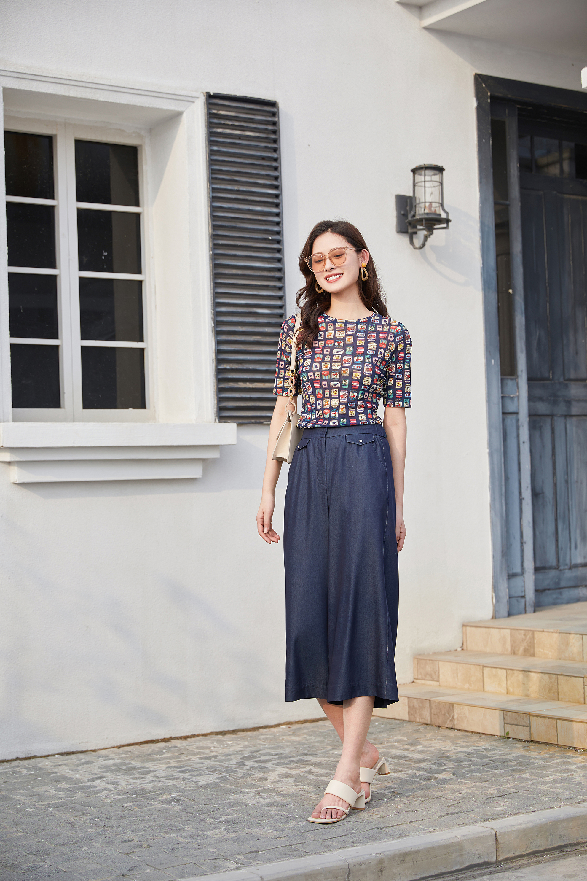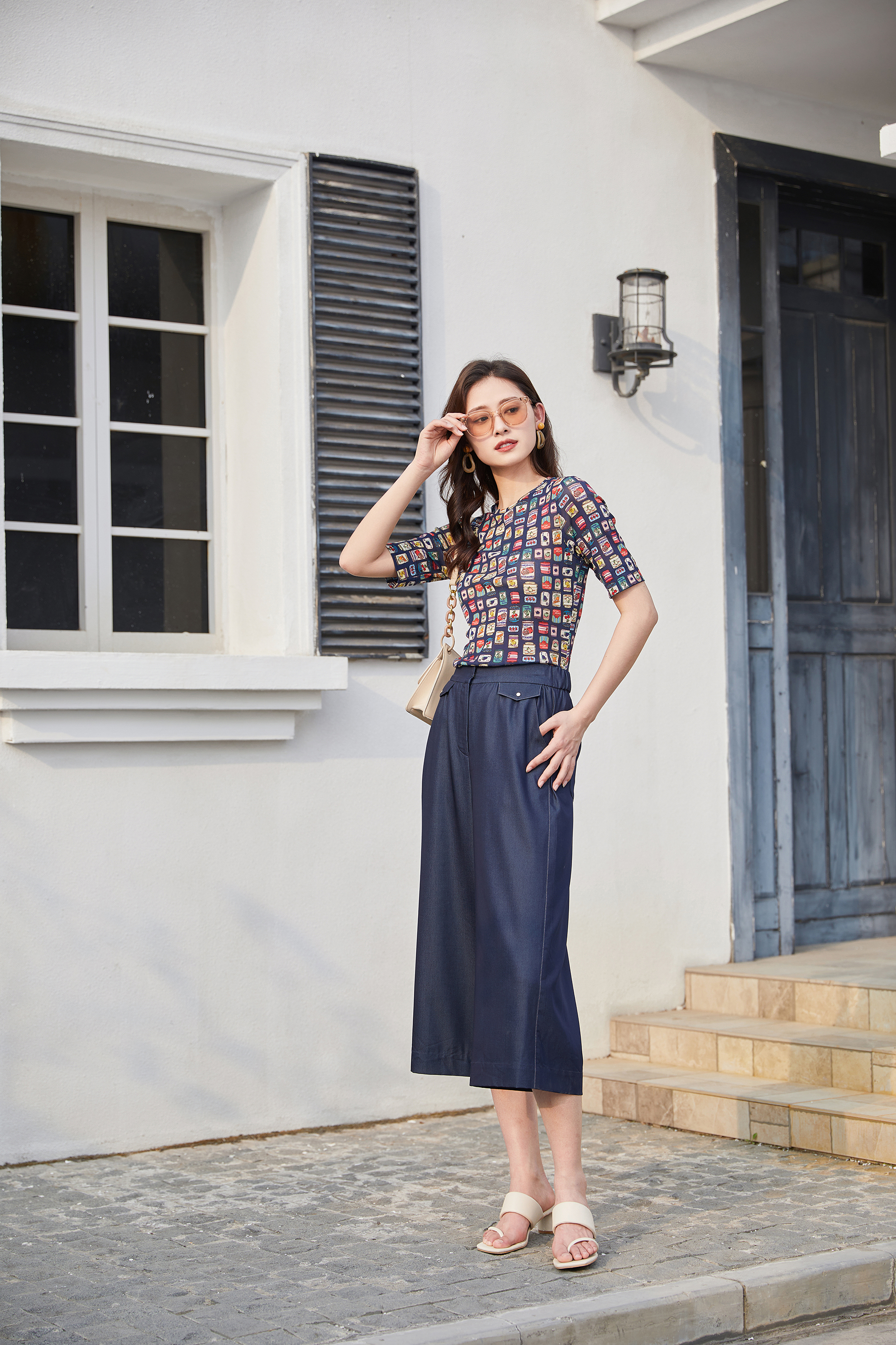 奇威 深蓝牛仔裤阔腿裤0DB02117