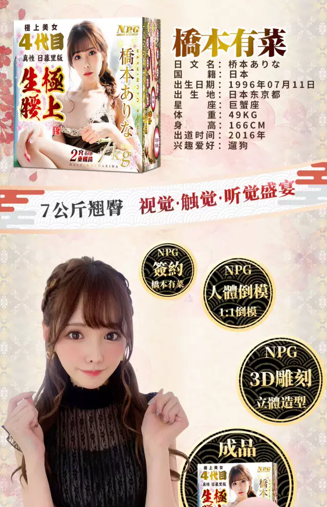 【桥本有菜】日本NPG极上生腰4代桥本有菜名器大屁股7kg真人比例双穴
