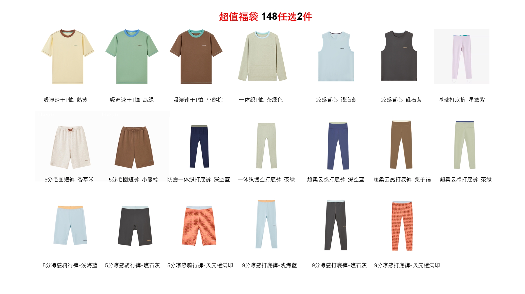 【超值福袋 148任选2件】ubras旗下likeuu男女儿童短袖短裤T恤打底裤ZY
