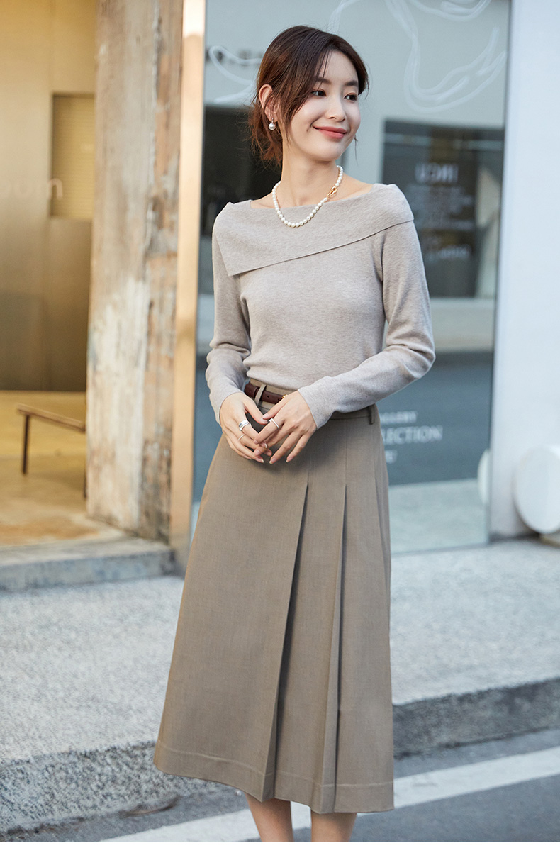 简约而不简单!卡其色百褶西装半裙,诠释职场优雅新风尚