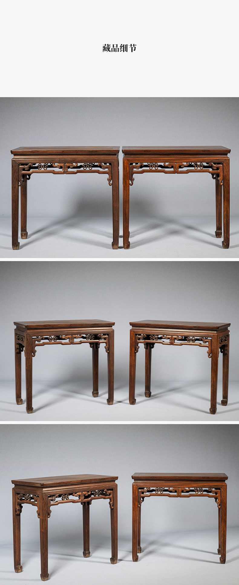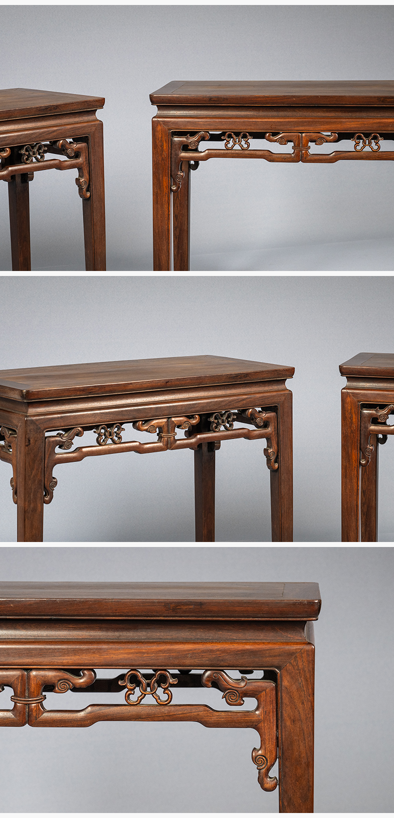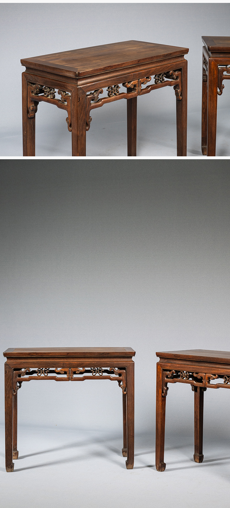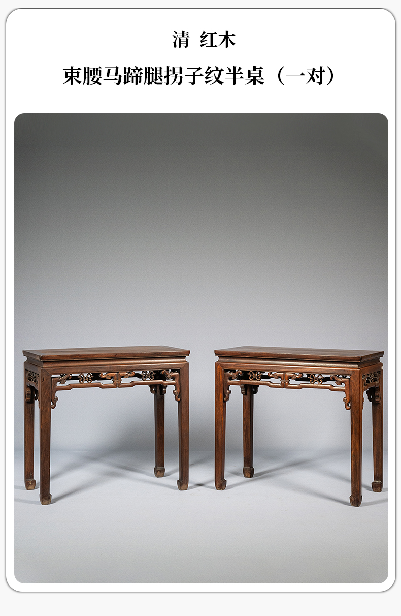 清 红木束腰马蹄腿拐子纹半桌(一对)