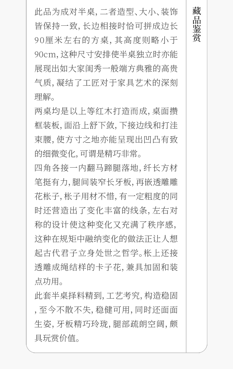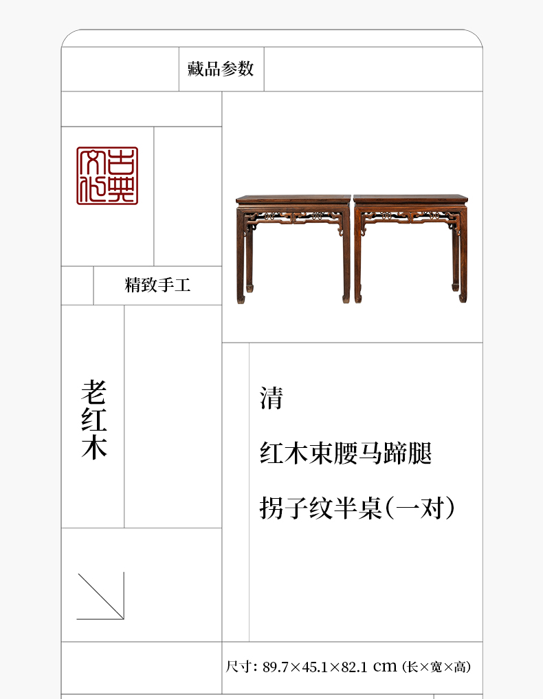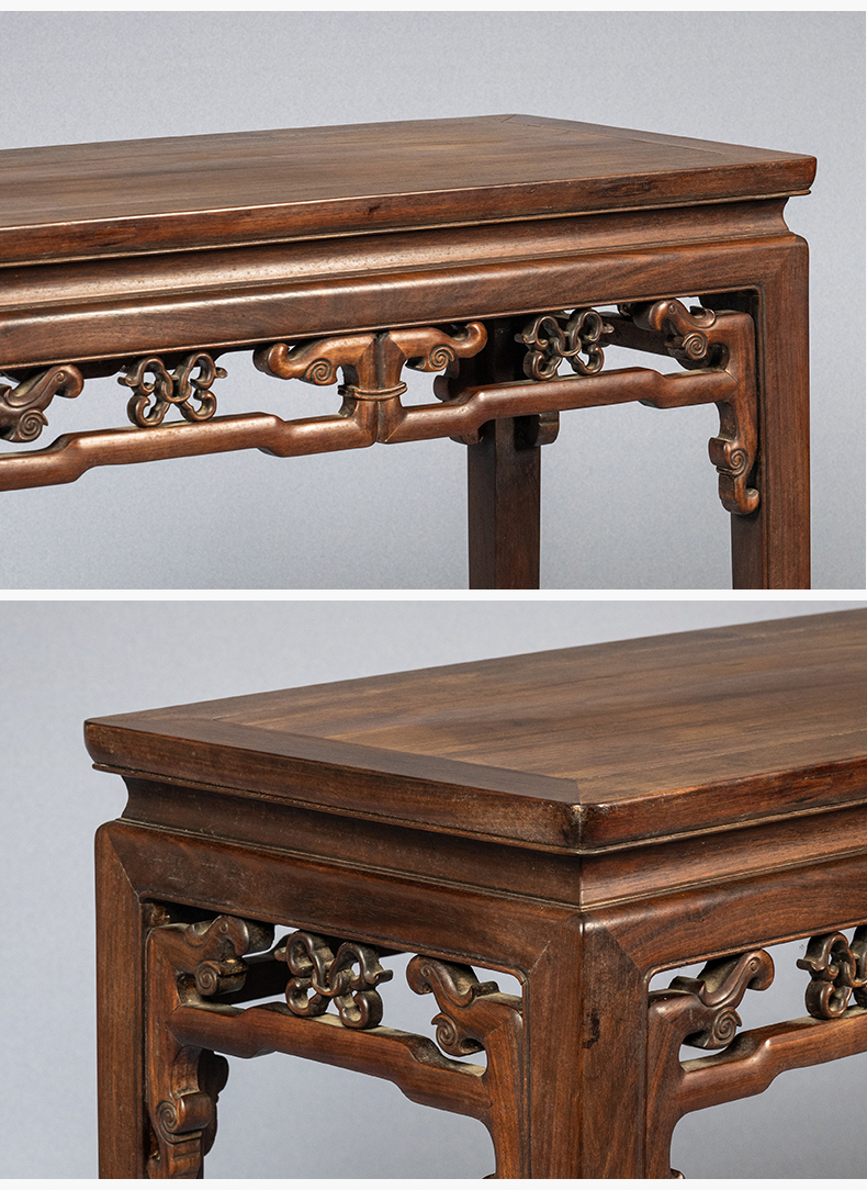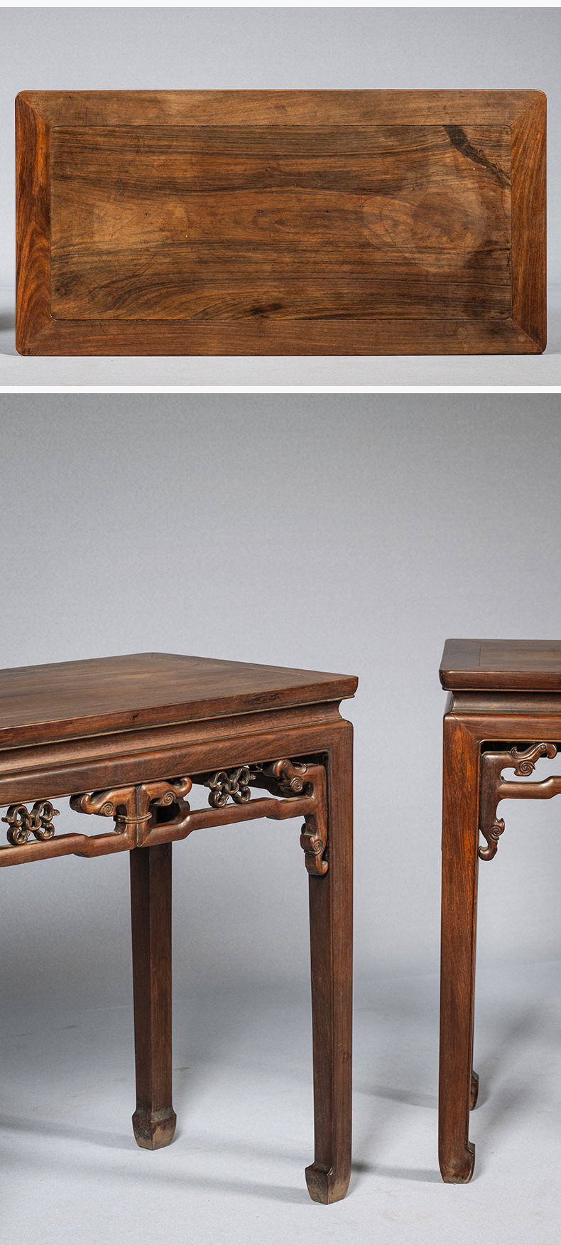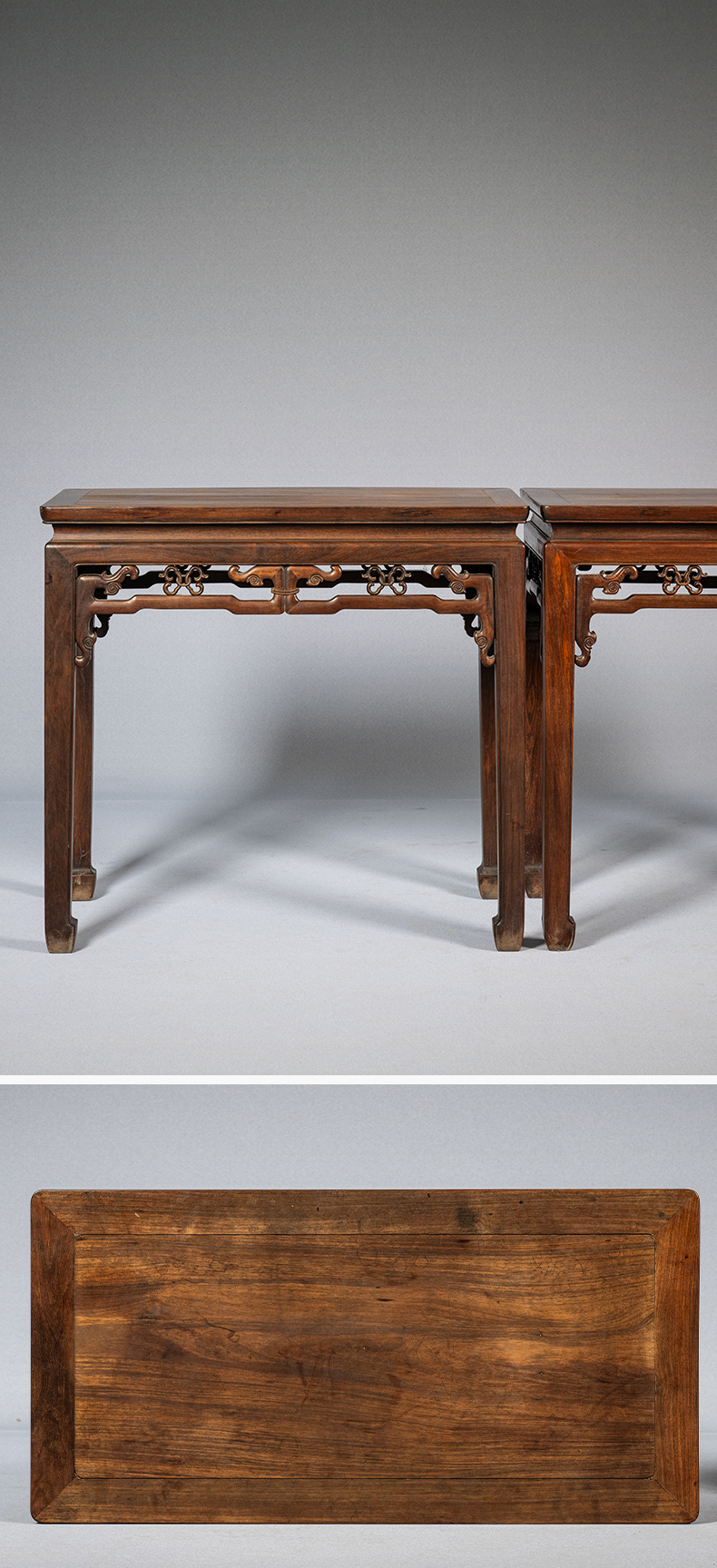 清 红木束腰马蹄腿拐子纹半桌(一对)