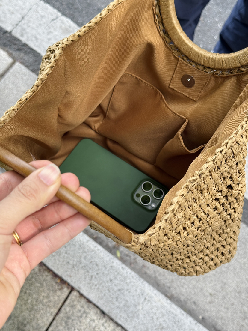 包包采用编织工艺制成,紧密编织,做工细腻尽显品质,合理空间设计,能放入手机、钱包、化妆品等。日本订单精品货,几十个,卖完结束,手工编有接线头,完美主义者绕道。