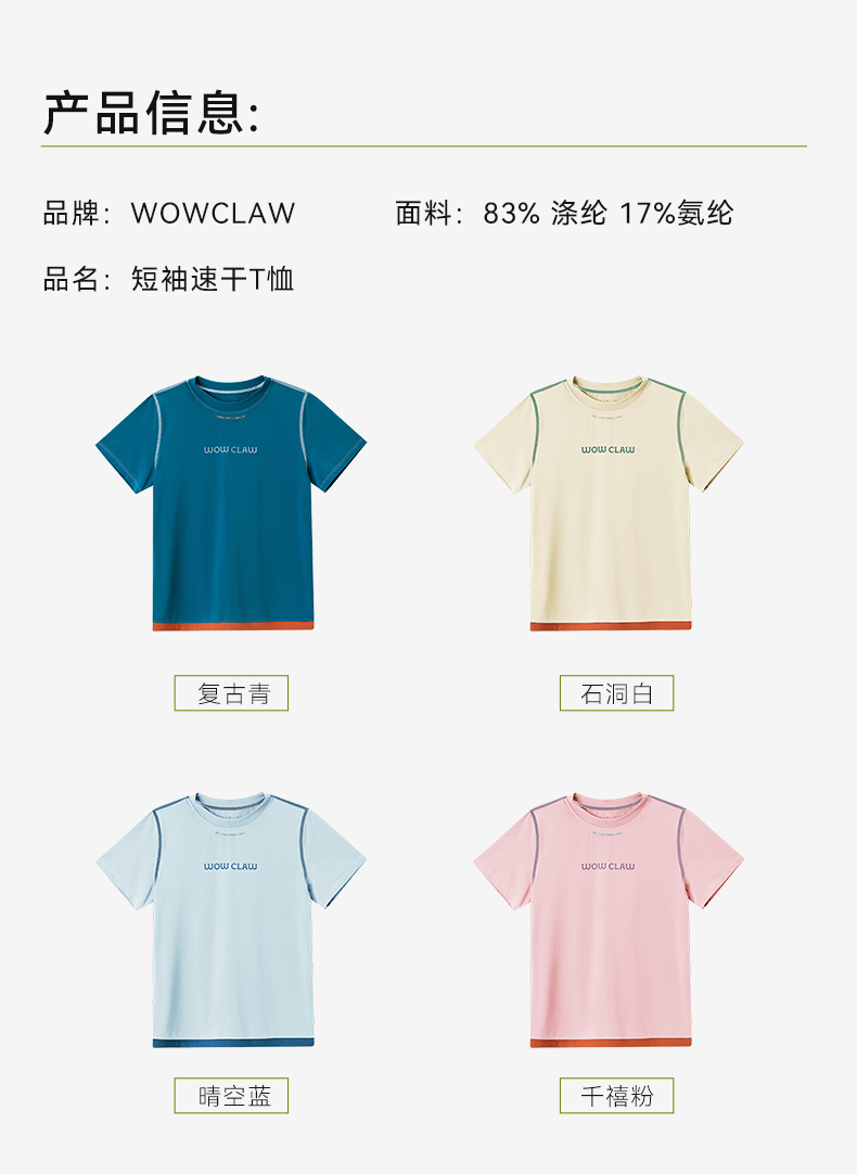 美国WOL 儿童户外短袖速干T恤 运动排汗下装跑步登山防晒服|小爪衣