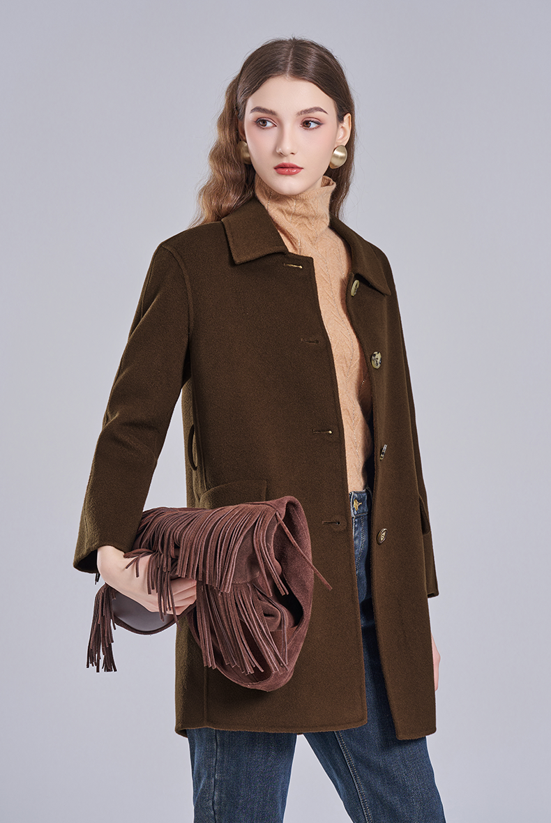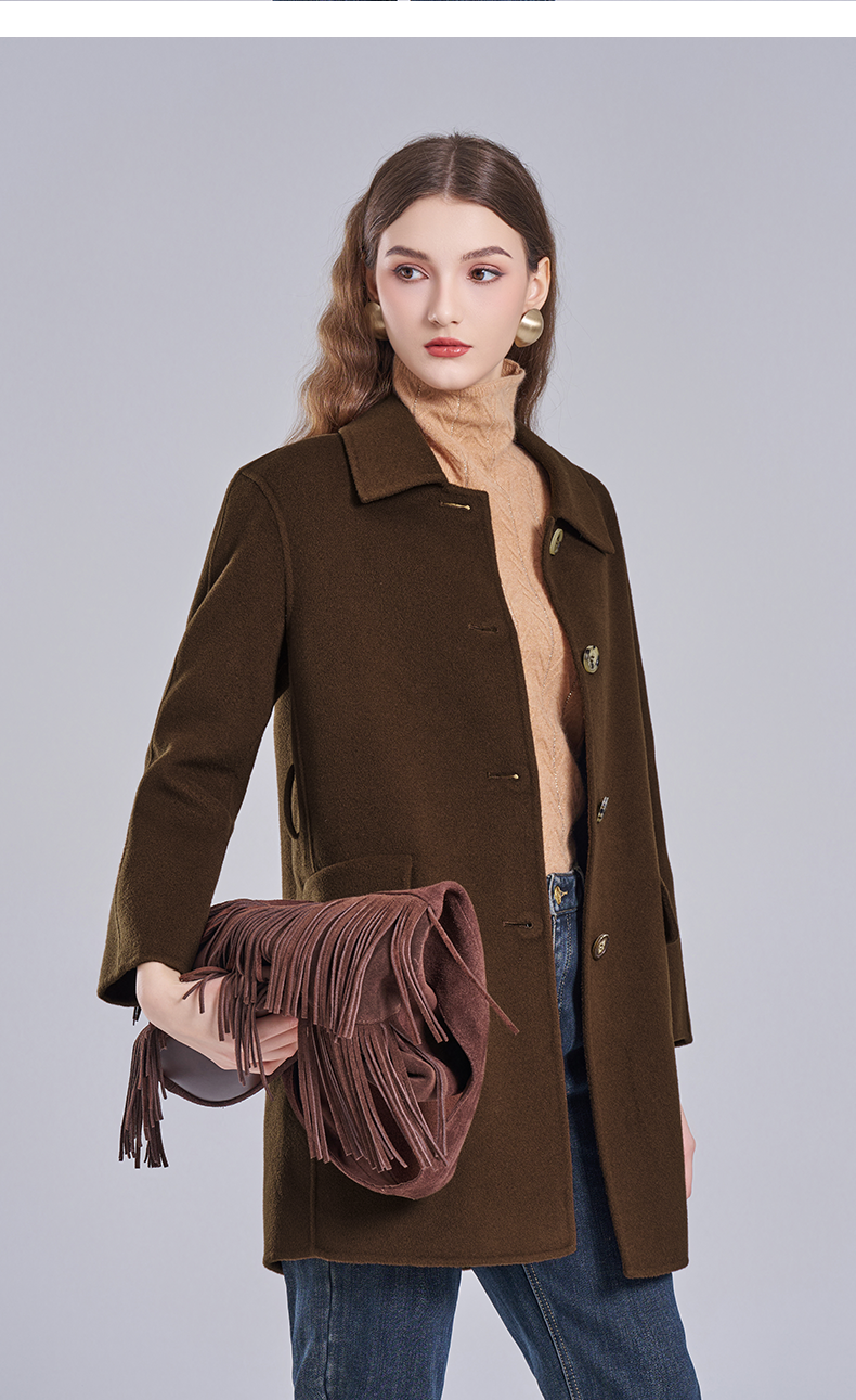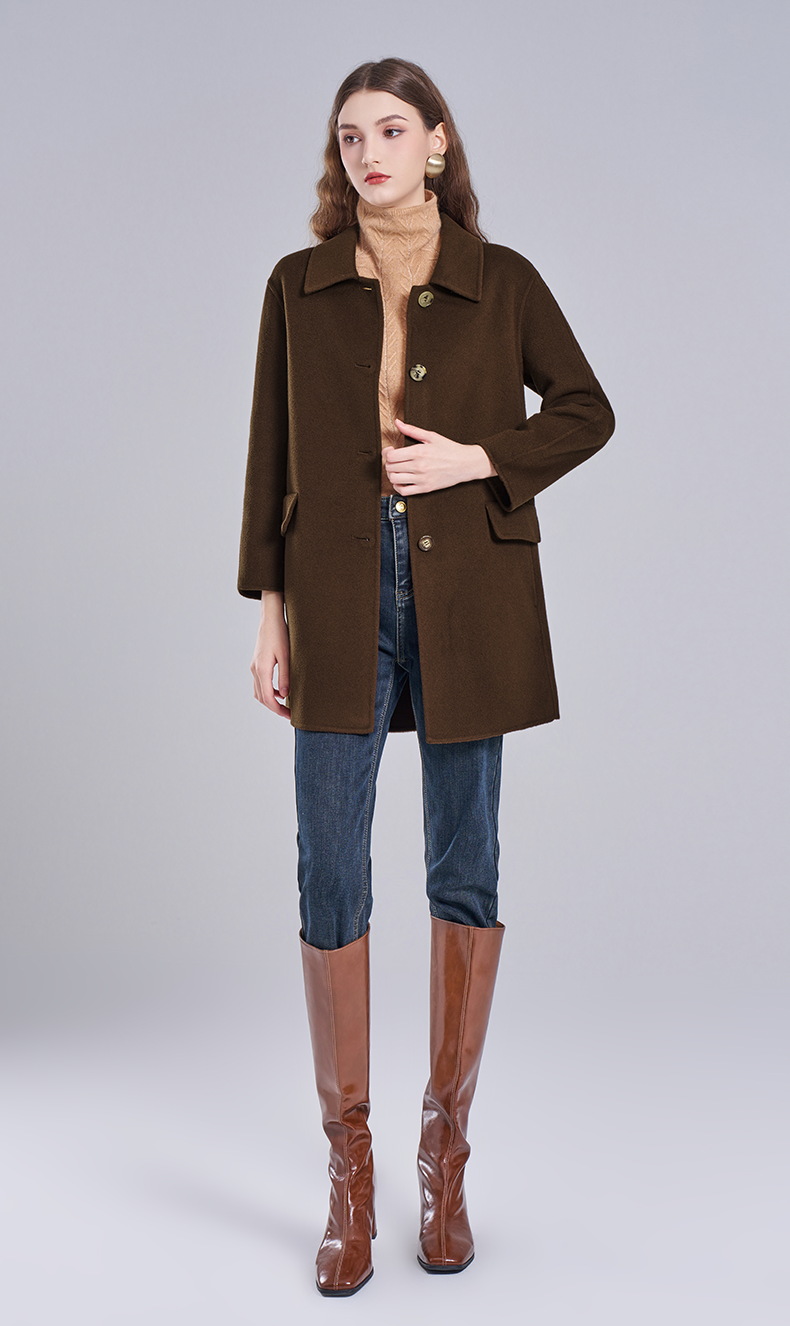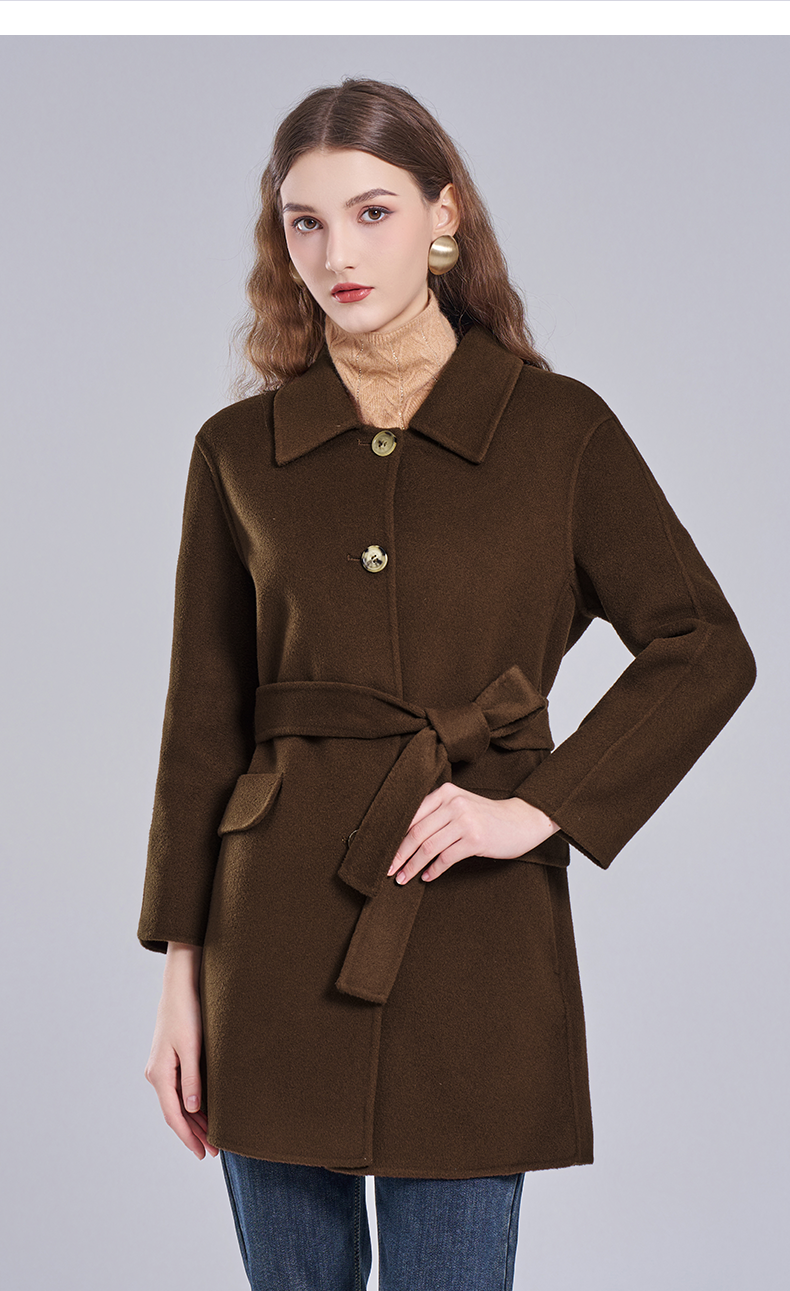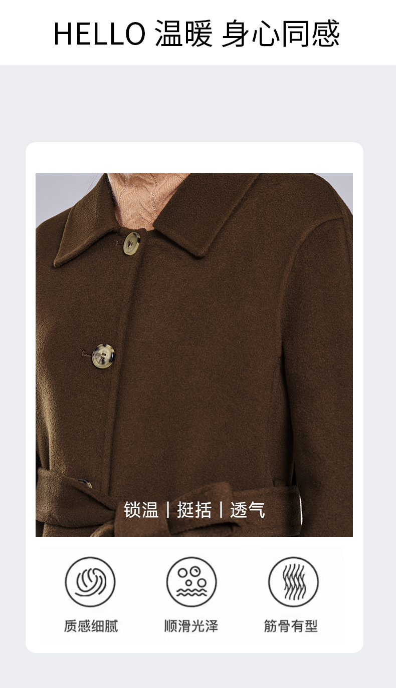 乔万尼冬新品干练系带H型绵羊毛短款大衣ET4A846