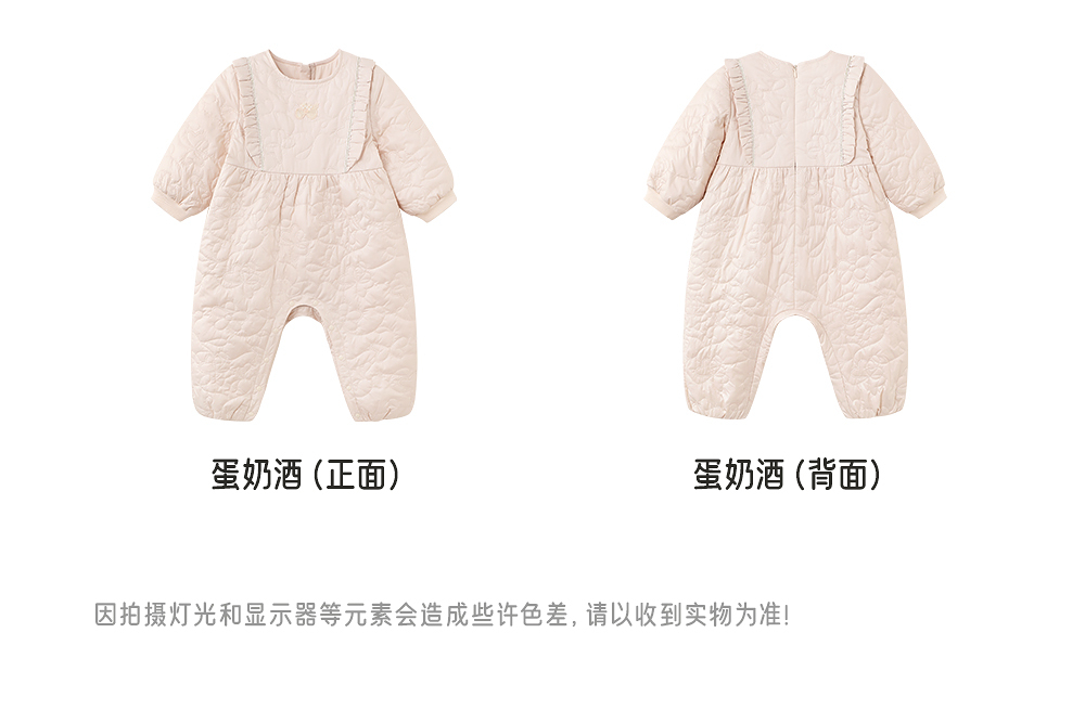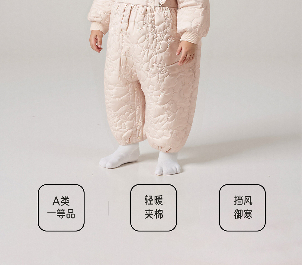 【商场同款】英氏婴儿衣服秋冬女宝连身衣夹棉保暖女童衣服防风